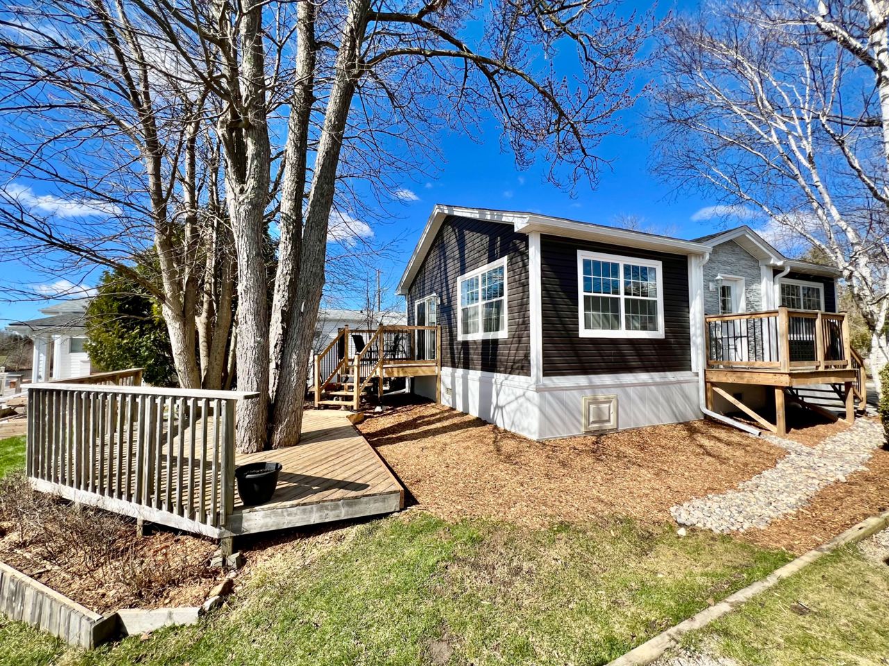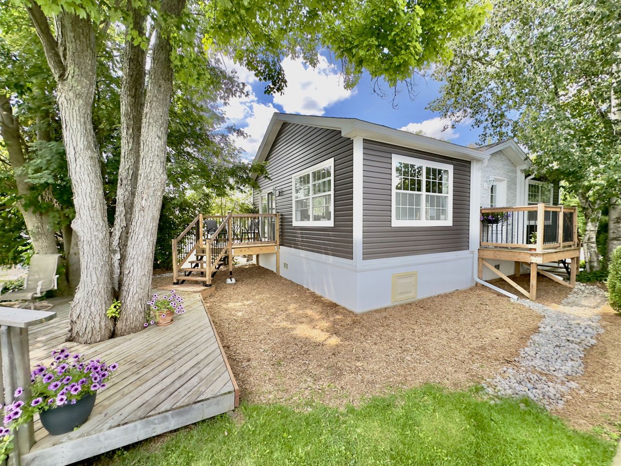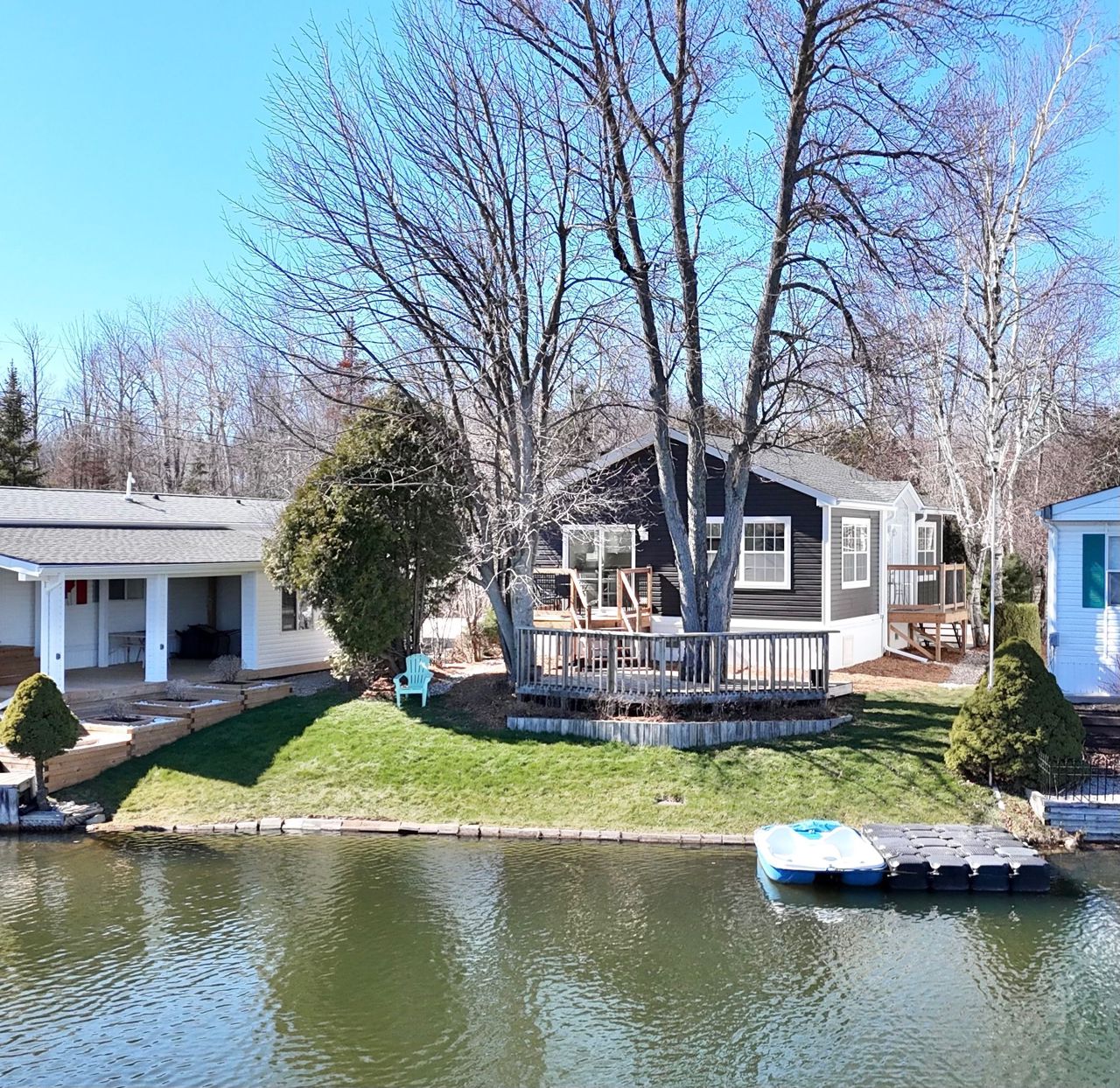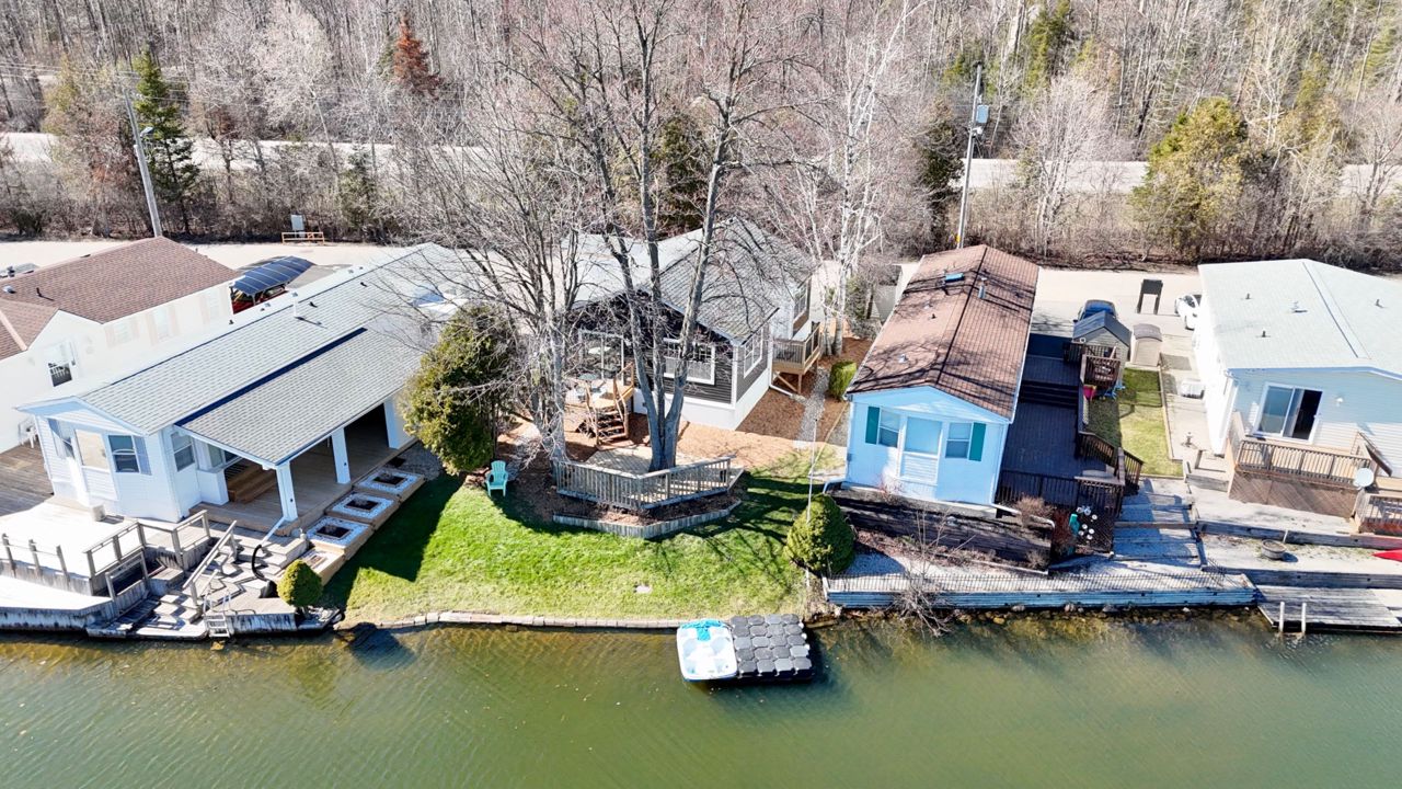 Welcome to your new oasis at 22 Jasper Heights. This is a freehold property within the common elements condominium community of Mini-Lakes; a sought after gated neighbourhood with a variety of amenities including common areas, a heated seasonal pool, a lake with excellent swimming and recreational boating, and much more. This recently built two bedroom custom 4-season home sits on a large premium waterfront lot with unique water access. Skate, swim, or fish right from your private lawn or paddle along the canal to enjoy recreation on the lake. Soak in the morning sun shining across the water right into the open concept living room and kitchen, enjoy the breeze and view from the two-tiered deck, or relax on the private dock. Ample secure storage in the included 8x20 sea container located on-site. Convenient local amenities and shopping close by in Guelph with excellent access to the 401.