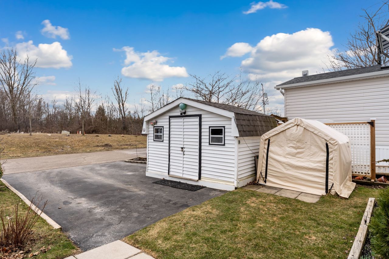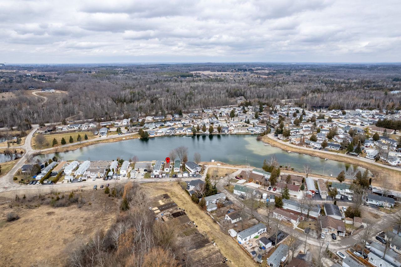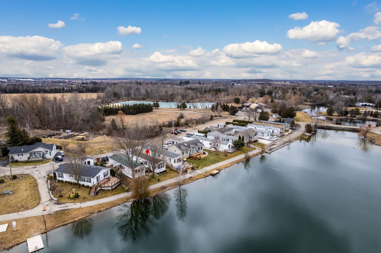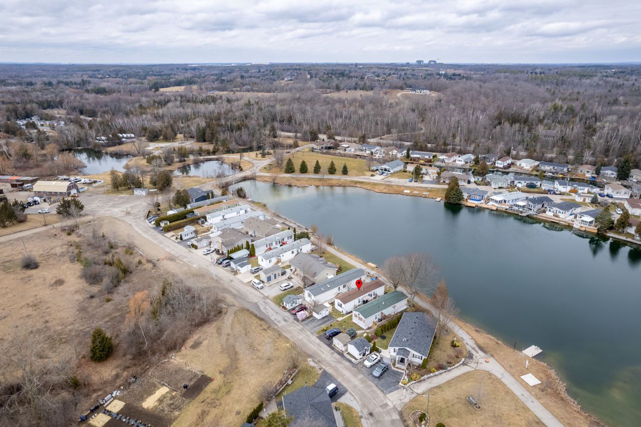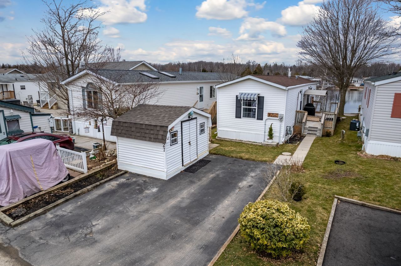 Charming detached bungalow nestled within the gated Mini Lakes community offers a serene lifestyle. This cozy abode, spanning 742 square feet, boasts a plethora of upgrades, promising a superior living experience compared to a condo apt. Situated along the picturesque lakefront, residents enjoy the luxury of swimming/fishing in the shimmering waters during the warmer months and indulging in delightful ice skating during the winter, offered as well the use of a community pool. Embrace the tranquility of lakeside living while relishing the comfort and privacy of your own detached retreat. Throughout you will find many upgrades including floors, all new trim, upgraded kitchen, exterior shutters, laundry nook, bathroom vanity + plumbing and much more!! Nothing to do but move in! This home invites you to enjoy this serene lifestyle whether downsizing or just getting into the market. The 8x12 shed/man cave has hydro and offers extra storage, a workshop or a place to just hang out and watch the game. Don't miss out on everything 27 Ash has to offer!!