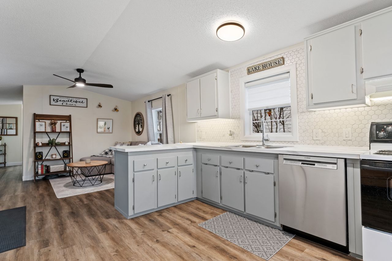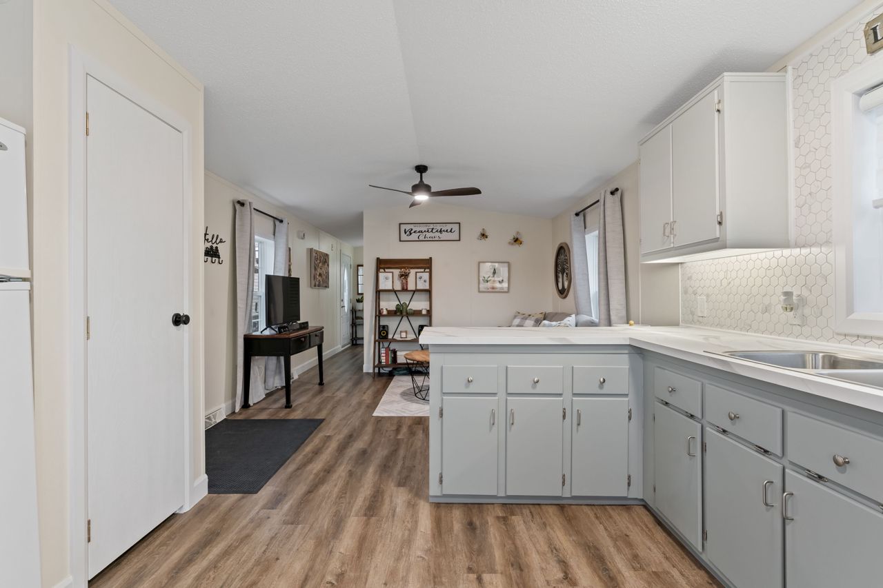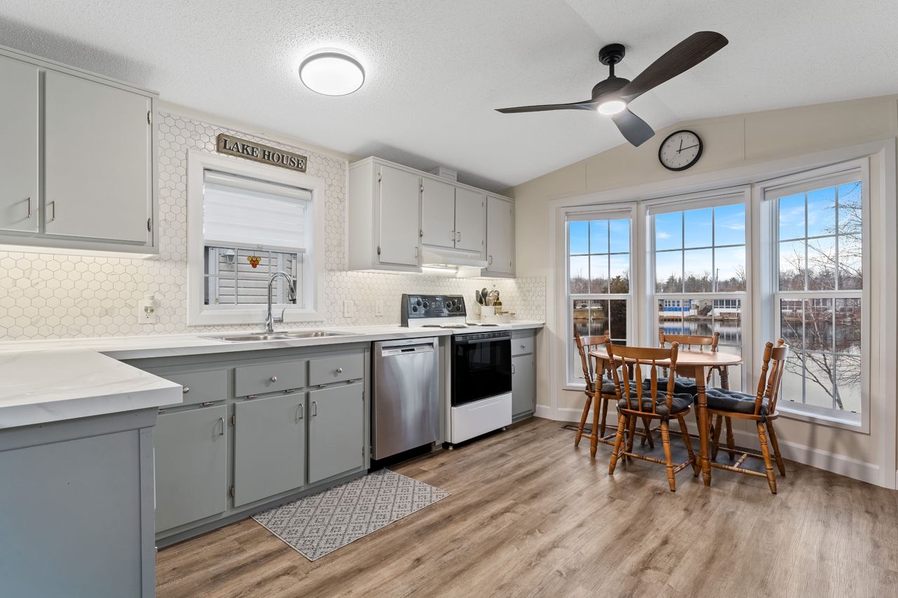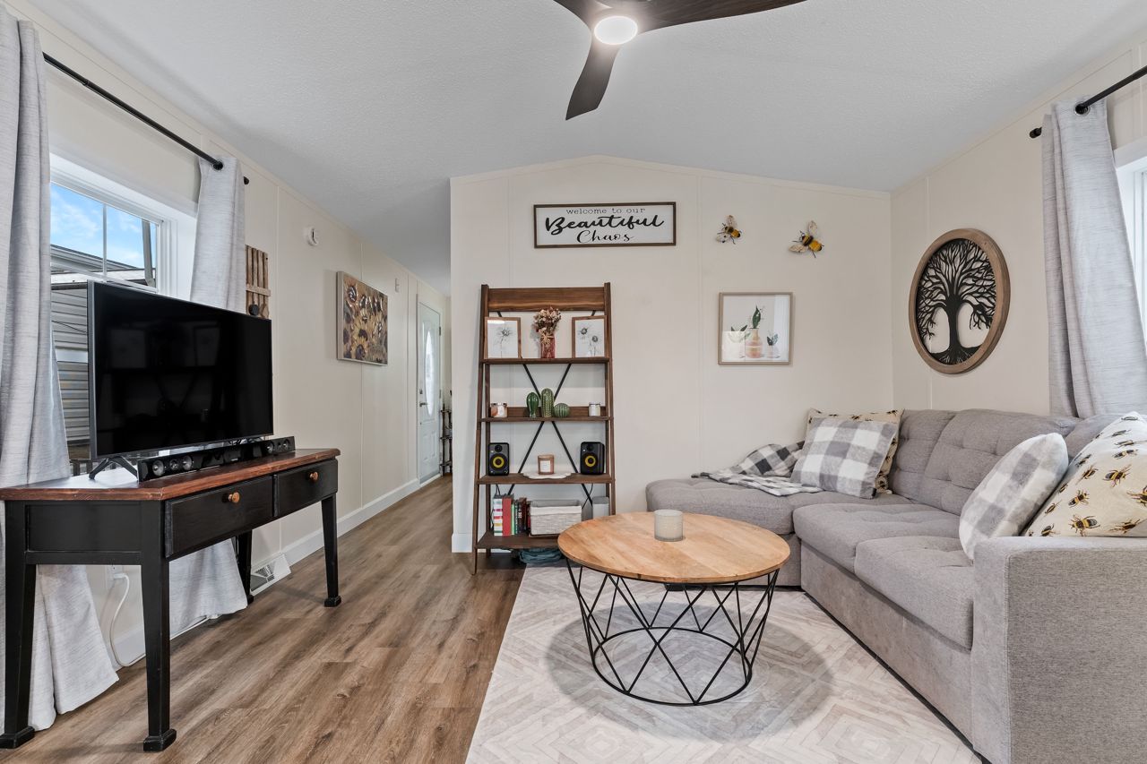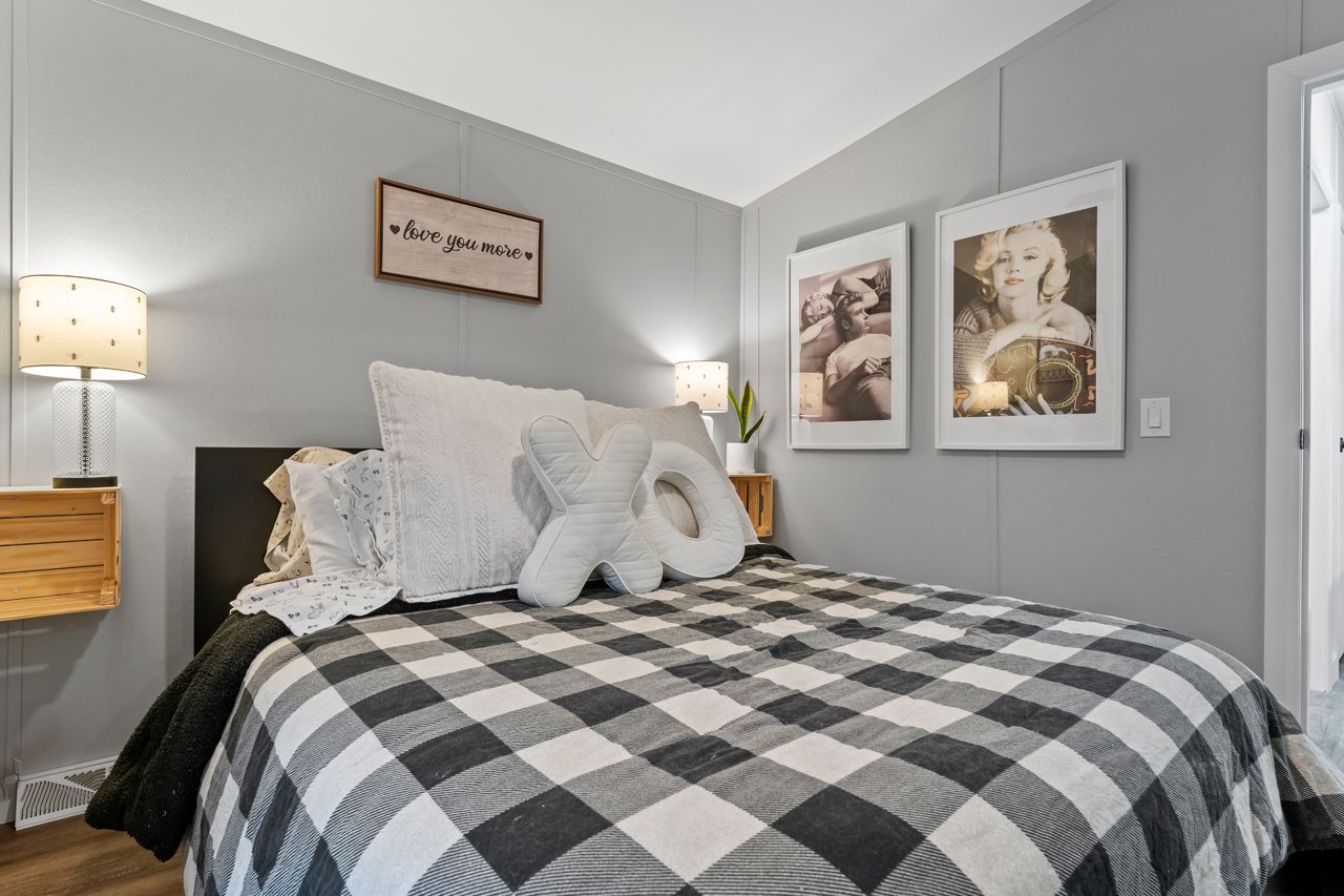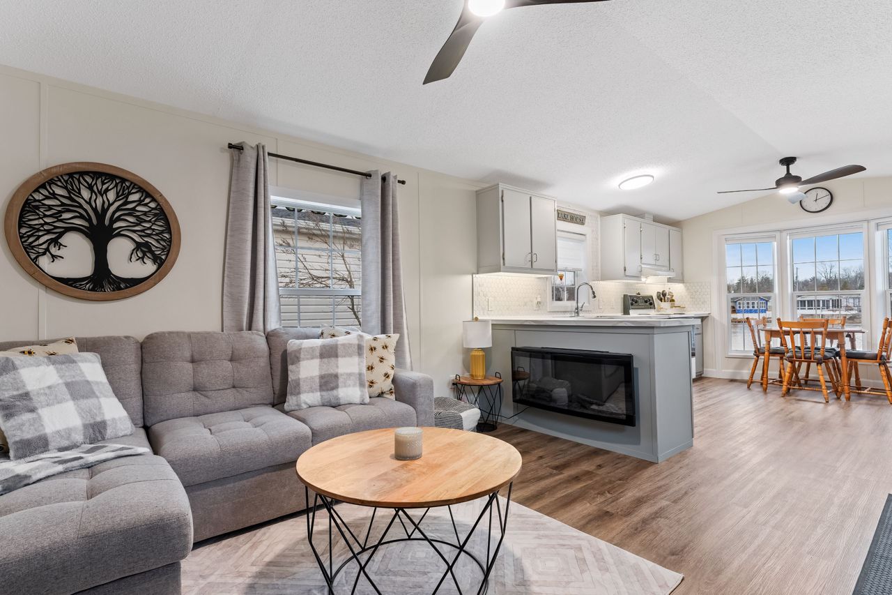 Charming detached bungalow nestled within the gated Mini Lakes community offers a serene lifestyle. This cozy abode, spanning 742 square feet, boasts a plethora of upgrades, promising a superior living experience compared to a condo apt. Situated along the picturesque lakefront, residents enjoy the luxury of swimming/fishing in the shimmering waters during the warmer months and indulging in delightful ice skating during the winter, offered as well the use of a community pool. Embrace the tranquility of lakeside living while relishing the comfort and privacy of your own detached retreat. Throughout you will find many upgrades including floors, all new trim, upgraded kitchen, exterior shutters, laundry nook, bathroom vanity + plumbing and much more!! Nothing to do but move in! This home invites you to enjoy this serene lifestyle whether downsizing or just getting into the market. The 8x12 shed/man cave has hydro and offers extra storage, a workshop or a place to just hang out and watch the game. Don't miss out on everything 27 Ash has to offer!!
