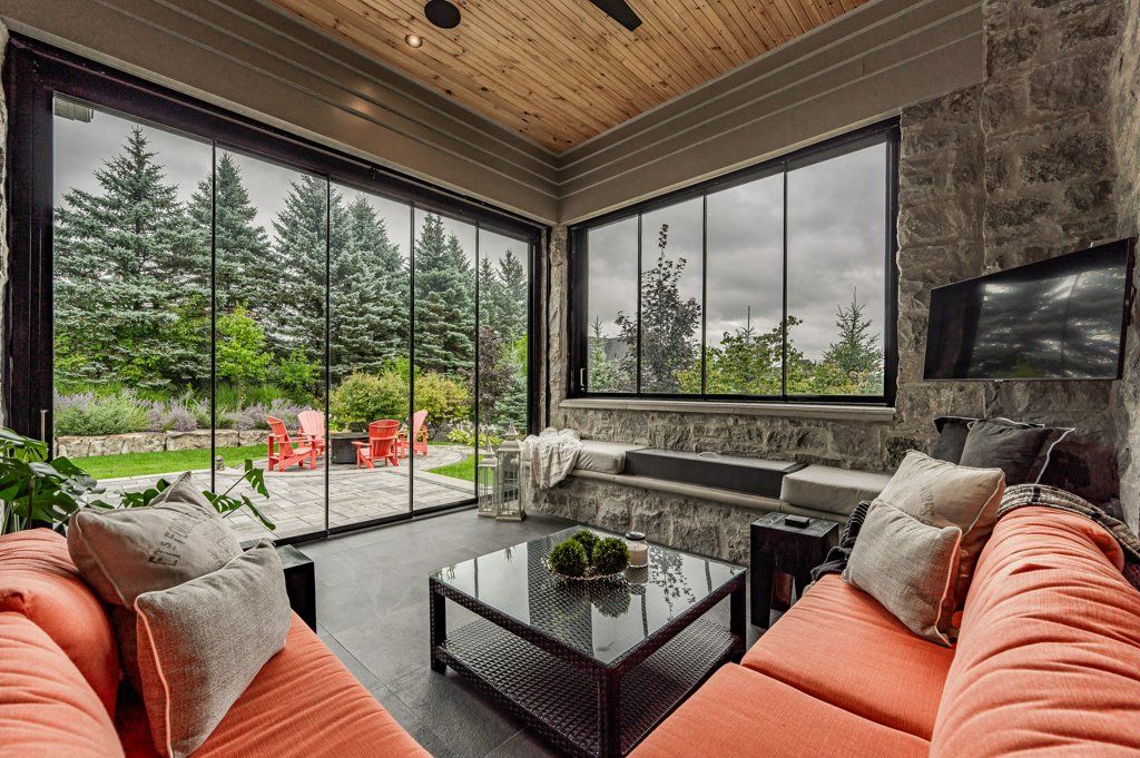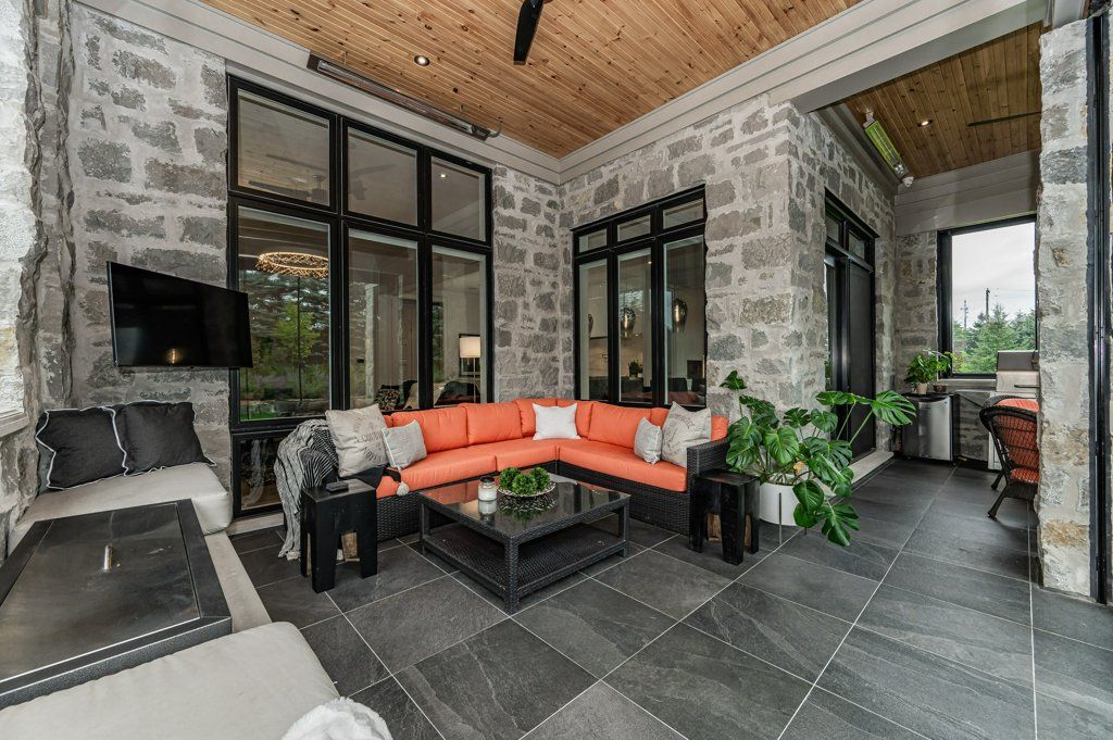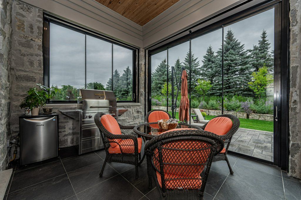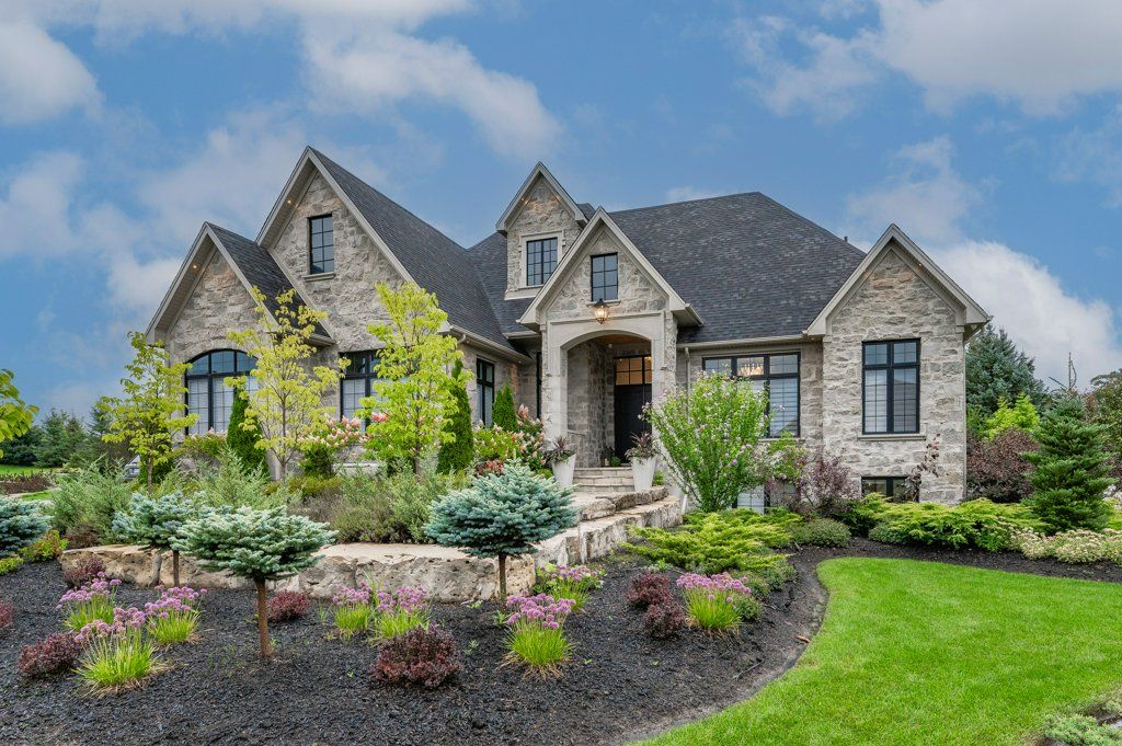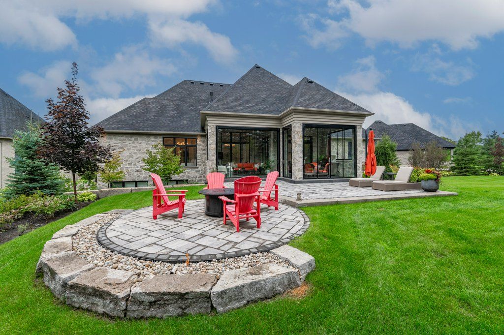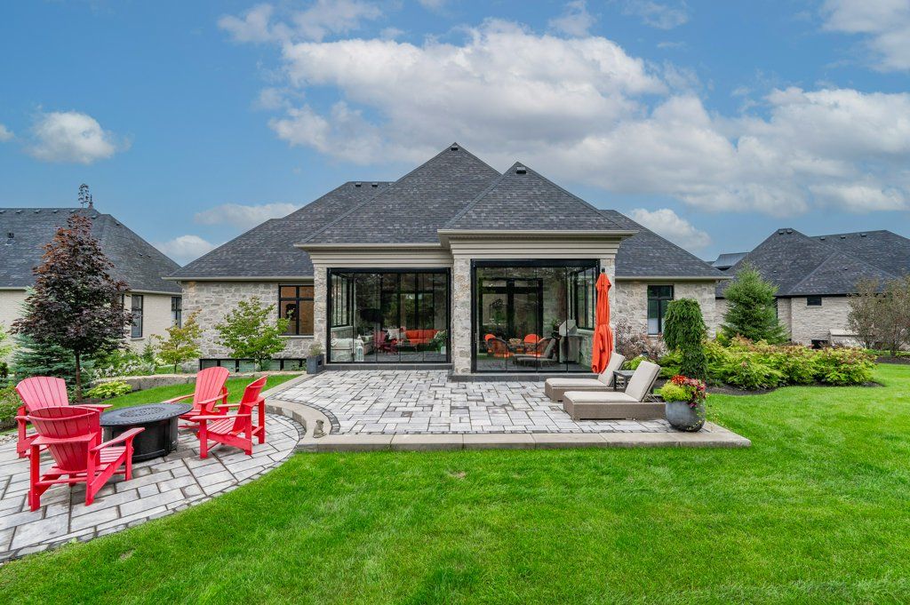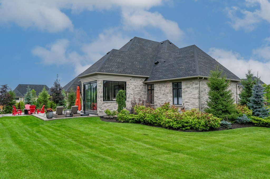 Unparalleled design, impressive open concept all natural stone bungalow on a private 1/2 acre lot. Located within a stunning gated community with private lake and walking trails. Offering nearly 3900 sq ft of living space plus an additional 380 sq ft retractable glass sunroom. Features up to 12' ceilings, huge windows, smart home technology, surround sound, theatre room, heated tile surfaces and the highest quality finishes throughout. Exceptional kitchen features top of the line built in appliances, walk in pantry and modern island with dining seating for 8! finished basement with huge ceilings adds an additional 2 bedrooms, large rec room, theatre and a 3 pc bath all with huge oversized windows and armour stone window wells.**INTERBOARD LISTING: GUELPH & DISTRICT R. E. ASSOC**Oversized 3 car garage and driveway parking for 10 in this highly desirable neighbourhood. Only 1 minute from the 401 and close to all amenities is a commuters dream location and breath