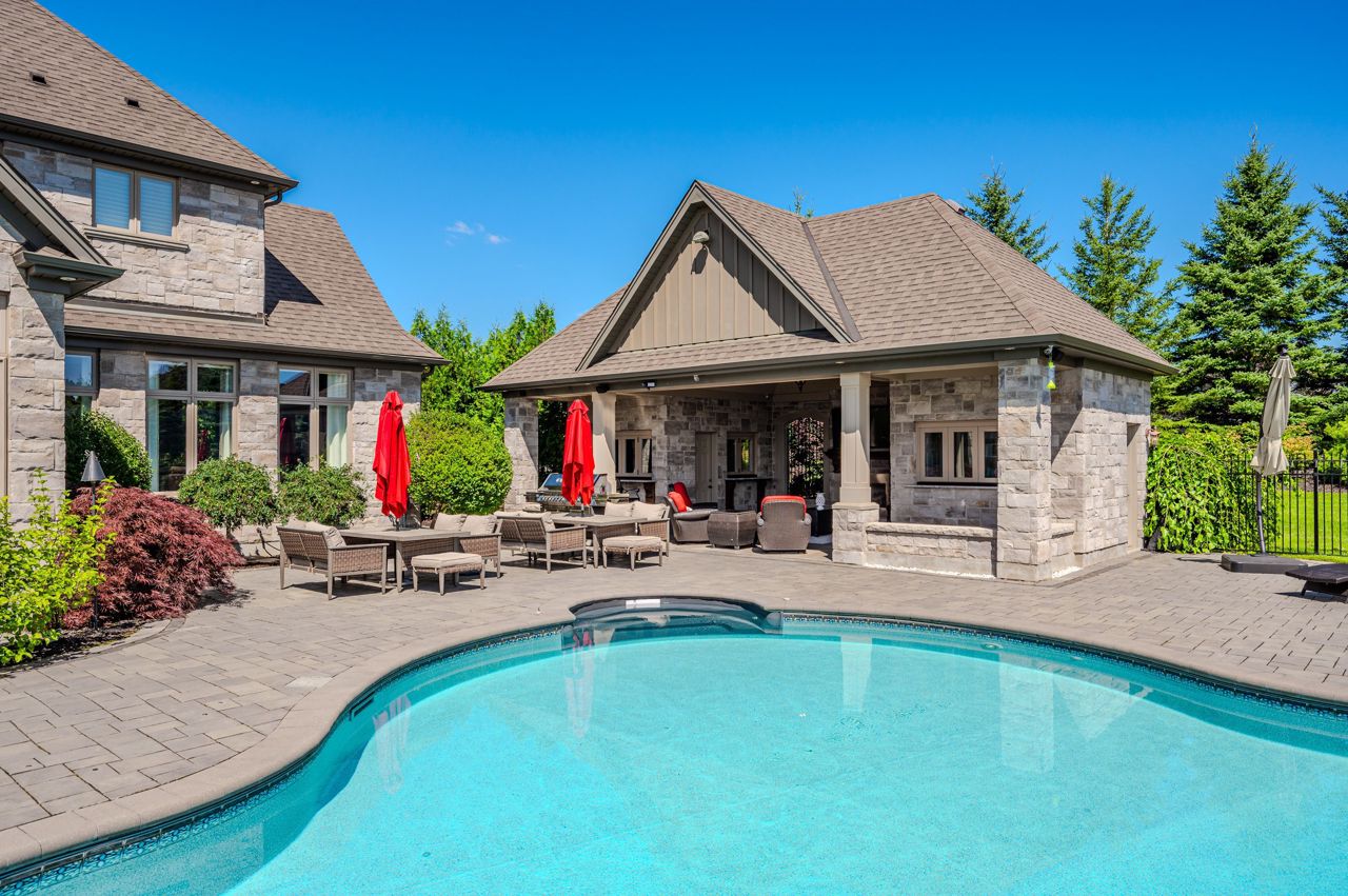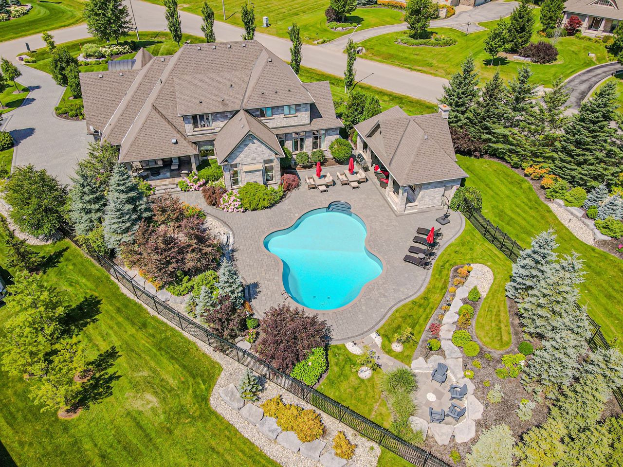 On your drive home, your shoulders drop as you breathe more easily in the peace, serenity and tranquility of this exclusive country setting, just outside of the enchanting city of Guelph. Just over an hour from Toronto and located in the prestigious executive estate enclave of Audrey Meadows, you are surrounding by equally prominent and meticulously cared for homes. What sets this home apart are the extensive upgrades throughout and the resort-like backyard paradise. On 1.03 acres of land and exquisitely landscaped and manicured, you'll be proud to entertain family and friends in your 6832 sqft residence (including the 2201 fully finished lower level). Kids can splash in the inground pool while you relax on the covered back porch or in the outdoor covered living area beside the cabana. Indoors, exceptional quality and craftsmanship abound. Walk into the front foyer and you have the ideal combination of traditional formal areas for entertaining and a simply sensational open concept great room (kitchen, breakfast, living and family room) at the back. To the left of the foyer is the ultra private home office/den. Upstairs, you have a total of five well proportioned bedrooms and 3 full bathrooms. What's unique is the double primary bedroom arrangement. This could also make for a super deluxe separate guest suite. At the base of the gorgeous staircase, in the lower level, is the home fitness room with a commercial wall of glass. The 6th bedroom is a veritable hotel suite with its ensuite bathroom. Mirroring the incredible great room space above is the entertainment area with full kitchen, games area, and media area all in one huge space. The exterior is spectacular with the ultra high end Permacon stone. Triple fully finished garage with epoxy flooring and premium pro-grade cabinetry. This traditionally elegant home was completed in 2015, with the hundreds and thousands of dollars in upgrades.