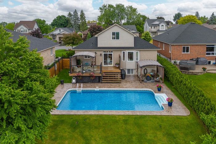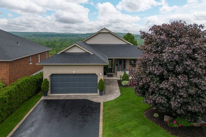 Location, Location, Location! Prestigious brick bungaloft on an exclusive cul de sac -- one of the nicest streets in Quinte West. Spectacular views year round, no neighbours behind, 315' deep lot (goes well beyond fence), 16'X32' inground heated pool 2 years new (8' deep end, inpool lighting), stamped concrete, fully fenced, inground sprinkler system, 22'X12' deck. A truly stunning home over 1800 sq. ft. of finished living space above grade plus over 1400 sq.ft of finished space in the lower level. Maintained & upgraded to perfection -- kitchen with lots of cupboards, quartz counters, stylish backsplash & quality appliances included. (fridge- Fridigdaire professional, stove, dishwasher all 2 yrs old, microwave/rangehood 4yrs, washer & dryer 3yrs.). Double doors to master bedroom with ensuite & walk in closet. 2nd bedroom (currently used as an office), loft bedroom with skylight overlooks the main living area & skyline views of backyard. Open concept main living area with high ceilings.Finished lower level has 2 bdrms, laundry, rec room w gas fireplace and extra storage room. Double att. garage with inside entry & floor has epoxy finish, paved drive.