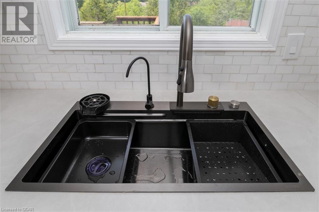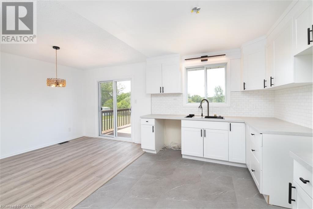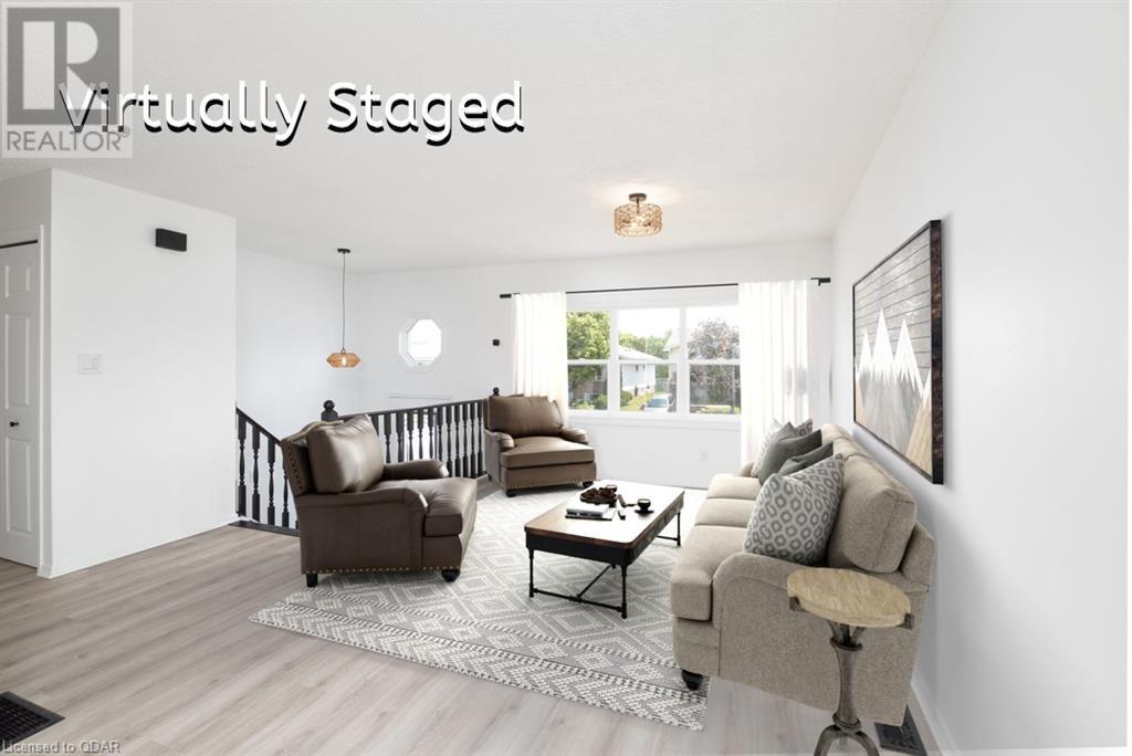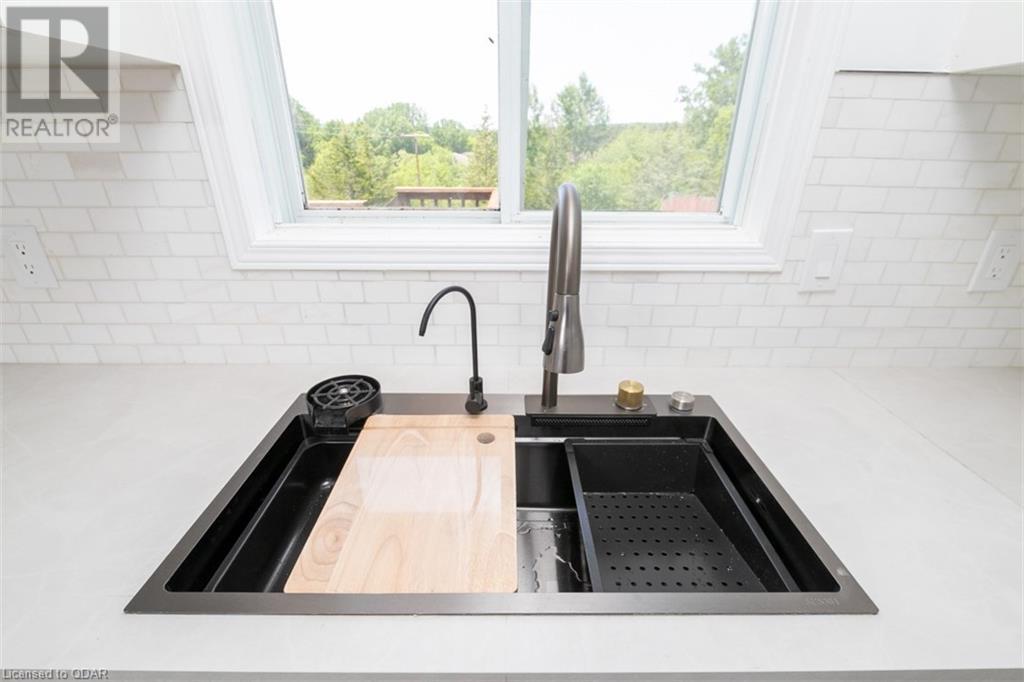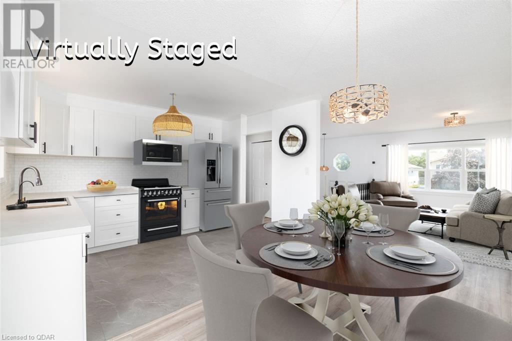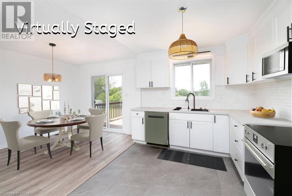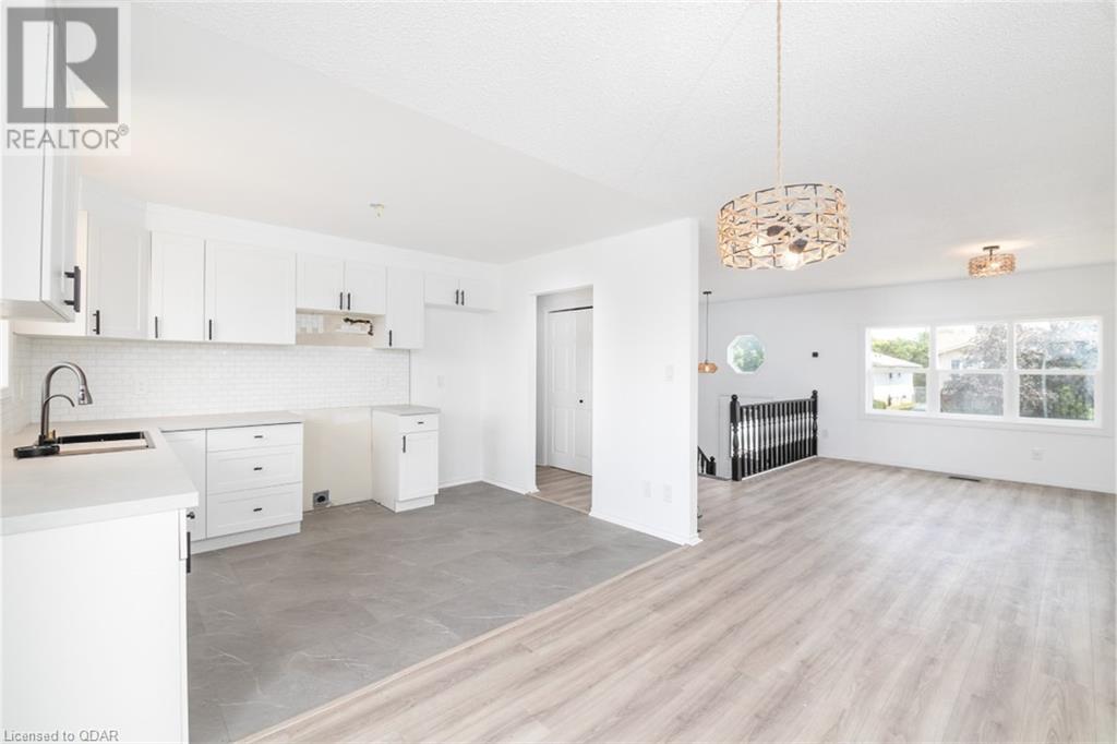 Welcome to this friendly Neighbourhood. Completely renovated raised bungalow. New flooring, freshly painted throughout, new kitchen cabinets, lighting fixtures : the list goes on. Open concept living room, dining room and kitchen. Living Room Windows and Patio door gives view to front and rear of the home. The kitchen has all four new appliances and a must see black double sink with glass washer and waterfall for easy washing your fresh veggies, etc. The patio door leads to the deck - lots of room on the deck for bbq and entertaining. The back yard area has room for pool, hot tub and play structure! Three bedrooms on the main level all with large windows and double closets. New fixtures in bath include vanity, toilet, and tub. Faucets are black as well as the black rimmed mirror which accents the white in this bathroom. Lower level is also renovated - family room, bathroom and bedroom. Large laundry and utility room is home to new washer and dryer. Single car garage has new white door to accent the new front door of the home. Great location. This home is bright, fresh, and ready for you. All the work has been done, just move in! Viewings are easy to arrange. Quick closing. (id:22211)