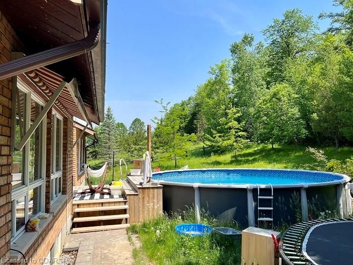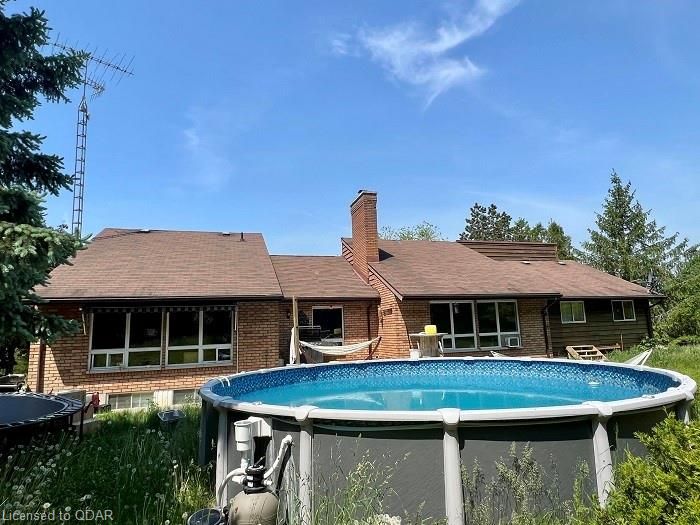 Amazing potential in this private country brick bungalow that sits far back from the road on approx. 6.5 Acres. 5 Bedroom and 3.5 Bathrooms allows for Multi-generational living. Wood burning fireplace can be enjoyed in the large family room with vaulted ceilings. Newer laminate flooring throughout main level. Heated and cooled with a Geothermal system. Newer above ground pool. Quick closing possible.