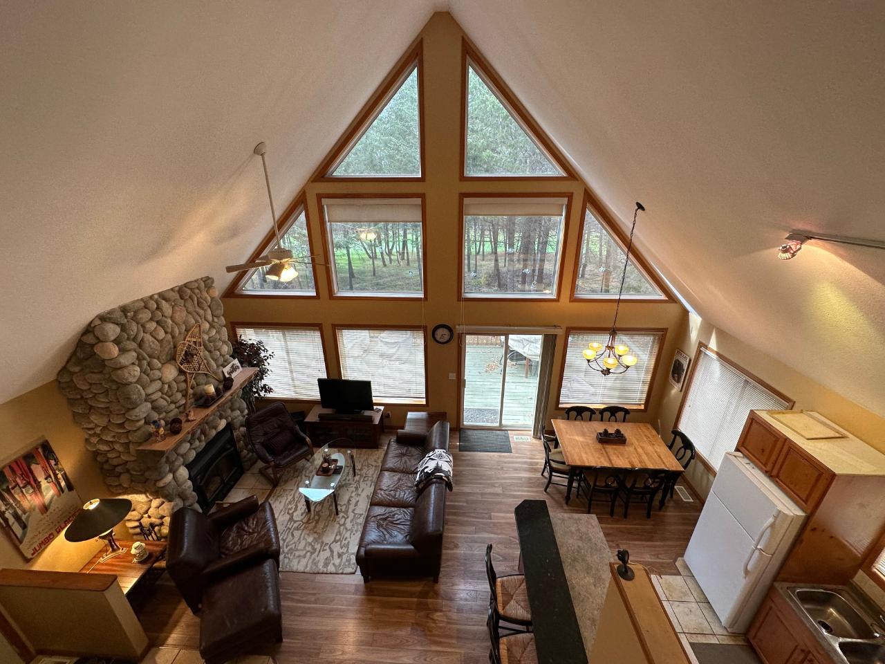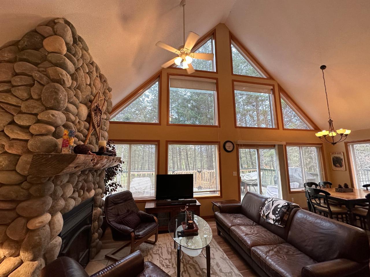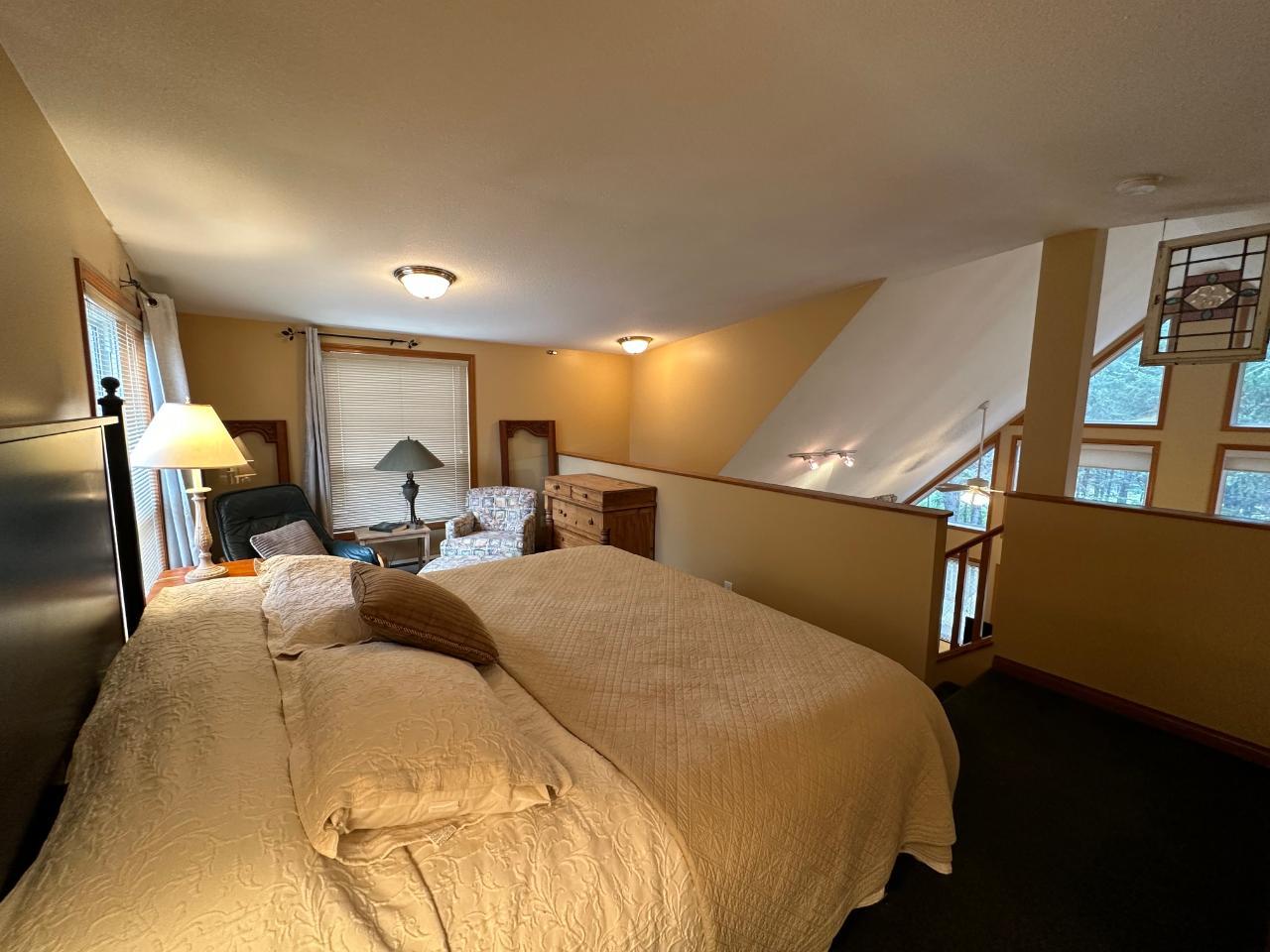 The mountain cabin you have been looking for! This Pine Cone Lane home backs on the 8th hole of the Springs Golf Course. High vaulted ceilings with lots of windows in the living room, kitchen and dining room with a floor to ceiling river rock wood burning fireplace will make this a special family space. Two bedrooms and a full bathroom round out this level. Upstairs there is a large main bedroom with a lovely sitting area, space for a desk and a full ensuite bathroom. The basement is framed and wired ready for your finishing touches. A nice family room and a 4th bedroom are almost complete. There is a rough-in for a 3rd bathroom as well. Outside the home has a very large gated deck that covers 3 sides of the home with all day sun and nice views of the Rockies. The exterior has been recently painted and the home is being sold furnished. Quick possession is available, you could be enjoying the holidays in your new home, don't let this one slip away, call your REALTOR(R) today. (id:22211)