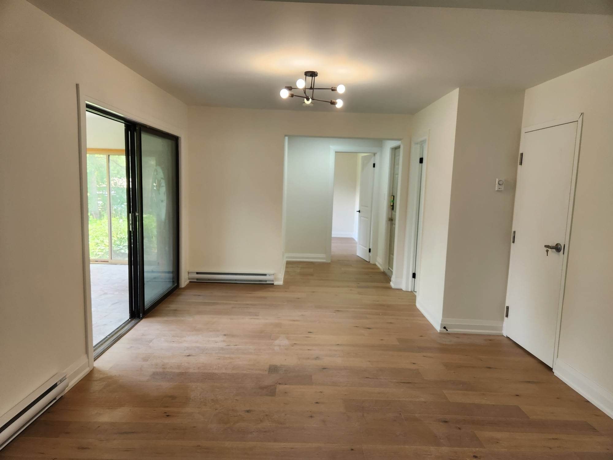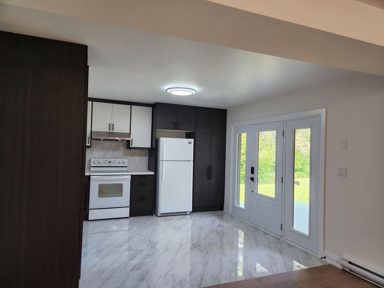 Waterfront, 2 bd, 1 bath, completly updated main floor apt. w/o to deck from kitchen, enjoy 3 seasons in the large sunroom off the living rm. Ensuite laundry, 2 car garage included with access from the apt.,boat docking at your backdoor. Enjoy the summer in this stunning apt. with a private entrance.separate entrance, All utilities, hydro. water and cable/t.v