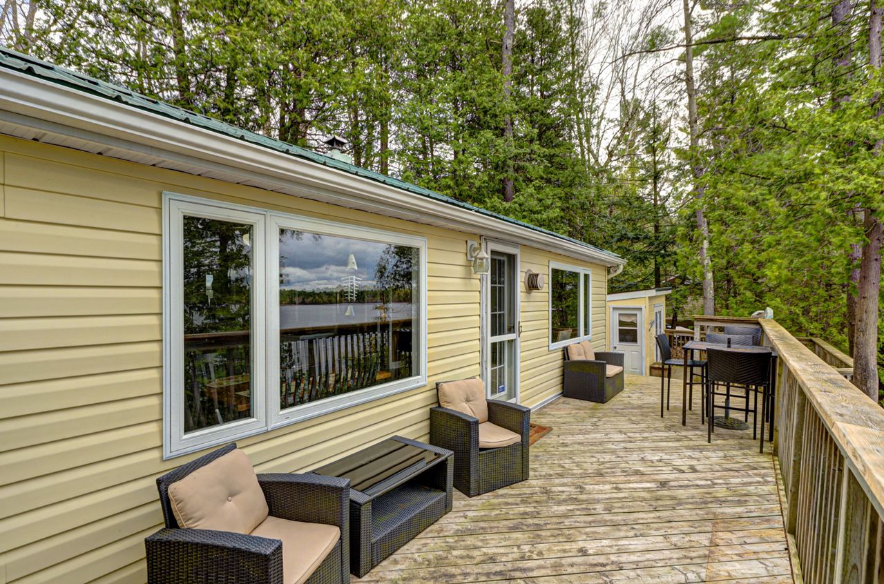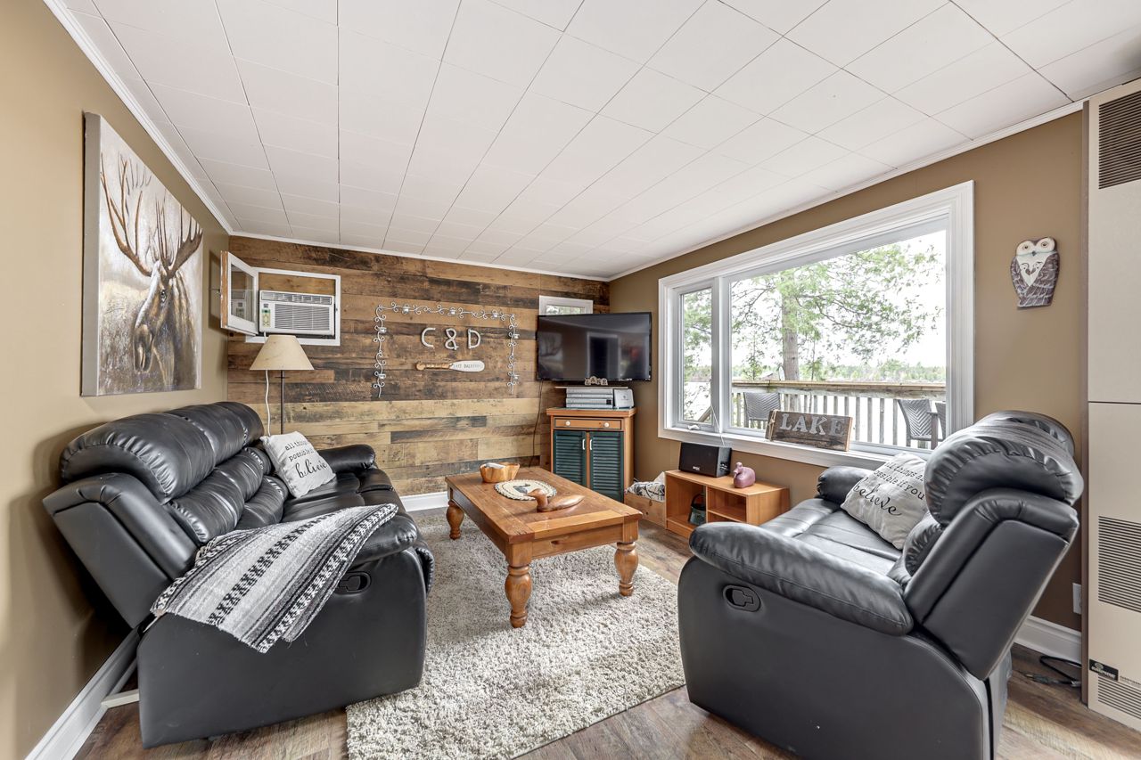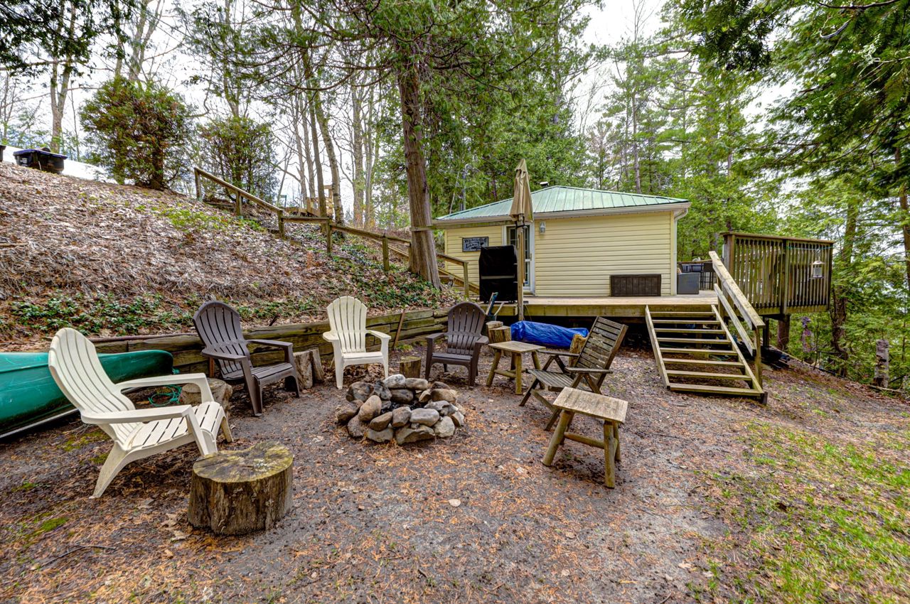 This stunning waterfront cottage is a nature lover's dream come true. Situated on a sprawling 150 feet of waterfront, this property offers breathtaking sunset views that you can enjoy through large windows from the comfort of your own living room. The open concept design of the cottage allows for a seamless flow of natural light and provides ample space for entertaining guests or simply relaxing with family. The new dock offers easy access...see attachedBrand new Dock! New flooring, new updated bathroom, Interior freshly painted. Includes all furniture, new BBQ, canoe, furniture, dishes, linen, Tvs, outdoor patio furniture, fire pit and more!