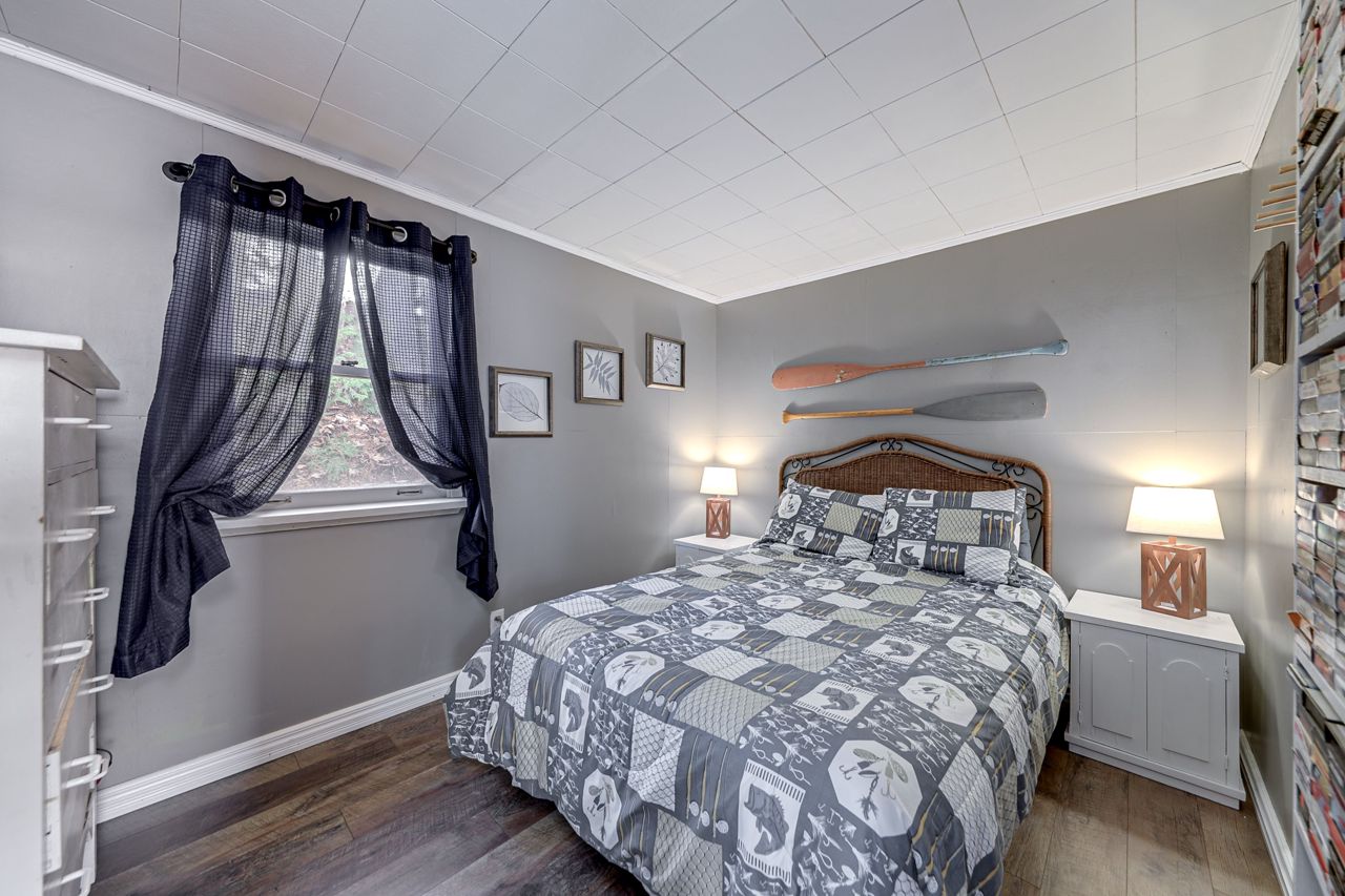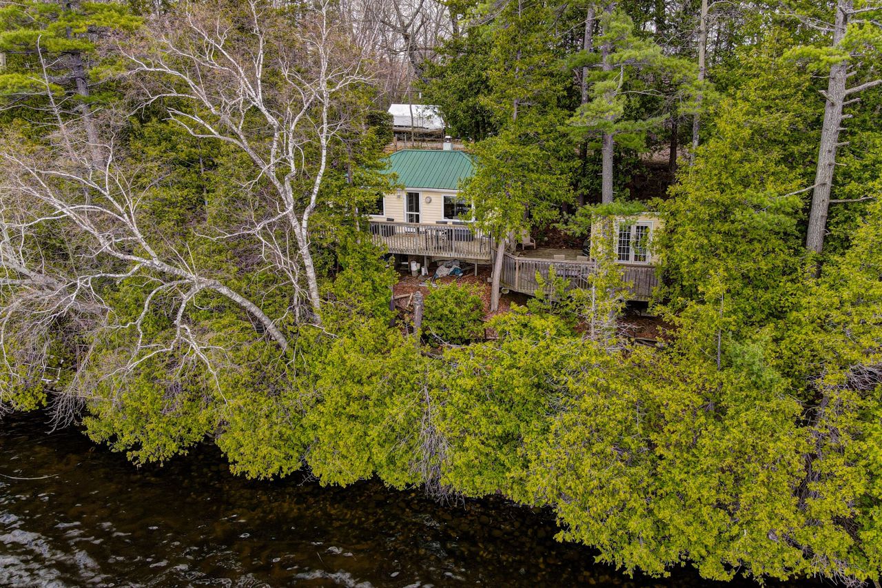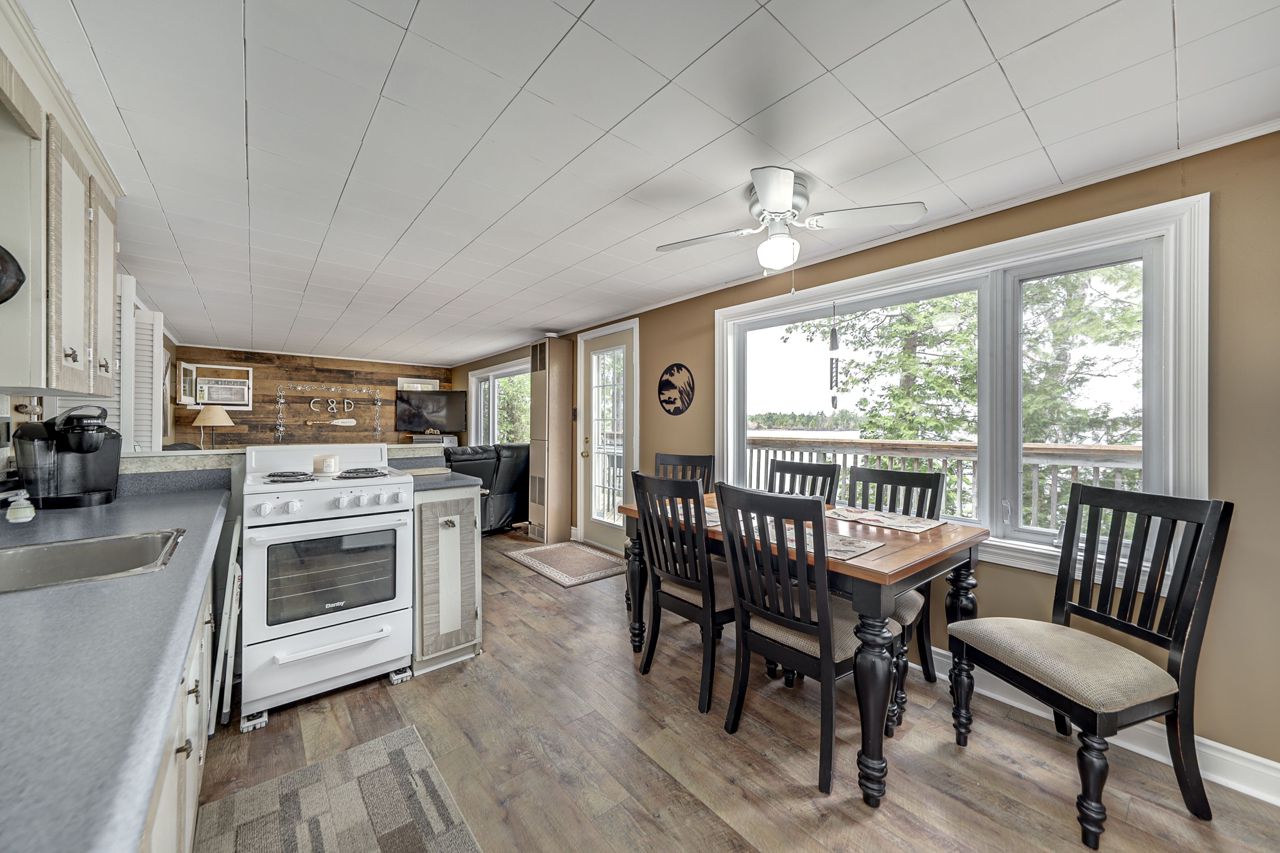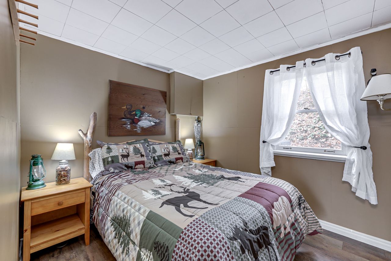 This stunning waterfront cottage is a nature lover's dream come true. Situated on a sprawling 150 feet of waterfront, this property offers breathtaking sunset views that you can enjoy through large windows from the comfort of your own living room. The open concept design of the cottage allows for a seamless flow of natural light and provides ample space for entertaining guests or simply relaxing with family. The new dock offers easy access...see attachedBrand new Dock! New flooring, new updated bathroom, Interior freshly painted. Includes all furniture, new BBQ, canoe, furniture, dishes, linen, Tvs, outdoor patio furniture, fire pit and more!