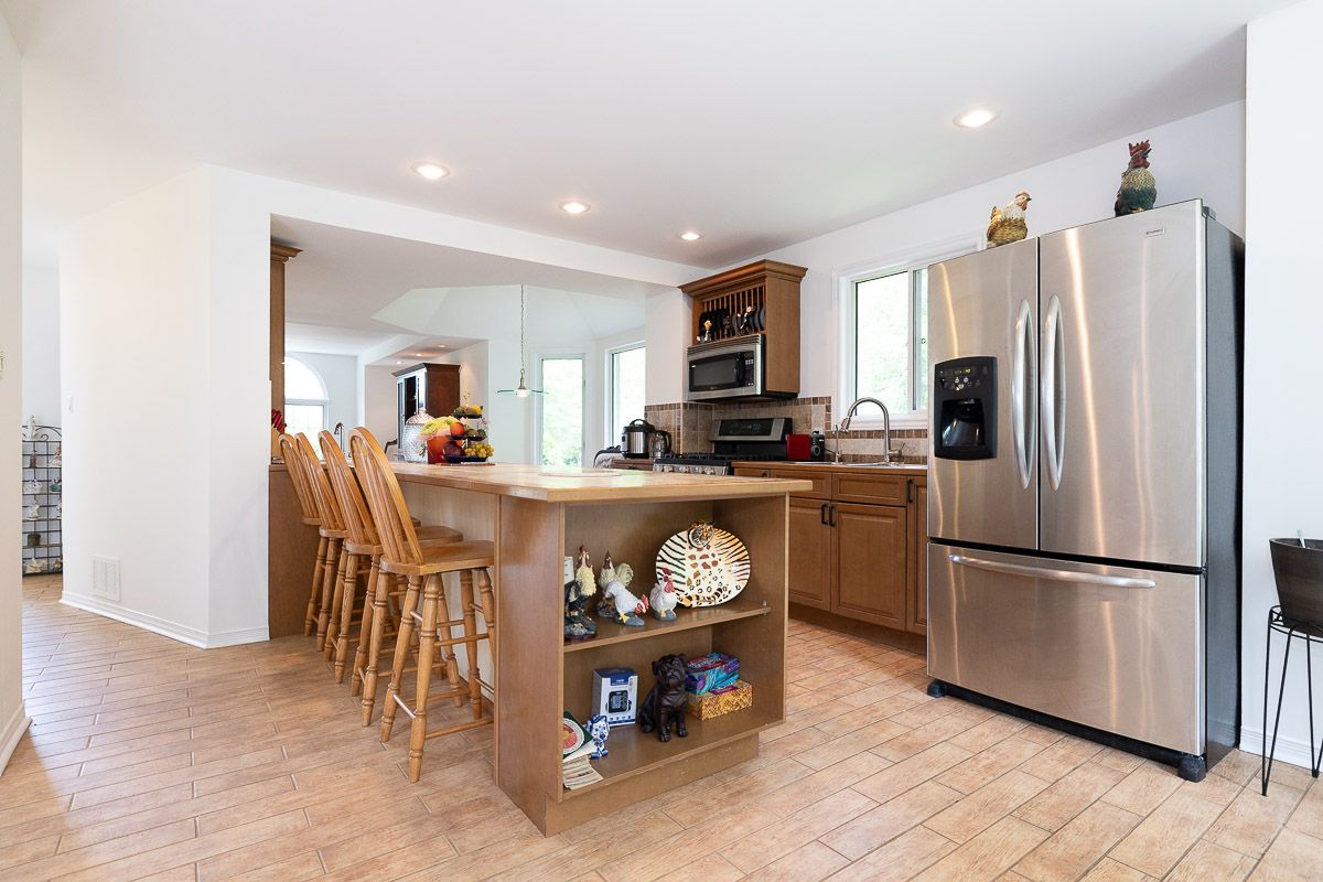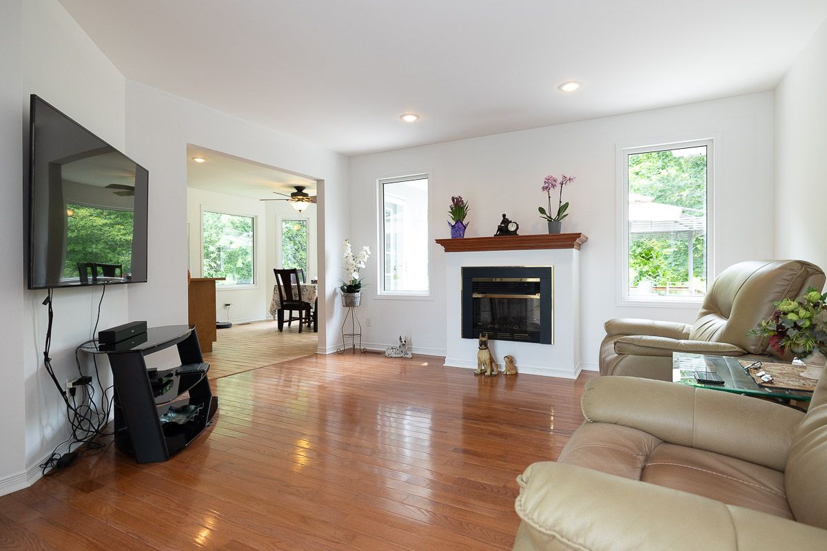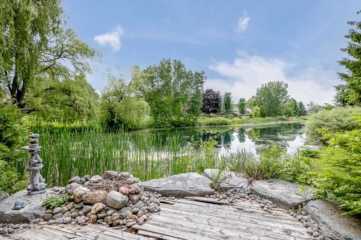 Beautiful Bungalow with Exceptional Private Setting with Premium Woodside Lot & Backing Onto A Pond In Bayshore Village. This Home Offers unparalleled privacy and breathtaking views! A Bright Open Eat-In Kitchen with Center Island, & large breakfast area, walk-Out To A Covered Porch Overlooking The Beautiful Pond. The open concept layout fills the home with natural light, 3 spacious bedrooms on main & A Large Laundry Room with garage access.The finished basement adds more living space with 2 bedroom, bathroom, family room, and office. Outside, mature trees, lush greenery, and natural stone accents create a harmonious landscape. Relax & enjoy the serenity of the ravine.. . Profess Painted, Spotless Home! Pride of ownership!The Bayshore Village's Membership Fee For 2023 Is $975 Which Includes Access To Golf, Tennis Courts, Swimming Pool, Clubhouse, Library, Exercise Room, Sauna, Storage Area, Docking And More!!!