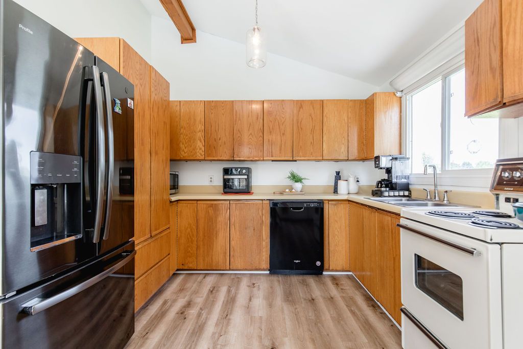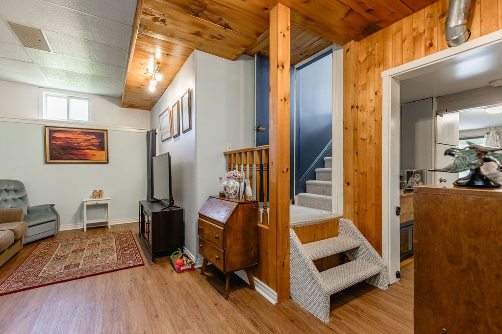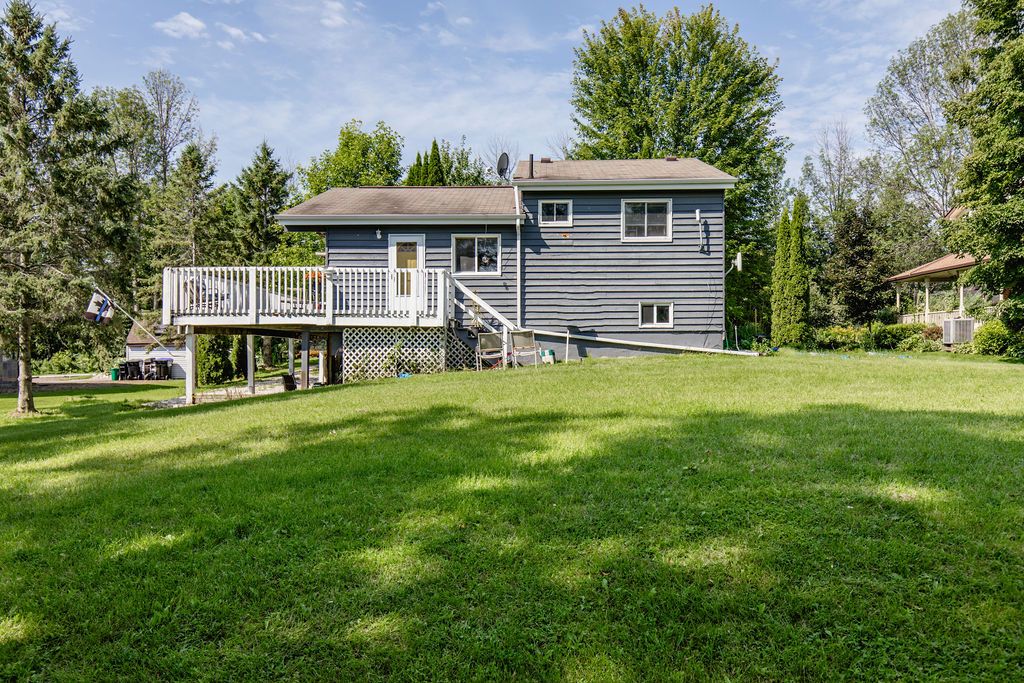 This charming multi-split home harmonizes comfort and style.Landscaped perennials, a rock garden, and wraparound porch enhance its curb appeal.1043 sqft with great layout caters to family life. The sizable kitchen features new laminate flooring,ample cabinetry and walk out to deck. Sunlight bathes the living room through expansive windows, fostering warmth.Both bathrooms are tastefully renovated,with the upper level boasting a luxurious soaker tub and heated towel rack. The basement unveils a 2-bedroom in-law suite, inclusive of an extra kitchen, walkout from recreation area, and a bathroom with a roll-in shower and secure grab bars. Ideal for extended family or rentals.Central air and 2021 eavestrough/soffit updates provide modern comfort. The property backs onto greenspace, offering peaceful outdoor living. Enjoy the large deck while a 10x18ft shed with metal roof accommodates storage.This home uses septic and municipal water systems. Mins to shopping,Barnstable Bay,Hwy 12