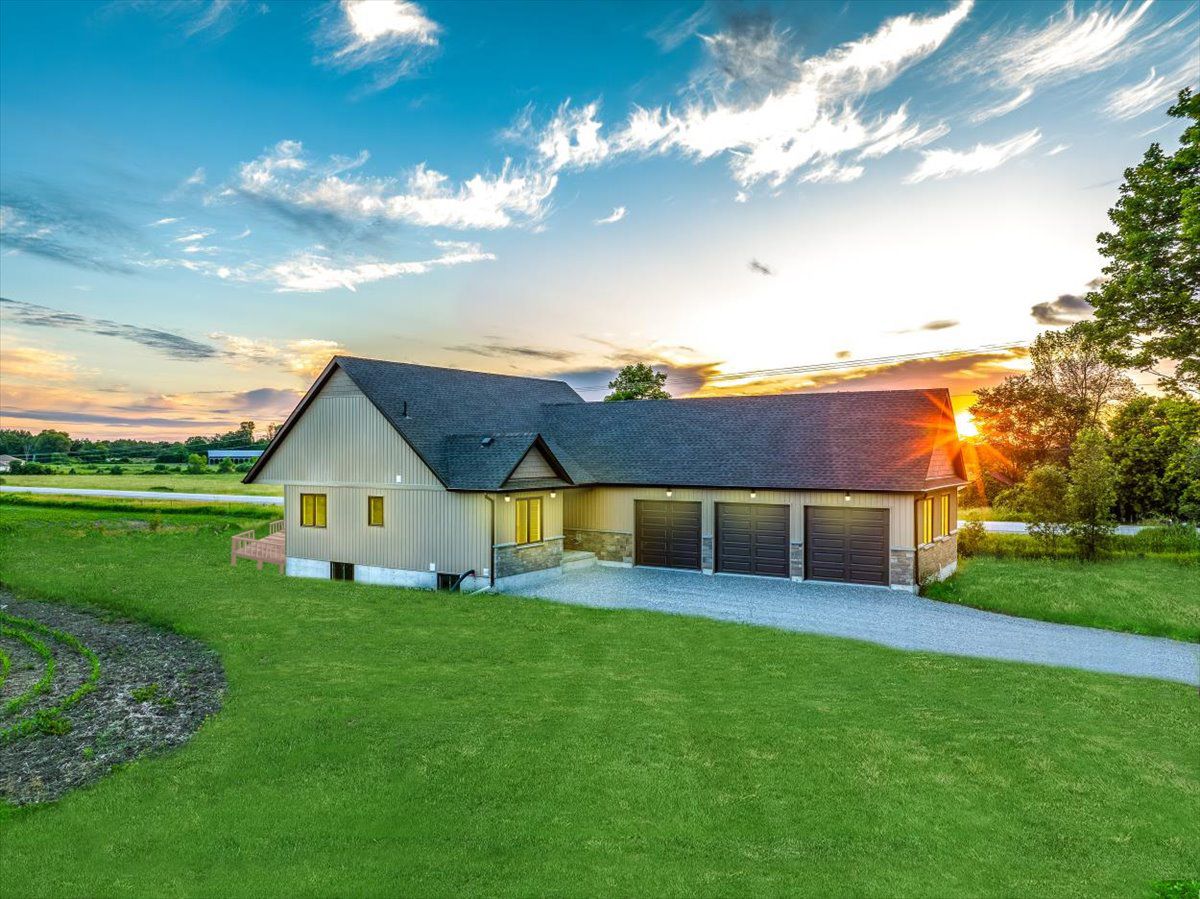 Brand new Tarion built home awaits you! Will be completed before closing by a quality local builder. 3 beds, 2 bathroom bungalow & over 3200+ possible sq ft available. Private location on approx half acre, this masterpiece is ready for your personal touch. Enjoy the freedom to choose from a wide range of finishes that reflect your unique style. Spacious quartz counter kitchen beckons aspiring chefs w/ large 8ft Quartz centre island, ample storage & conveniently combined with a living & dining room, perfect for hosting family & friends!! Enjoy the lovely W/O to backyard & the tranquility this location offers, with a deck off the main room. The covered porch is a great place to sit and watch the evening sunset. The primary bedroom boasts a walk-through 4pc ensuite c/w glass shower to large W/I closet. 2 additional spacious bedrooms + 4 piece bathroom. Separate entrance potential to an unfinished basement which features an ideal open layout w/4 pc R/I washroom. 60 Day Closing is possible!36x23 ft. 3 car garage will fit your boat, other toys or lawn care equipment. Front elevation soffit lighting, Truss roof system with storage potential in-garage attic, heavy gauge ductwork, dampener on furnace keeps the system quiet.
