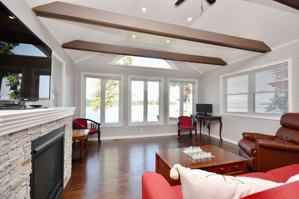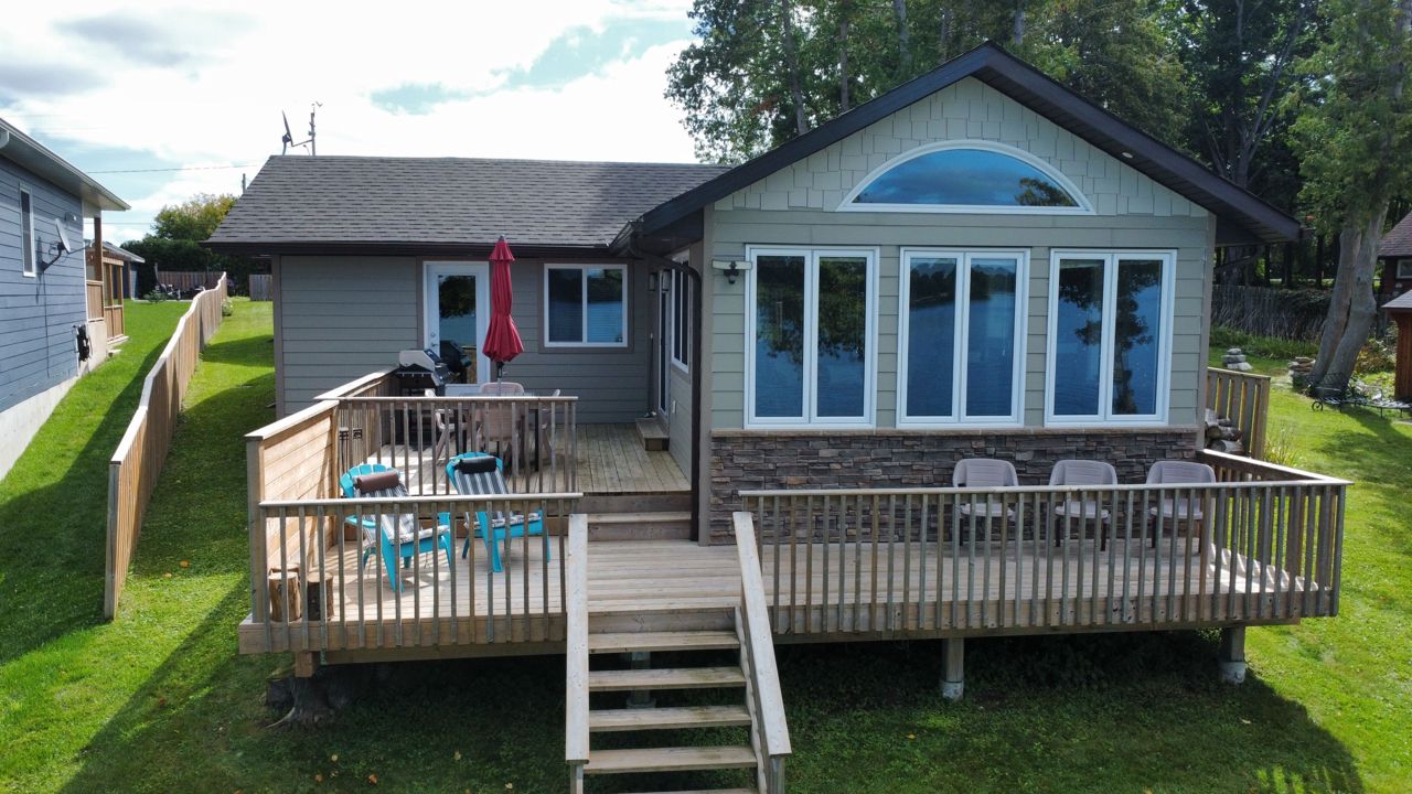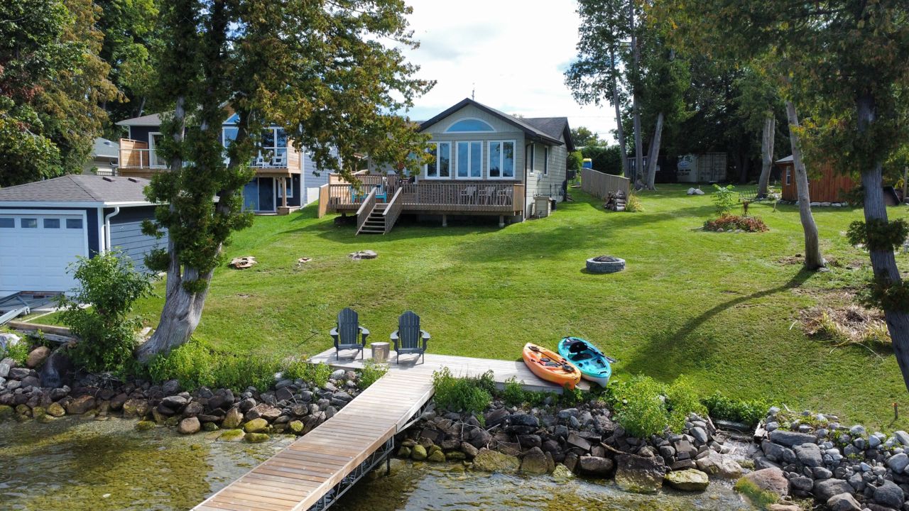 Welcome to this gorgeous waterfront 3-bedroom lake house, featuring serene primary bedroom with 4-piece ensuite. Open-concept living space, ideal for entertaining, seamlessly connects the large kitchen, dining and living area. Lakefront paradise directly on Lake Couchiching, boasting 48 ft quality waterfront, and a large deck perfect for entertaining and enjoying the picturesque views. Features private dock, gas fireplace, wall-to-wall windows for stunning view of the lake year round. Spacious attached 2-car garage, and a 13x8 shed with panel offering space for convenience and utility. Accessible location and well-maintained roads enhance the appeal, as well as proximity to Casino Rama and all the amenities you need. Minutes to Orillia where you will love the local markets and restaurants. Enjoy evening bonfires lake-side all year round, this home is perfect for full time living, or as a recreational retreat or investment!Furnace (2018) Drilled well (2018) AC (2018) Septic (2015) Roof (2015) Garage (2015) Addition (2015)