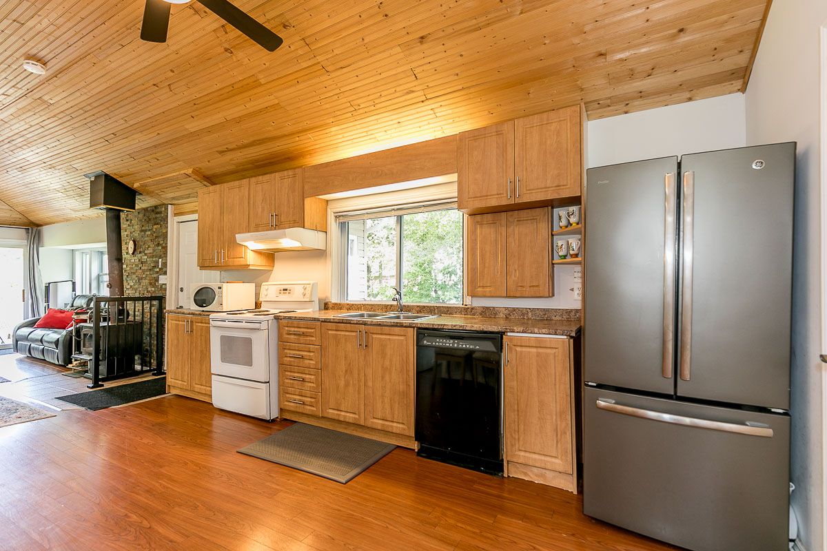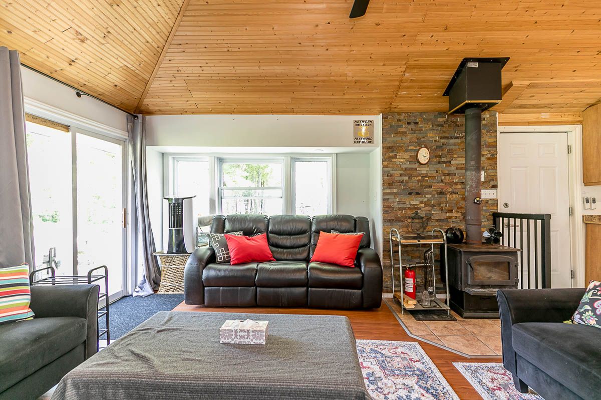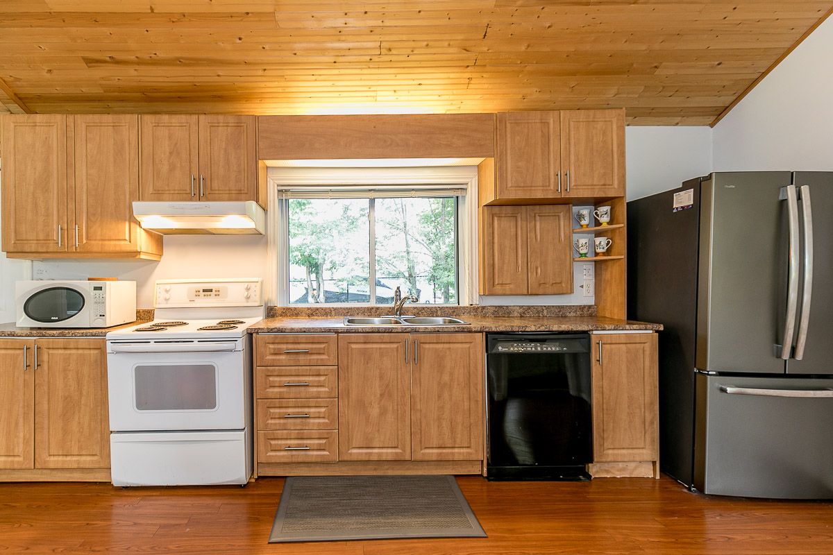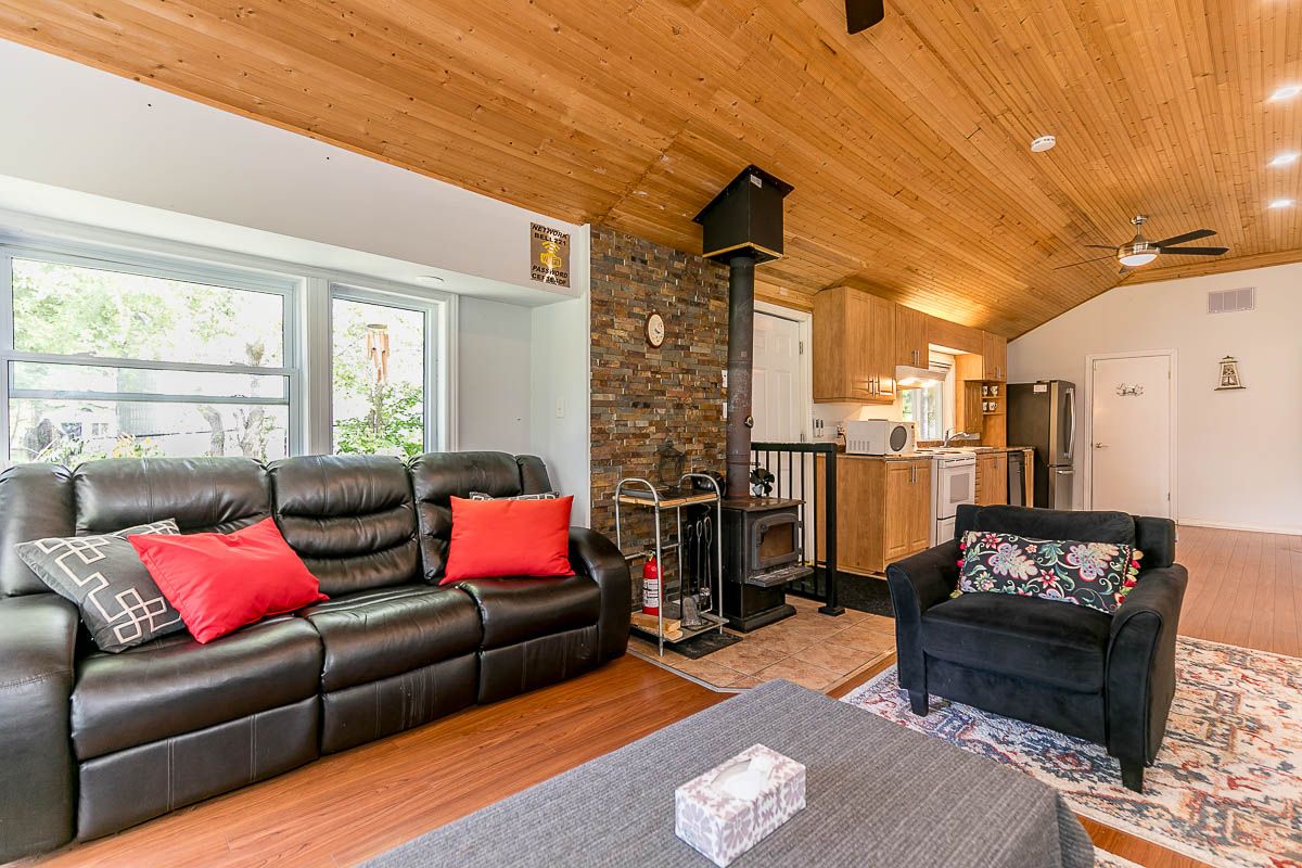 Spectacular Year Round Waterfront Home Situated On Over Half An Acre with a beautiful 27Ft of waterfront. Well Manicured Land! This cozy cottage offers a peaceful retreat from the hustle and bustle of everyday life. The cottage features four comfortable bedrooms, providing ample space for family and friends to stay. The interior exudes a rustic charm with wooden accents and a cozy fireplace in the living room, creating a warm and inviting atmosphere. Large windows let in plenty of natural light and offer views of the surrounding greenery. Enjoy The Outdoor Space With A Large Patio, New Hot Tub, Firepit, Plus Private Playground For Kids, Minutes To Local Restaurants & Bar, Coffee Shop, Grocery, Large Boat Launch Area. Property Is On School Bus Route And City's Garbage Removal Route. All Sheds Have Power. Electronic Plugs Extended To The Waterfront Behind Kayak Rack,,,,Upgraded Electric Panel (200Amp), New Hottub ($12K), New Portable Ac, Pot Lights, 3 Powered Sheds, Insulation&Roof(2019) Septic Tank (2019). Shoreline Improvement ($20K), Enjoy Fishing, Kayak,Boat,Paddle Board Off Your Very Own Privatedock,