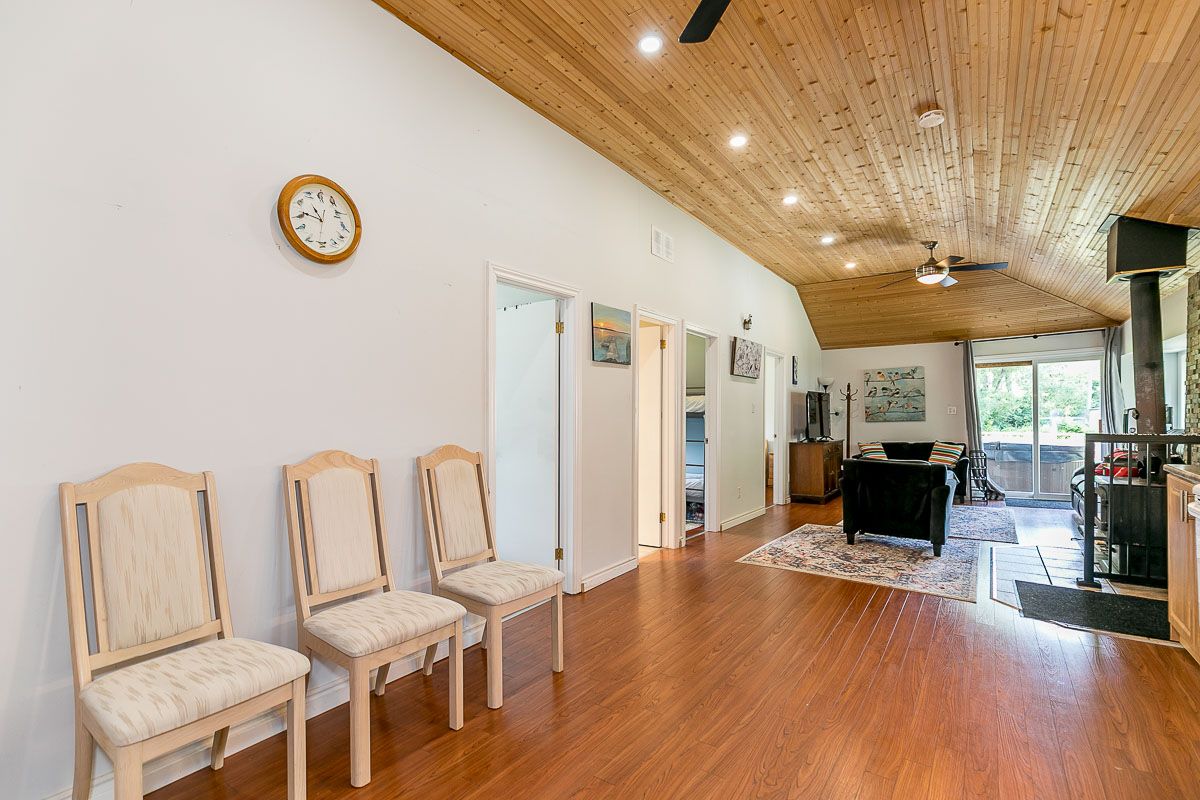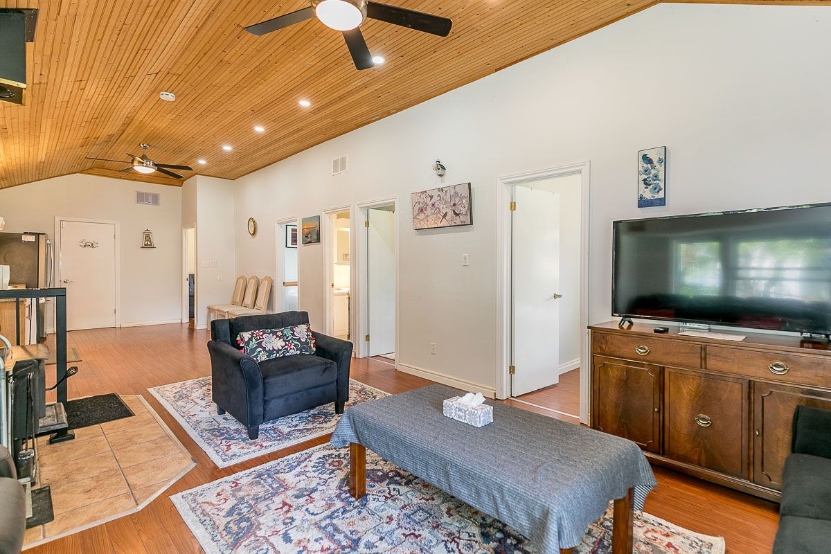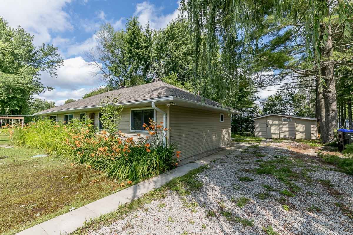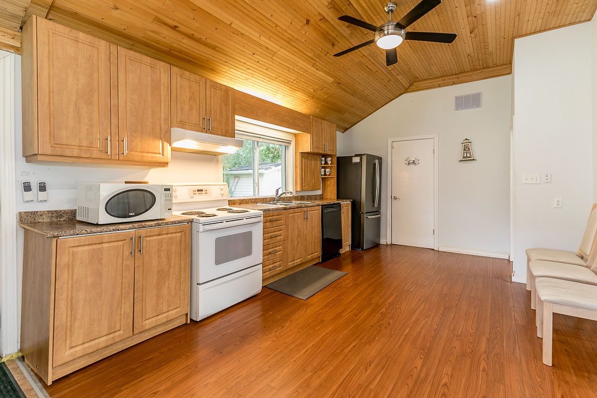 Spectacular Year Round Waterfront Home Situated On Over Half An Acre with a beautiful 27Ft of waterfront. Well Manicured Land! This cozy cottage offers a peaceful retreat from the hustle and bustle of everyday life. The cottage features four comfortable bedrooms, providing ample space for family and friends to stay. The interior exudes a rustic charm with wooden accents and a cozy fireplace in the living room, creating a warm and inviting atmosphere. Large windows let in plenty of natural light and offer views of the surrounding greenery. Enjoy The Outdoor Space With A Large Patio, New Hot Tub, Firepit, Plus Private Playground For Kids, Minutes To Local Restaurants & Bar, Coffee Shop, Grocery, Large Boat Launch Area. Property Is On School Bus Route And City's Garbage Removal Route. All Sheds Have Power. Electronic Plugs Extended To The Waterfront Behind Kayak Rack,,,,Upgraded Electric Panel (200Amp), New Hottub ($12K), New Portable Ac, Pot Lights, 3 Powered Sheds, Insulation&Roof(2019) Septic Tank (2019). Shoreline Improvement ($20K), Enjoy Fishing, Kayak,Boat,Paddle Board Off Your Very Own Privatedock,
