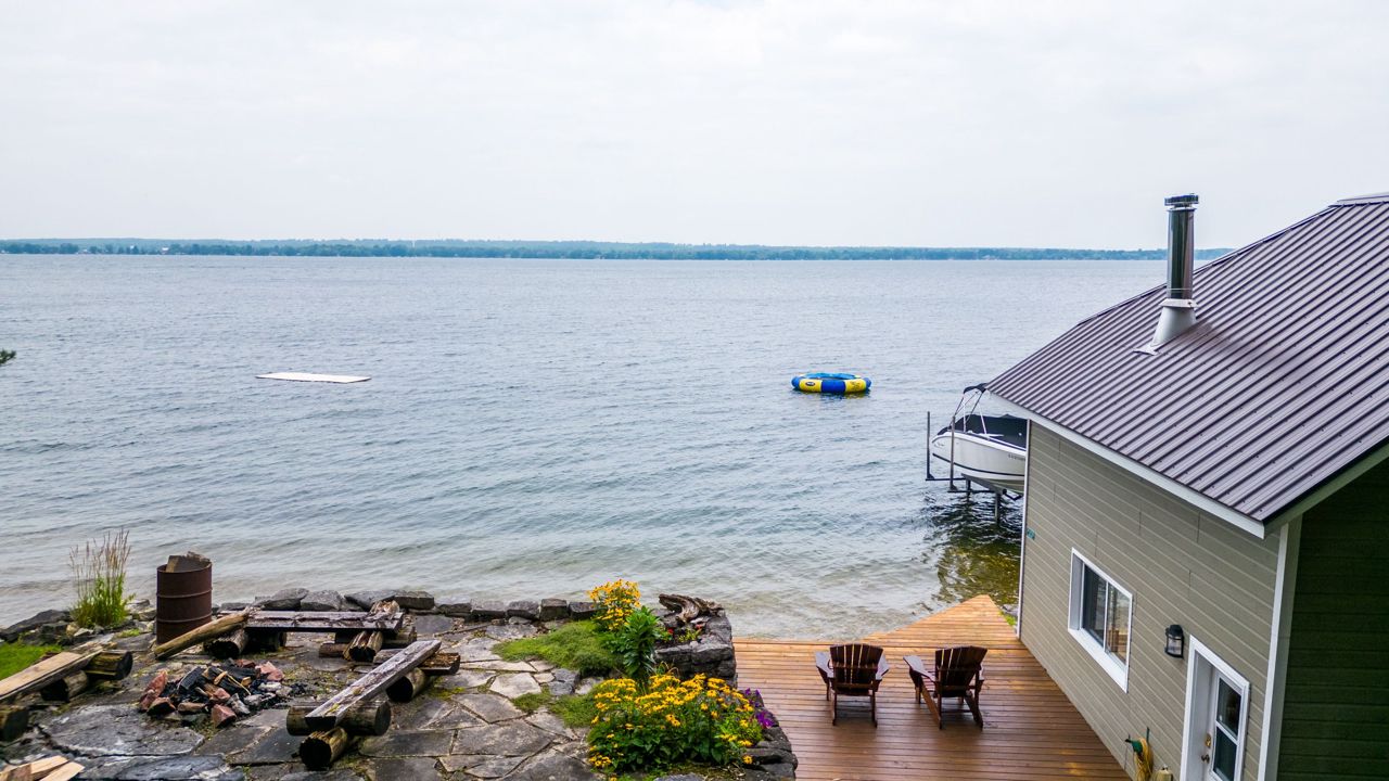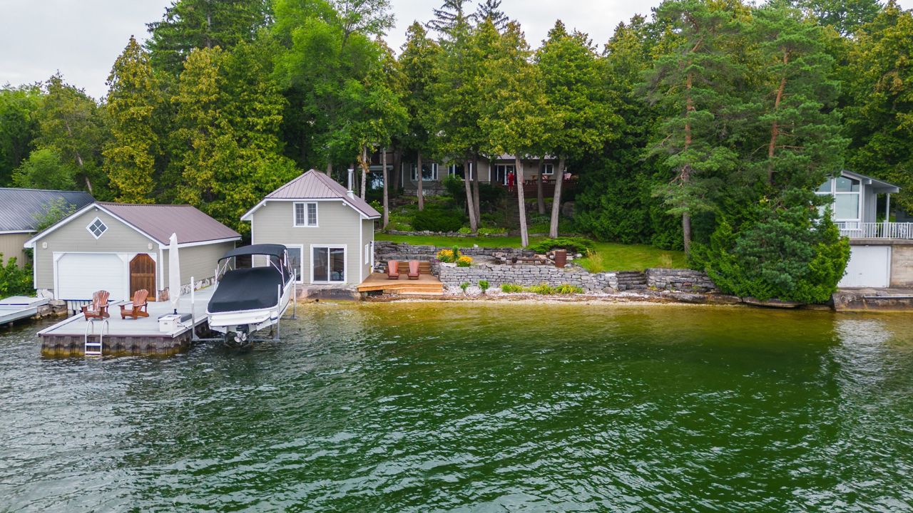 Secluded, serene, waterfront perfection! Nestled on a double lot on the eastern side of beautiful Lake Couchiching this 1234 square foot cottage with a 2-level bunkhouse has room for all to create unforgettable memories. The gorgeous eat-in kitchen w/quartz counters, custom cabinetry, gas stove top, double oven & double dishwasher provides the perfect space to create culinary masterpieces. Spend evenings playing games or just relaxing in front of a cozy fire in the living room while you watch the sunset. Have your morning coffee on your very own Juliette deck off the primary bedroom. Walk to your 120' of waterfront via the stone pathways through your landscaped yard equipped with an inground irrigation system for easy maintenance. Enjoy all summer activities right from your own deck. Walk into the water for a swim, paddleboard, kayak or canoe. The boathouse with lift lets you park your boat right at the cottage for immediate access to miles of boating and Trent Severn Waterway System.Road maintenance fee - $200 per year - includes snow removal and maintenance. Siding is wood composite.