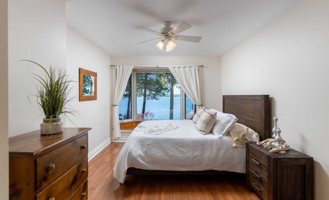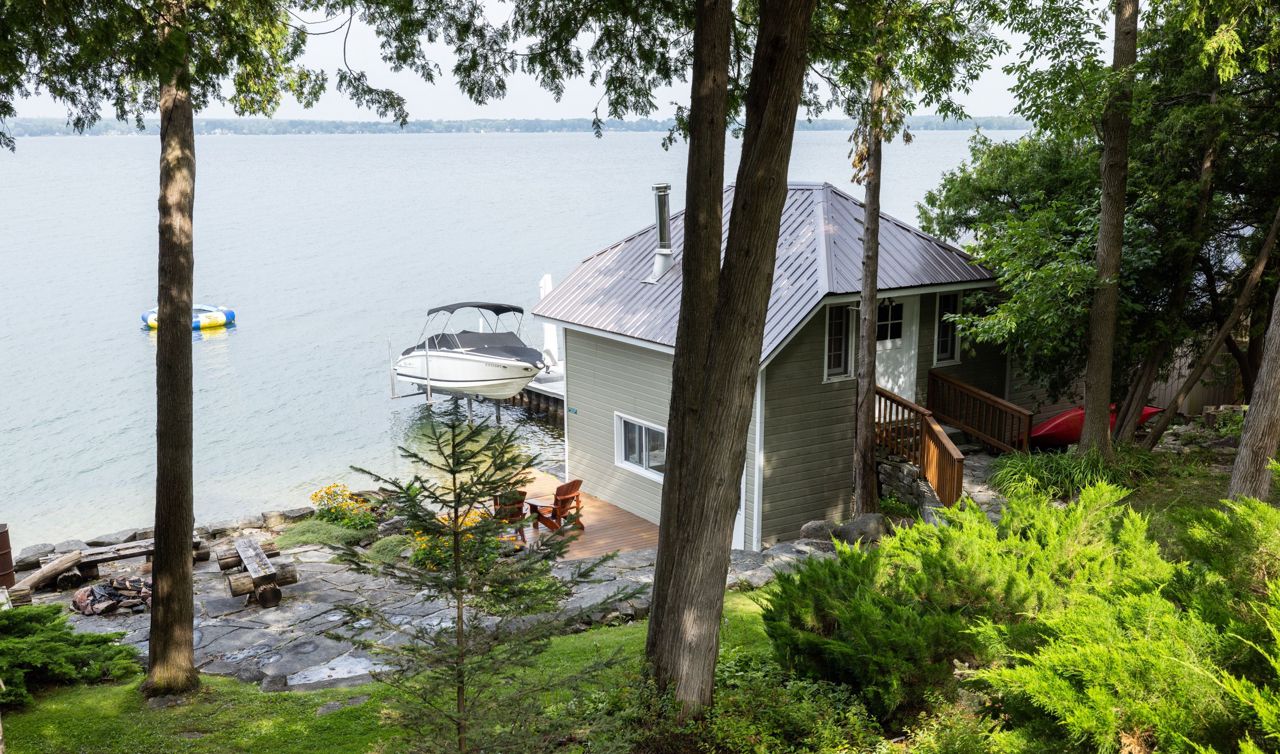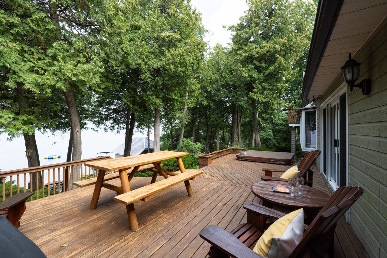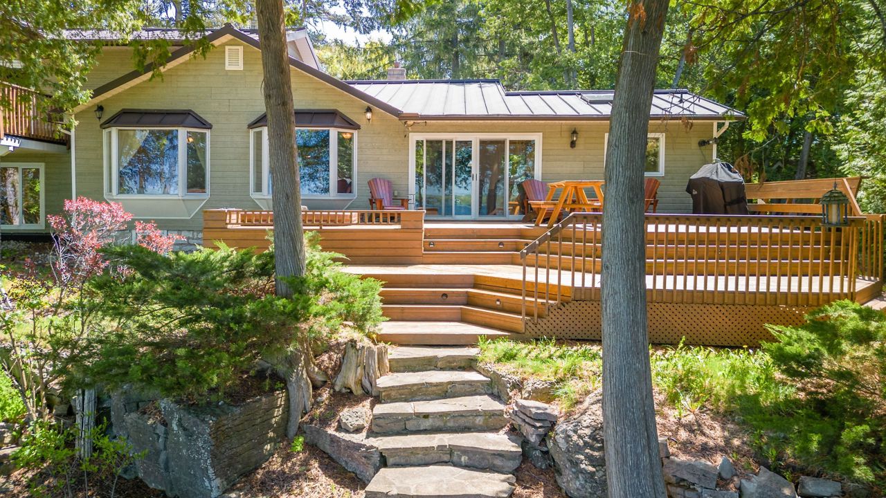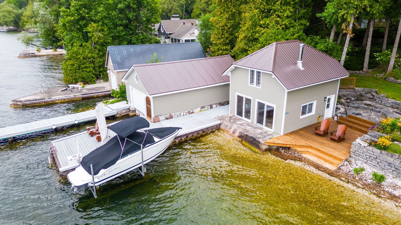 Secluded, serene, waterfront perfection! Nestled on a double lot on the eastern side of beautiful Lake Couchiching this 1234 square foot cottage with a 2-level bunkhouse has room for all to create unforgettable memories. The gorgeous eat-in kitchen w/quartz counters, custom cabinetry, gas stove top, double oven & double dishwasher provides the perfect space to create culinary masterpieces. Spend evenings playing games or just relaxing in front of a cozy fire in the living room while you watch the sunset. Have your morning coffee on your very own Juliette deck off the primary bedroom. Walk to your 120' of waterfront via the stone pathways through your landscaped yard equipped with an inground irrigation system for easy maintenance. Enjoy all summer activities right from your own deck. Walk into the water for a swim, paddleboard, kayak or canoe. The boathouse lets you park your boat right at the cottage for immediate access to miles of boating and Trent Severn Waterway System.Road maintenance fee - $200 per year - includes snow removal and maintenance. Siding is wood composite.