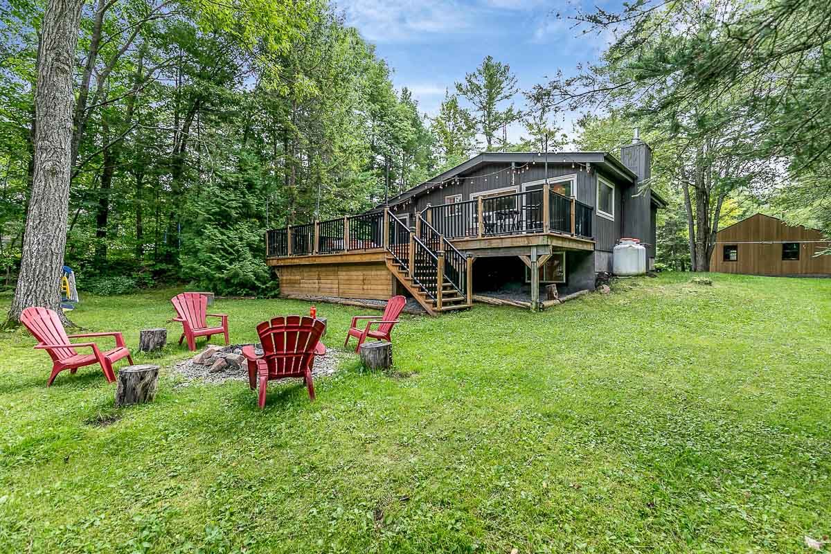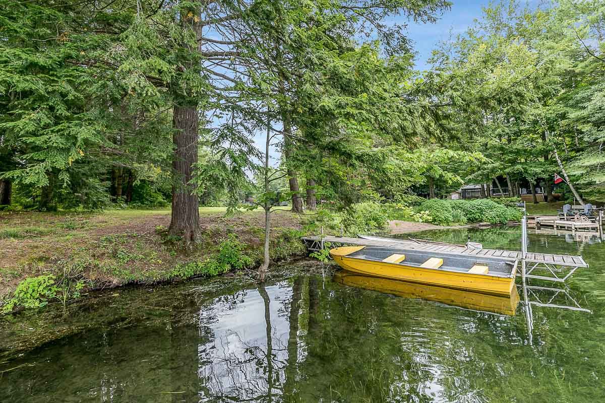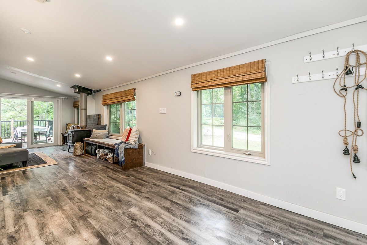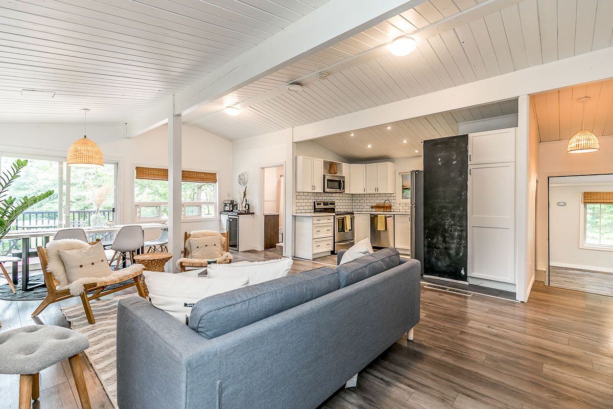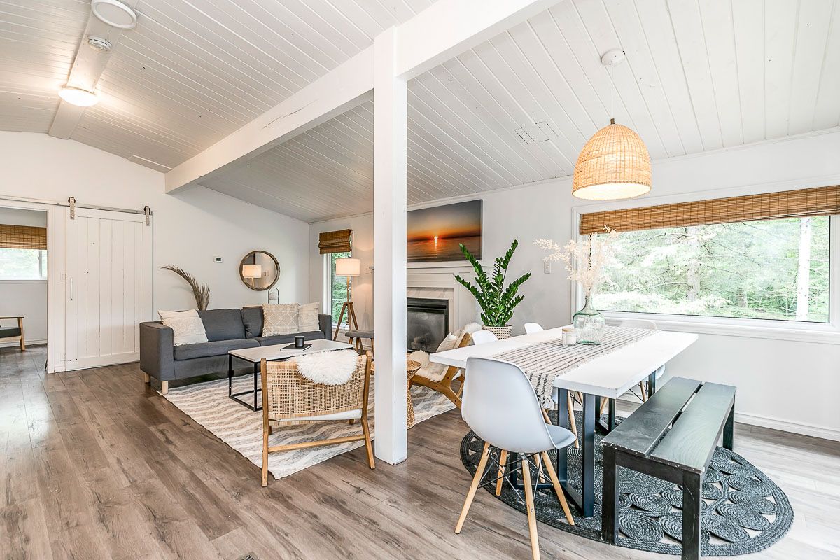 Embrace, small town living in this charming boho style, 4 season riverfront home. This bright, open concept 2+2 bedroom, 1+1 bathroom home sits on a large treed lot with a double detached garage backing onto a field of green space. Enjoy riverfront views and sunsets from the living/dining area or from the full walk out waterfront deck with 2 double sliding glass doors. Entertain friends and family from the walk out dining space or cozy up by the fire in the built in outdoor fire-pit. This property is a summer dream but winter is even better tucked up by the living room fire or the wood stove in the 3 season addition after a day of sledding, fishing or skating. This family home was also licensed for an airbnb rental with the township of Ramara so has tons of investment potential.Fridge, stove, microwave, dishwasher, washing machine, dryer, water treatment system.