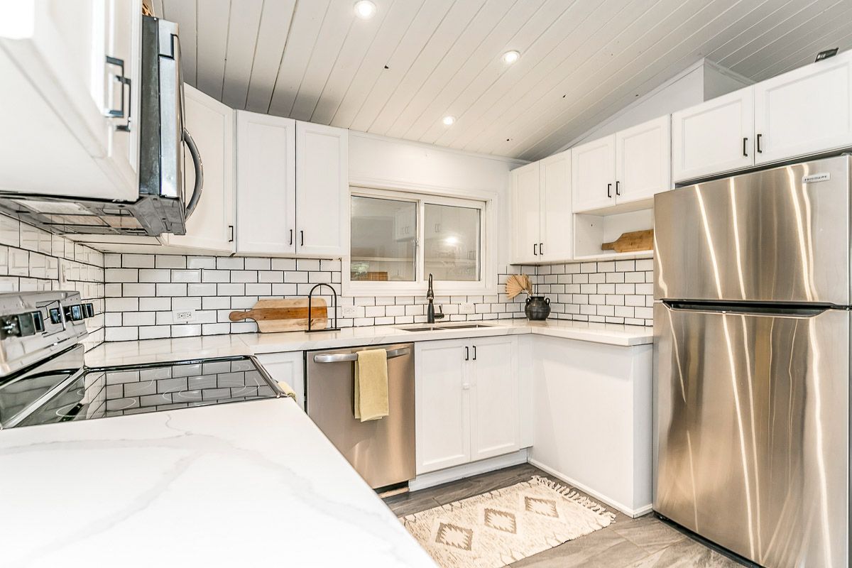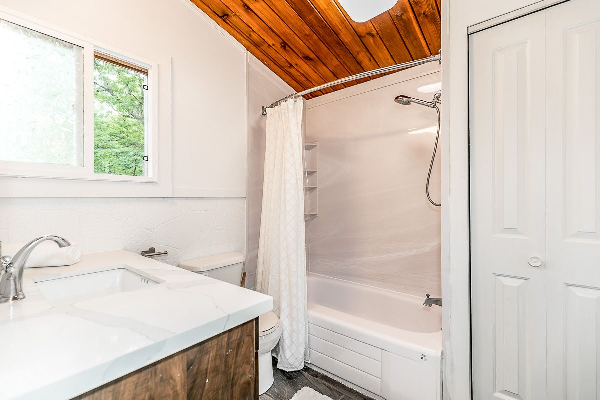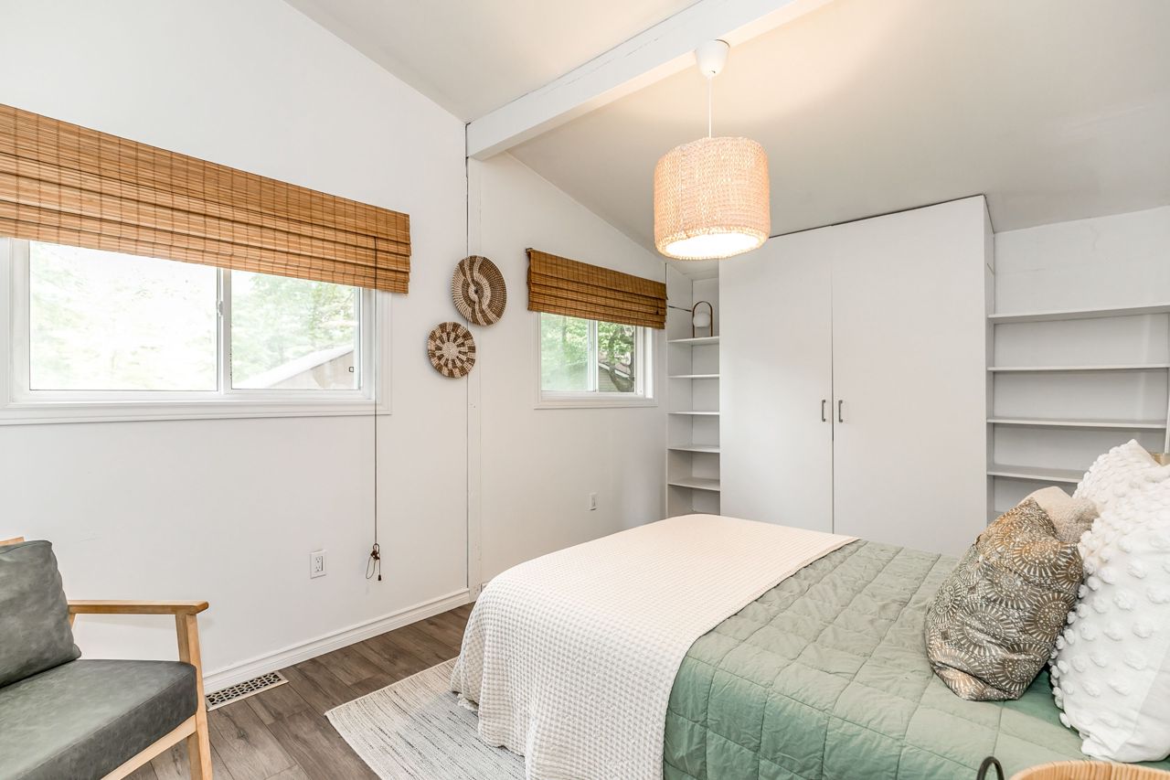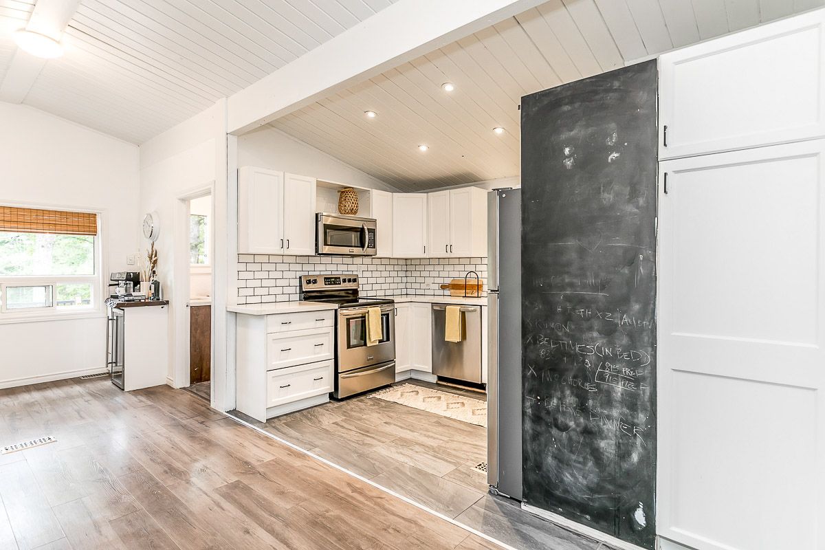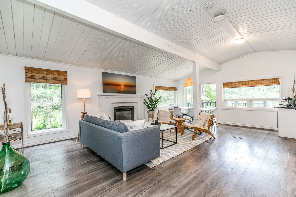 Embrace, small town living in this charming boho style, 4 season riverfront home. This bright, open concept 2+2 bedroom, 1+1 bathroom home sits on a large treed lot with a double detached garage backing onto a field of green space. Enjoy riverfront views and sunsets from the living/dining area or from the full walk out waterfront deck with 2 double sliding glass doors. Entertain friends and family from the walk out dining space or cozy up by the fire in the built in outdoor fire-pit. This property is a summer dream but winter is even better tucked up by the living room fire or the wood stove in the 3 season addition after a day of sledding, fishing or skating. This family home was also licensed for an airbnb rental with the township of Ramara so has tons of investment potential.Fridge, stove, microwave, dishwasher, washing machine, dryer, water treatment system.