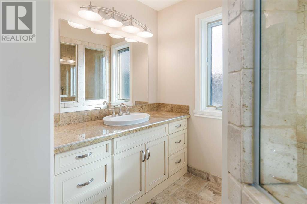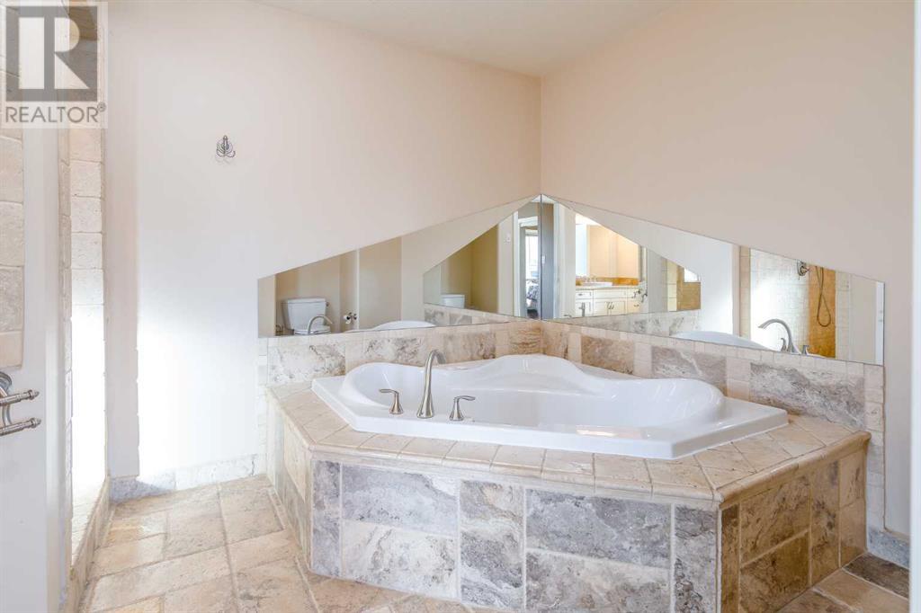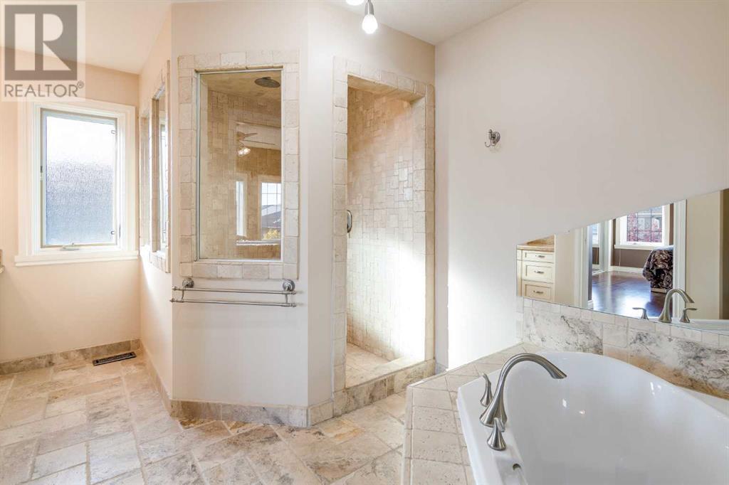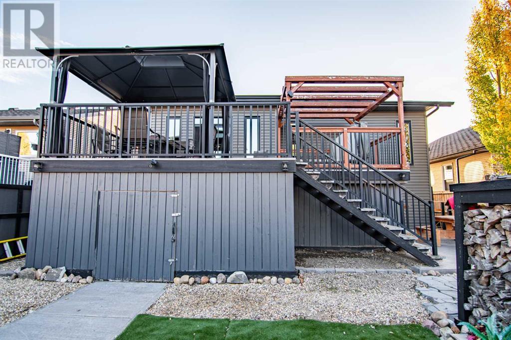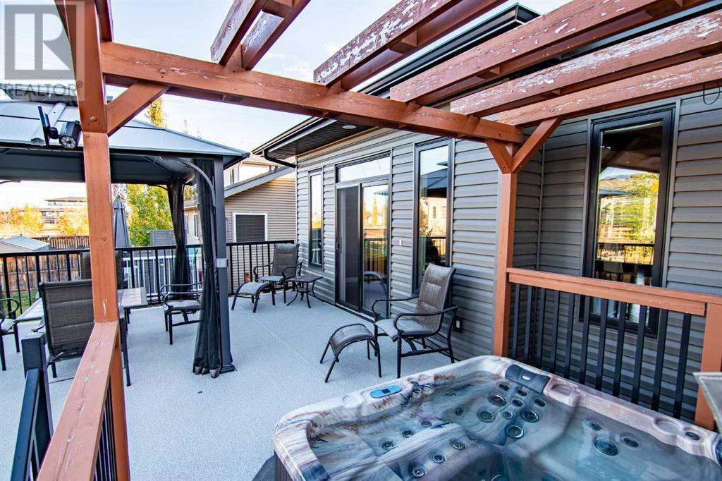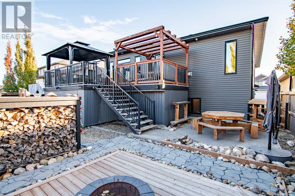 Outstanding quality will impress you top to bottom! 10 out of 10 - this home checks all the boxes. Located on a quiet family oriented close in one of the most desirable subdivisions in Red Deer. This is fabulous, over 1940 sq. ft. Modified Bi Level (that is above ground - yes that is a large house!) with a fabulous Master Suite is fully finished! It comes with a desirable theatre room in the basement, large lot and all the options and showcase features modern homes can offer! Open concept main floor welcomes you with a spacious tiled entryway and spectacular ceilings and leads you to a super bright and large living room combined with a kitchen and dining area. Fantastic kitchen- it will wow you! It provides everything you need as the family cook! It has tiled countertops and sink, eating bar, upgraded cabinetry with elegant back splash, it comes with a full top of the line-appliance package, great pantry and more. Dining area has patio doors to a huge, freshly redone - deck 26 x 16 perfect for entertainment with hot tub (5 years old include) and gazebo all reinforced with steel support, and gas line for a BBQ. Living room is bright with large windows, a custom and unique fireplace, custom blinds and 10 ft ceilings! There is a main floor laundry right in the main bathroom and a walk in closet with room for the whole family. There is a 1 bedroom, office on the main and Master suite (double closets , ensuite ) and bathroom on the top floor a couple steps away above the garage. Perfect for a family with children. Retreat to the dreamy Master suite that has it all, 2 closets and gorgeous spa-like en-suite finished with real TRAVERTINE tile. It is equipped with: beautiful vanity with sink, tiled elegant shower and toilet. Basement is meant for entertaining and it is ready for you. It consists of 2 more bedrooms, rec room, bathroom, fully equipped theatre room, storage and utility room. You have access here to the professionally landscaped backyard with a storage under t he deck. West facing yard is fully fenced and has a back alley behind! Completed with separate sections for entertaining. Home is perfect for a family with access to a good sized yard for all the extras! Wait until you see the top of the line equipment in the furnace room! Upgrades include: in floor heat, hot water on demand, R2000 insulation, plywood not usb under floors, Commercial grade HRV, Roughed in for Hydro flow, security system, commercial grade fan, steel frame for hot tub, . Please don't forget about the double garage 24 x 21 that has a drain connected to city sewer, it is insulated, has gas hook ups for heater, bi - shelving and it is drywalled and insulated. It will fit 2 vehicles and much more! A pleasure to show. This one is a must on your shopping list! List of upgrades included in the document section. (id:22211)