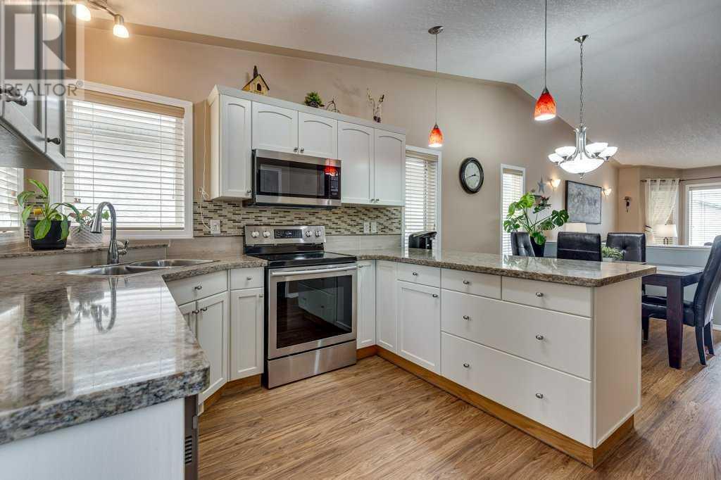 Pride of ownership is evident in this fully finished bi-level home found in the sought after subdivision of Devonshire in South Red Deer. It offers five bedrooms, three bathrooms, two living areas, lots of storage and a large maturely landscaped yard with an upper and lower deck. You will find an open floor plan on the main level, from the kitchen to the dining and living room, which makes this a great place to entertain your friends or spend time with the family. The kitchen offers plenty of beautiful cabinets and counter space completed with a beautiful granite countertop and finished off with a nice appliance package. There are three good-sized bedrooms on the main floor as well. The primary bedroom is an extra-large size and offers plenty of closet space and an en suite. The home has an abundance of large windows that let the natural light soar through, making this a bright and sunny home. The basement is completely developed and offers a large family room with a stand up bar and corner fireplace, two good sized bedrooms, a large laundry room and plenty of storage. Some updates to the home include; New shingles in 2019, new flooring in 2022, kitchen cabinets repainted in 2023 and some other recent painting updates. (id:22211)