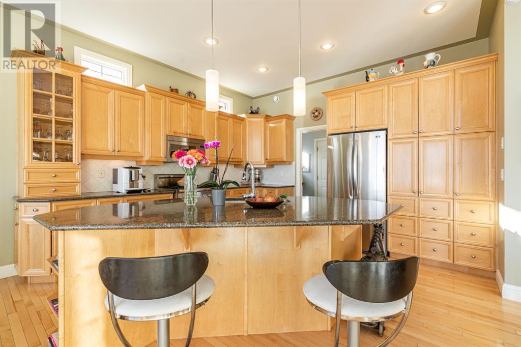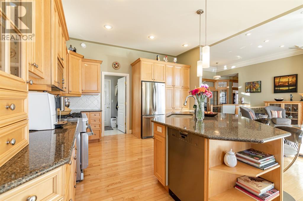 ON THE NORTH SIDE OF THE LAKE WITH A SOUTH FACING REAR YARD ! Open main floor plan. This custom built home has many special features , such as triple pane windows throughout. As soon as you walk in you see a stunning view of the lake. The living room features 14' and 16' coffered ceilings. The kitchen features a granite topped island and eating bar. and features Stainless Steel appliances ( including a Thermador gas stove). There is also large pantry off the mudroom. The living room has a gas fireplace with stone tile facing stone and a mantle. There are 2 curios cabinets on either side of the fireplace. There also is a formal dining room as well as the eating area in the kitchen. There is a well sized Master bedroom plus 2 other bedrooms. There is a laundry chute in the closet in the NE bedroom. Follow the curved staircase to the fully finished basement with a cozy family room with a second gas fireplace, games area with a pool table plus 2 more bedrooms. In floor heat plus central air conditioning. The family room has been painted and the curvy stairs have been refinished. Step outside to enjoy the private backyard. It's all here in this beautiful home! (id:22211)
