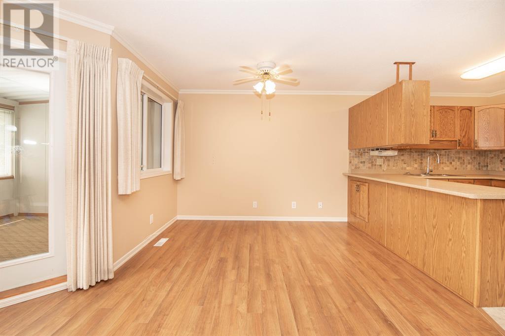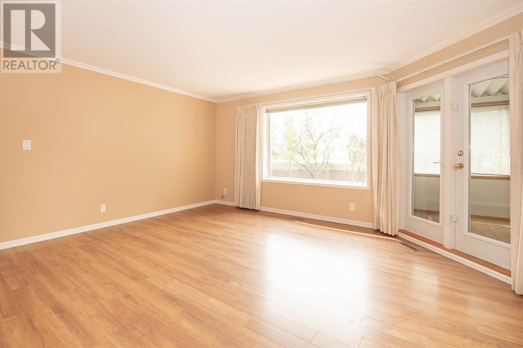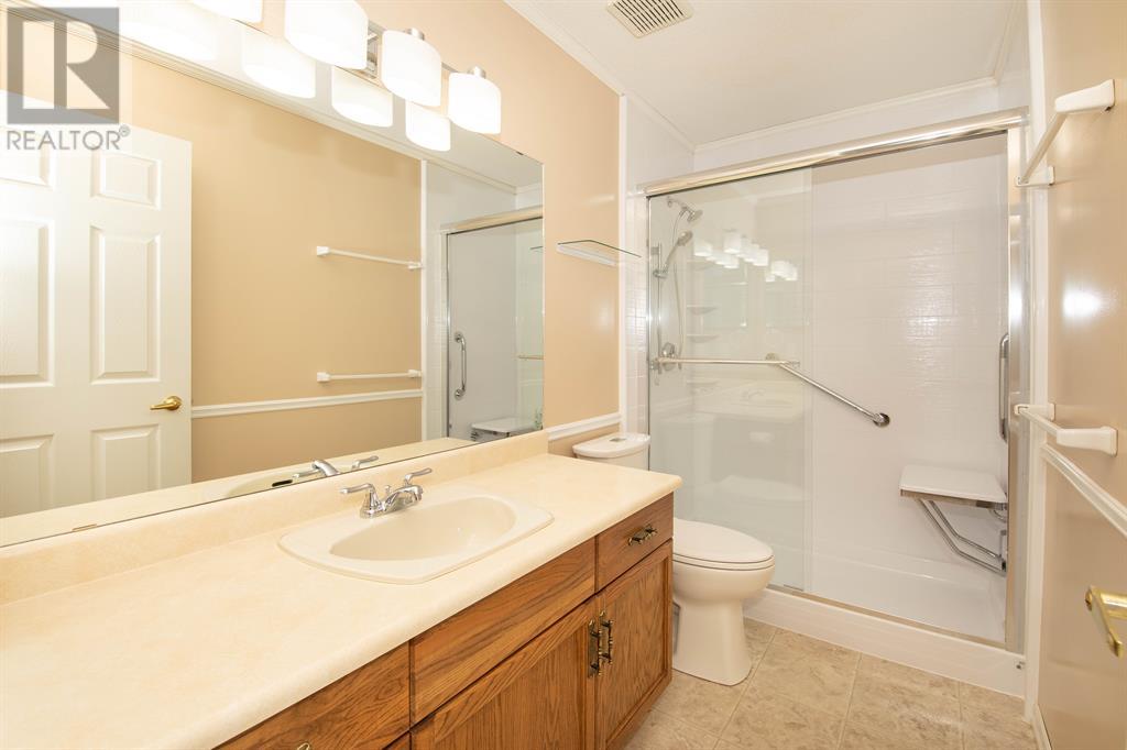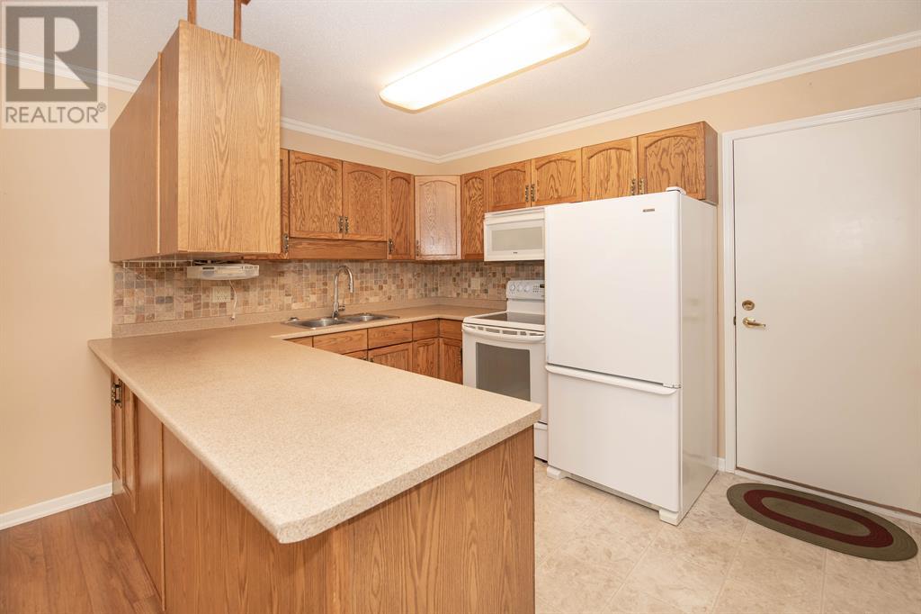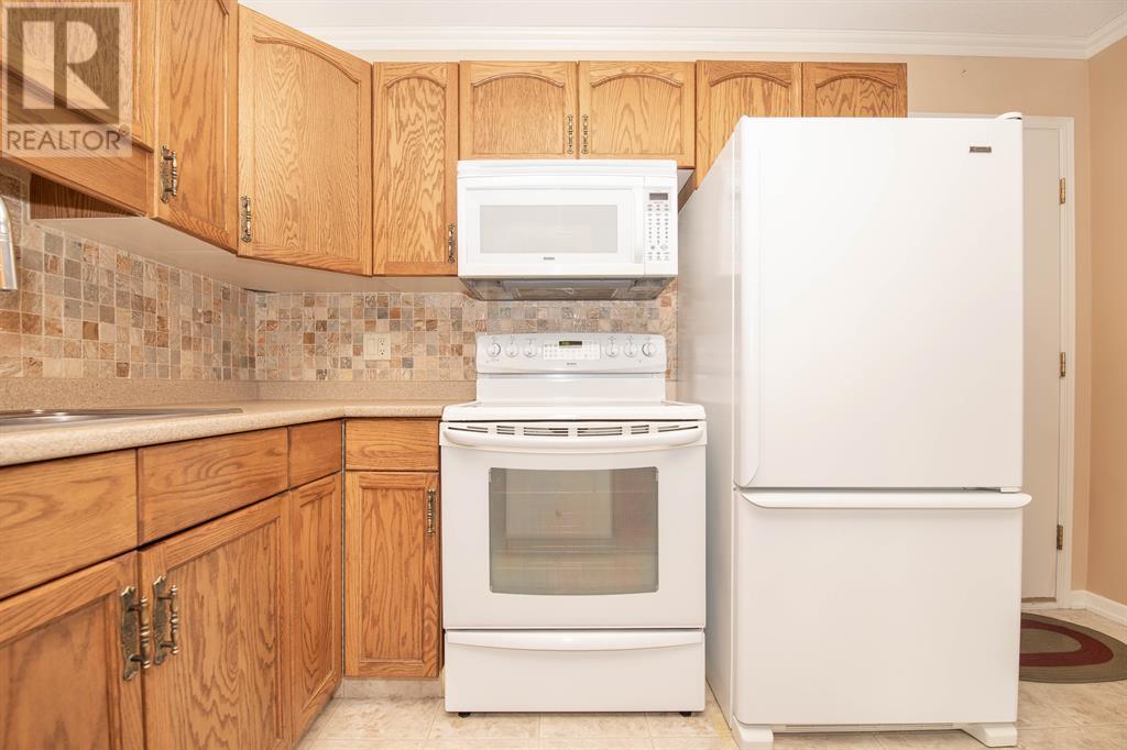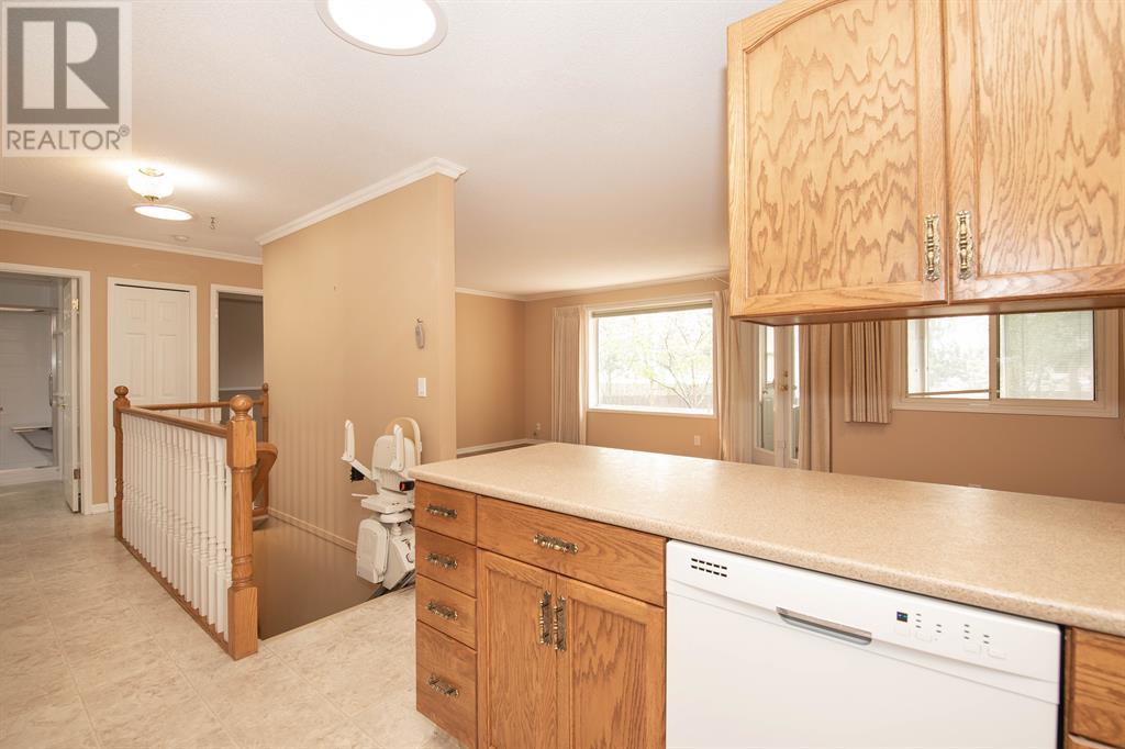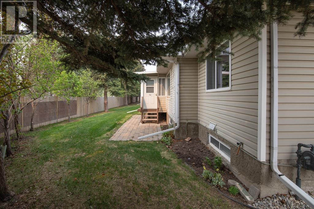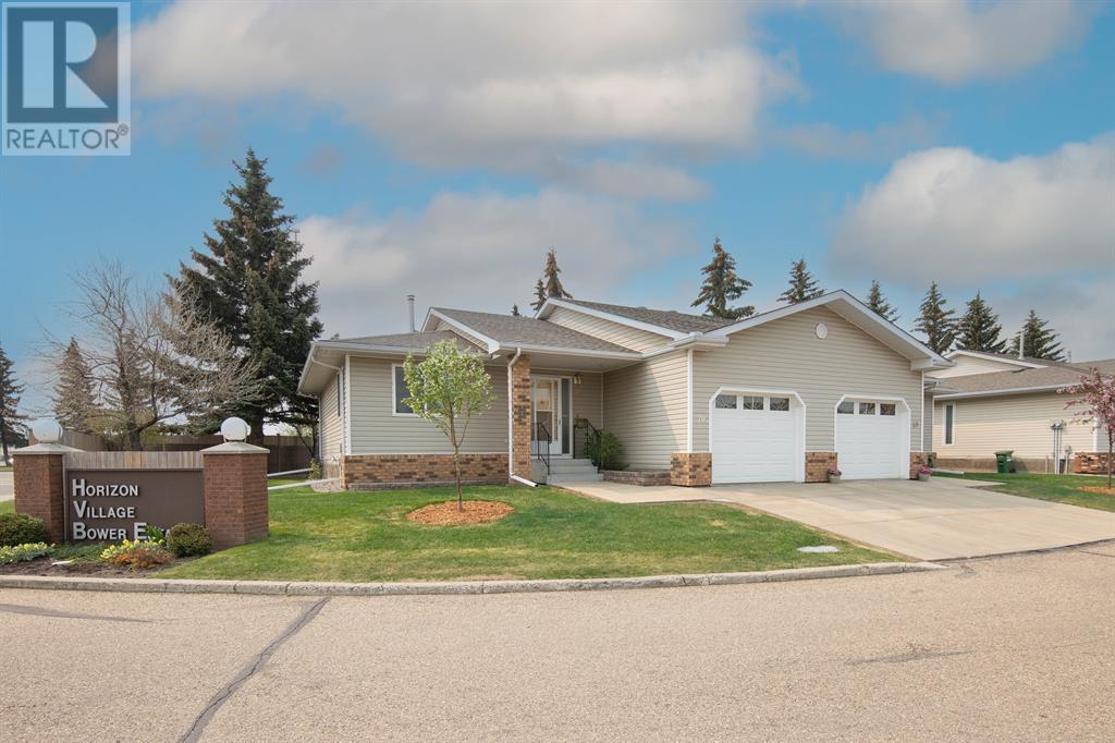 A fully developed, adult half duplex in desirable Horizon Villages. Perfectly situated in the complex as an end unit with a large private yard that is beautifully landscaped. Oak kitchen cabinets are complemented by the laminate counters, full tile backsplash, sink & tap that were all replaced about ten years ago. There is an additional storage cupboard on the backside of the kitchen that adjoins the eating area. Single plank laminate floors & ceiling crown mouldings run through the living room that is flooded with natural light through the large vinyl window that has a nice view to the treed backyard. There are also tube skylights that let in tons of natural light. You will enjoy the three season room that leads out to the lower level patio. The primary bedroom has laminate flooring & a window to the backyard with a custom valance & darkening curtains. There is a second bedroom (makes a nice office), a 4 piece bathroom with oak cabinets, a low flush toilet, a newer walk-in glass/tile shower, upgraded lighting and a medicine cabinet. There is main floor laundry for your convenience & two linen closets with extra shelving. Follow the stairs down to the fully developed basement (chair lift included). The family room has laminate flooring, book shelves & a gas stove. There is a den, a 3rd bedroom (window doesn't meet egress) with laminate flooring, a 3 piece bathroom (with safety grab bars installed), a storage room/workshop & laundry hook ups. The private backyard has a garden, a patio stone lower level patio, lattice for privacy, some newer trees including Japanese lilacs & a nice side yard. The front yard has a tree out front that was replaced 2 years ago & planters on both sides of the front step. The poly b plumbing & hot water tank were replaced in 2017. The furnace was serviced and cleaned in September 2021. Enjoy the condo lifestyle with exterior maintenance, snow removal, lawn care all included. There is a club house with a shuffle board, pool table and more! Social events like coffee Saturday mornings, pot lucks and more! (id:22211)