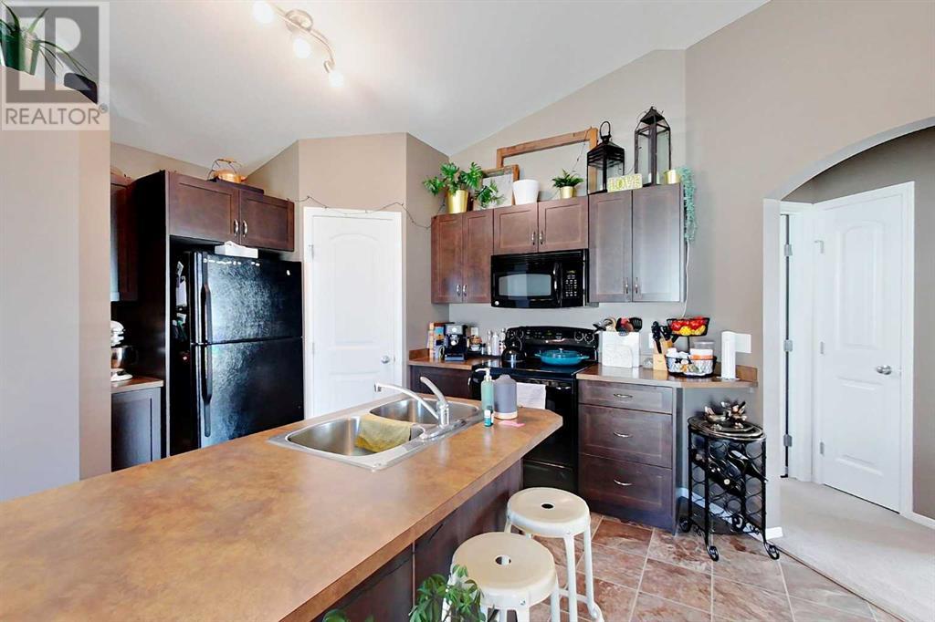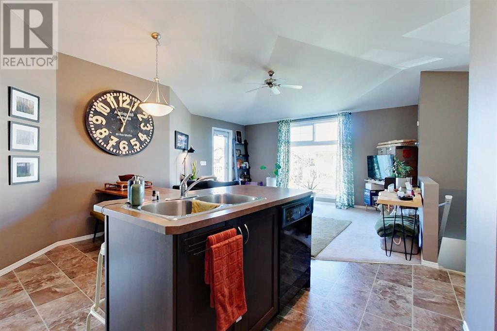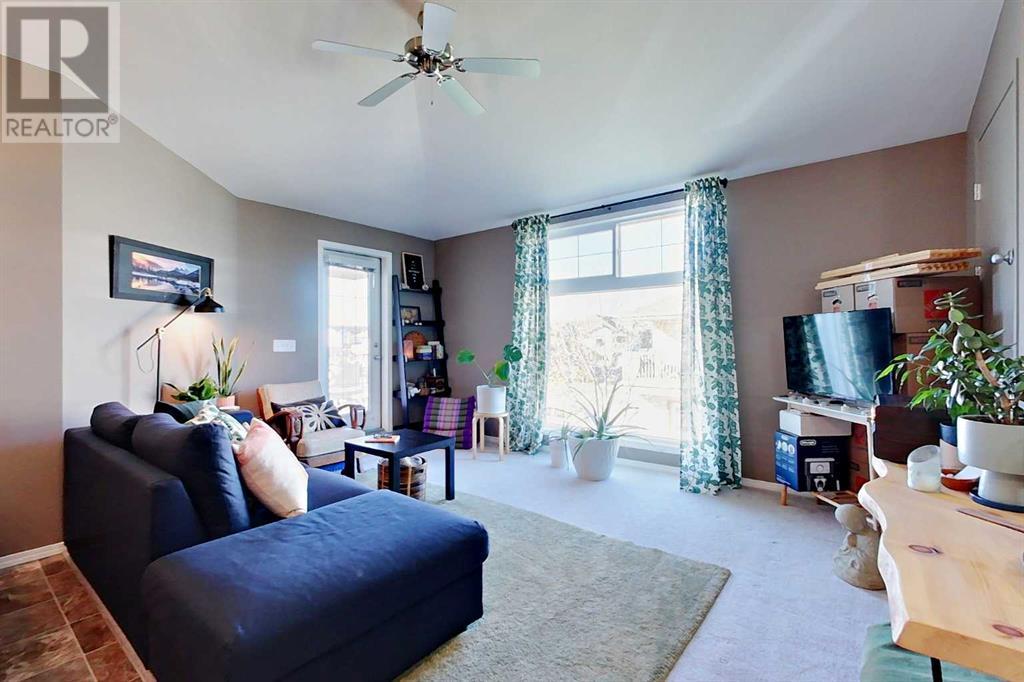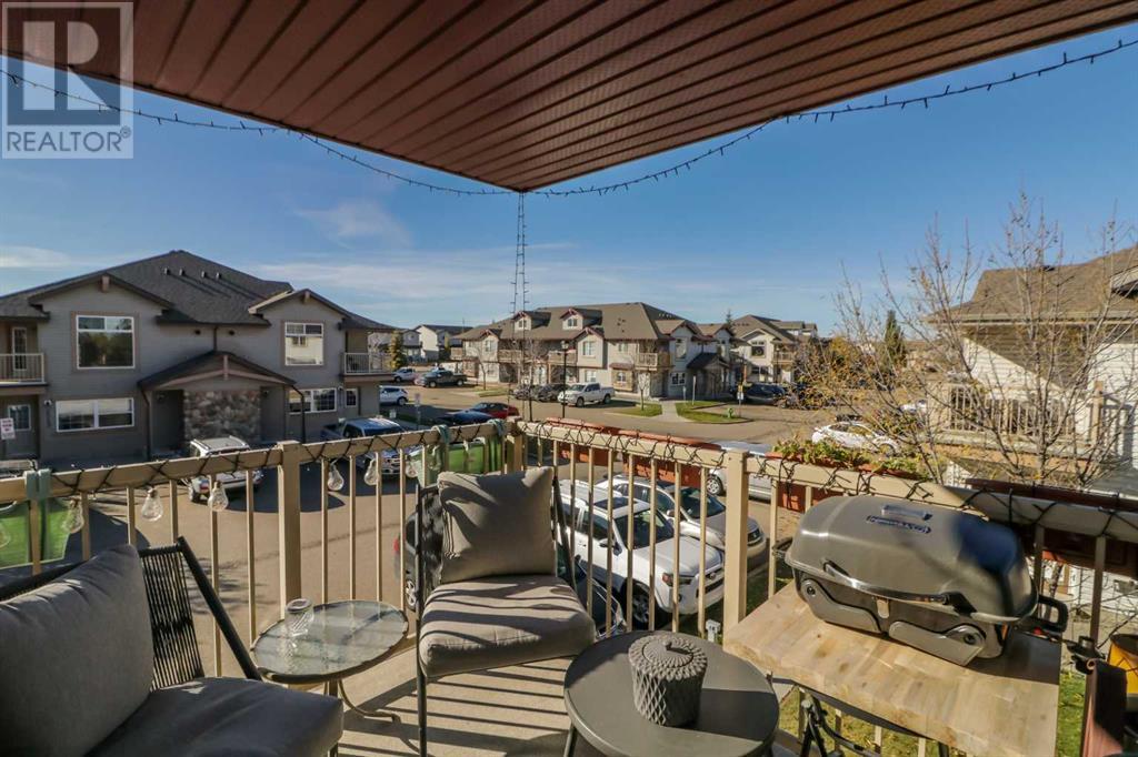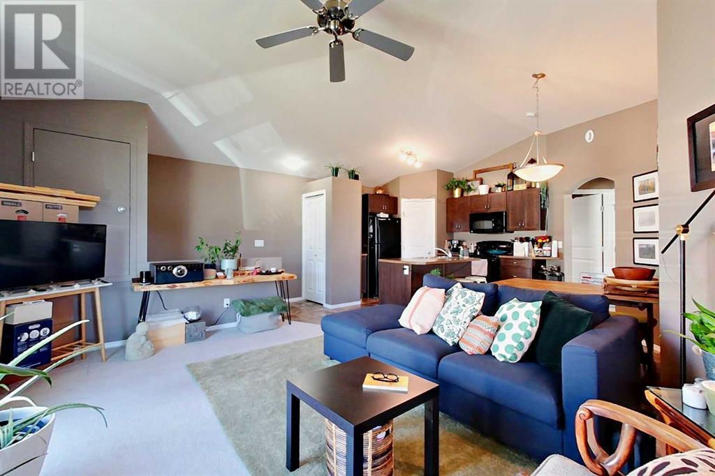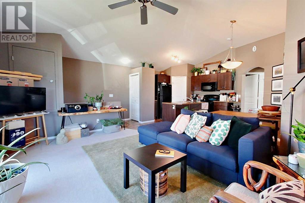Welcome to a life of low maintenance in this bright, open concept and spacious upper unit condo in Johnstone Landing. With two of the main windows (Living room and Primary bedroom) recently upgraded for energy efficiency you will see savings on your energy bills. This charming, open and bright unit offers a great living space. Enjoy the inviting and serene living space with a large window as well as vaulted ceilings in the main living area continuing into the dining and kitchen area offering a space with a seamless flow for entertaining guests or simply relaxing with loved ones. From the living room walk out onto your private, south-facing, covered deck to enjoy the cool summer mornings or relaxing warm evenings. The unit also has 2 nicely sized bedrooms and 1 large well-appointed 4 piece bathroom with attached laundry and storage room. The Primary bedroom offers a modest walk in closet and room for king size furnishings. The second bedroom has a large closet and a roomy floor to ceiling built in bookcase. The entire unit offers in-floor heat with water on demand so even on those chilling days you will have warm toes. The unit comes with 2 conveniently located parking stalls with power. Low condo fees cover the common area maintenance, insurance, parking, reserve fund contributions, snow removal, garbage, and sewer. Johnstone Landing is conveniently located close to shopping, dining, and recreation centers as well as east access to HWY 2 for those fun excursions to the big cities or the picturesque mountains. Small dogs are welcomed upon approval. Available for immediate possession for you to work your magic and make it your own style. (id:22211)