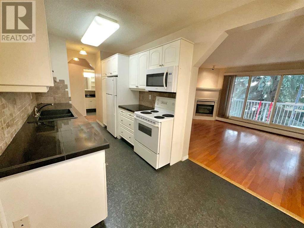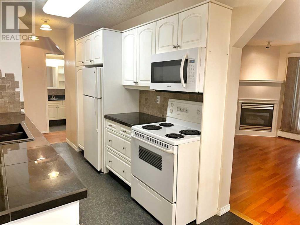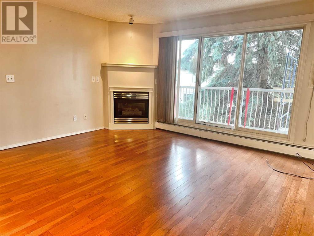 This beautiful downtown condo offers a perfect blend of comfort and style. With hardwood floors, bright white kitchen featuring a tile backsplash, and a private balcony, this condo is perfect for an investor or the young professional. Curl up in front of the corner gas fireplace or unwind in the spacious bedroom. The full 4 piece bath includes a tub/shower combo with brick-like tile surround. Located close to amenities, services, and transit, as well as walking trails and Waskasoo Creek, this professionally managed building is both convenient and attractive. Relax with secured, assigned parking on-site. This clean and comfortable condo is ready for you to call it home! (id:22211)