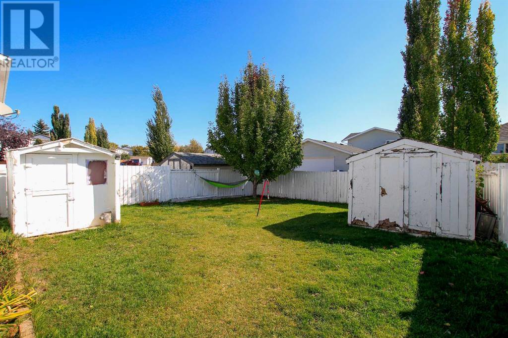 FULLY DEVELOPED 4 BED, 2 BATH BI-LEVEL ~ IN LAW SUITE WITH SEPARATE ACCESS ~ SUNNY SOUTH FACING BACKYARD ~ Mature landscaping in the front yard offers privacy and eye catching curb appeal ~ Covered front veranda welcomes you and leads to a foyer that offers access to the main and lower levels ~ The main floor features large windows offering tons of natural space ~ The kitchen offers a functional. layout with plenty of dark satined cabinets, ample counter space including an island, window above the sink and garden door access to the deck and backyard ~ 3 bedrooms share a 4 piece bath ~ Conveniently located laundry is just off the bedrooms ~ The fully finished basement has an open concept main living space including a kitchenette with a fridge, stove and dishwasher ~ 3 piece bathroom ~ Oversized bedroom with tons of windows can easily accommodate a king bed plus multiple pieces if furniture and has access to the second laundry room ~ A den with built in shelving could be used as a home office, flex space or for storage ~ The fully fenced backyard has back alley access, mature trees, a shed and tons of grassy space ~ Extra long front driveway offers space for two vehicle (tandem) or your toys ~ Excellent location in desirable South East Red Deer with easy access to multiple schools, parks, playgrounds, shopping plazas and all other amenities. (id:22211)