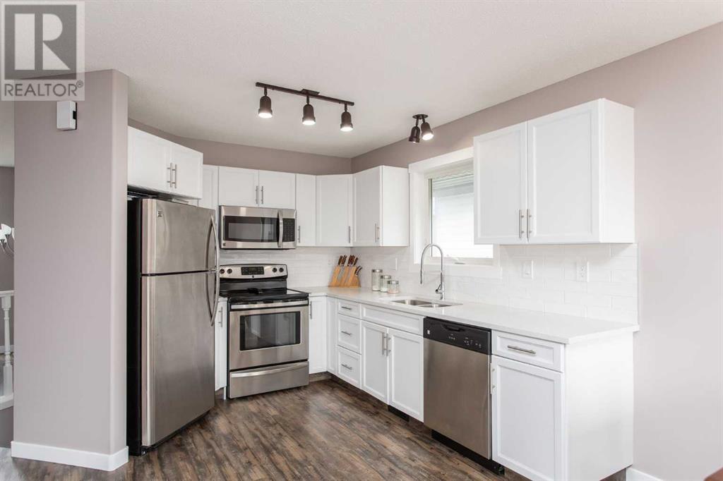 A beautiful start into the market. Absolutely move in ready home for you to enjoy this summer and years to come. A great curb appeal welcomes you in and boasts a nice covered veranda plus a spacious front landing. Fresh paint throughout main level offers a nice clean look plus an inviting atmosphere. All new trim and baseboards give the rooms an enhanced modern feel. Enjoy the hassle free upkeep with easy maintenance vinyl plank flooring recently installed with all new Pro Board underneath excellent for durability and scratch resistance. Step into the updated kitchen adorned with premium finishes. New Quartz counter tops plus an under mount sink with new faucet, resurfaced cabinets, gleaming Stainless Steel appliances plus an attractive Italian ceramic tile backsplash in Subway style pattern. Plenty of natural light pours into the roomy dining area courtesy of the large windows. Two bedrooms on the main level allow for larger room space plus the Primary offers excellent closet storage. Main floor bath has been updated to feature new matching quartz counter, full tile to the ceiling in bath plus new fixtures. The fully developed basement allows for an ideal games area or media space perfect for hosting events or streaming in your favorite shows. A generous guest bedroom for overnight stays or the teenager still at home. The versatile office/study would also make for an excellent hobby space, yoga studio or home library. The lower level bathroom has been updated with a new vanity and fixtures plus also serves a dual purpose feature with combined laundry area as well. Connect to the long term savings that are offered with a brand new furnace recently installed, piece of mind knowing all new plumbing lines put in eliminating the previous Poly-B, cool off during the summer from the A/C unit installed as well ensure protection from the elements as the shingles on the home were just replaced last fall. Other great features include new Decora switches and LED lights thro ughout plus flooring on the lower level. Enjoy an afternoon bbq on the private south facing deck which also offers additional storage underneath or relax and unwind in your own personal small oasis size back yard. Large garden shed included perfect for seasonal items to be locked away plus large parking pad which even offers enough room for a future garage. Located within walking distance to large parks/playgrounds your children can also be the first to attend St. Lorenzo Ruiz Middle School scheduled to open this fall. All the more reasons to make this excellent house your home. (id:22211)