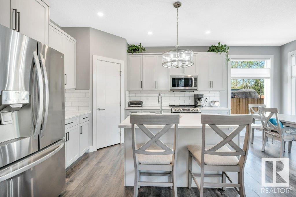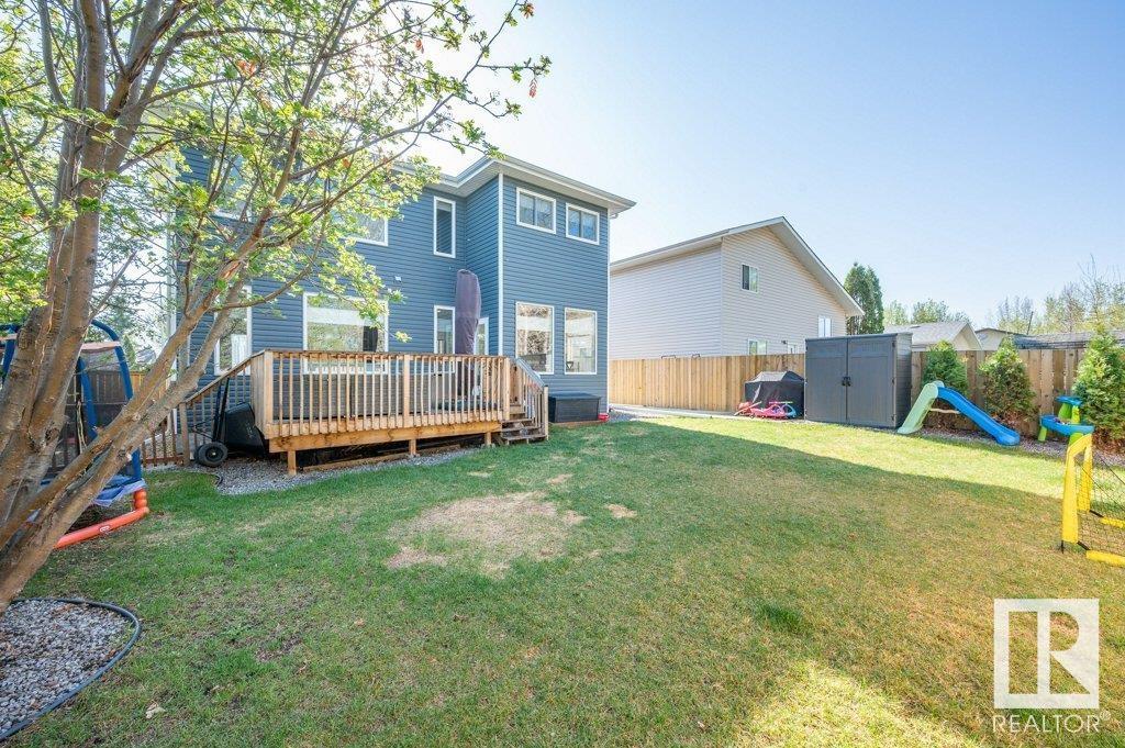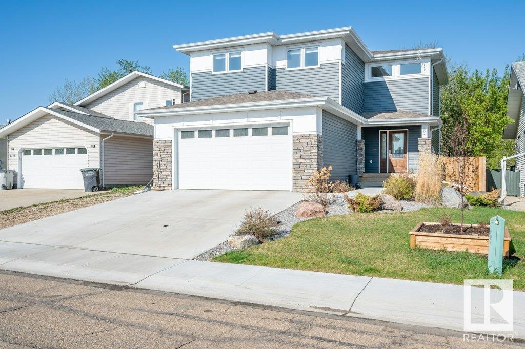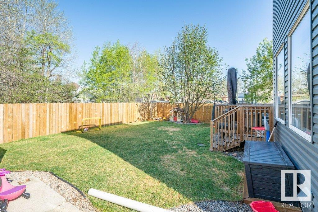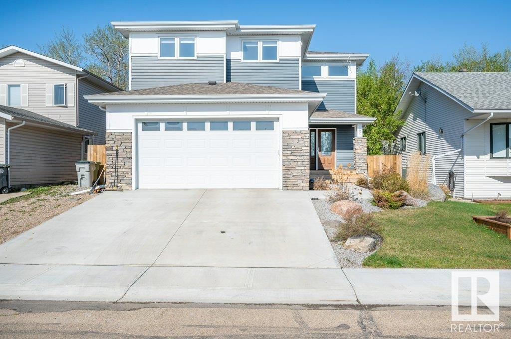 Check out the newest built home in Redwater. This 2-storey home is fully developed from top to bottom. Main floor living room, bathroom, pantry and large kitchen area with the back door leading straight onto your deck. 4 bedrooms and laundry room all on the top floor. Basement has been developed with bathroom, spare bedroom and rec room. No expense was spared in this home from the granite countertops to the stone sinks. Brand new central air conditioning unit installed last year. The yard is fenced and backs onto a park! Front yard was professionally landscaped. To finish it off the double attached garage prepped for a garage heater (id:22211)