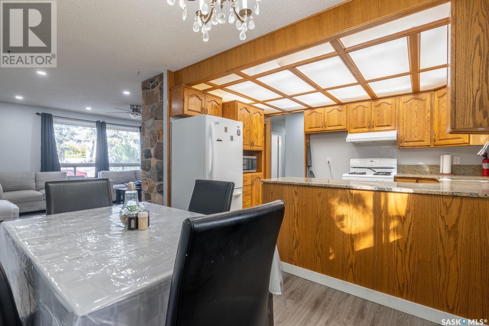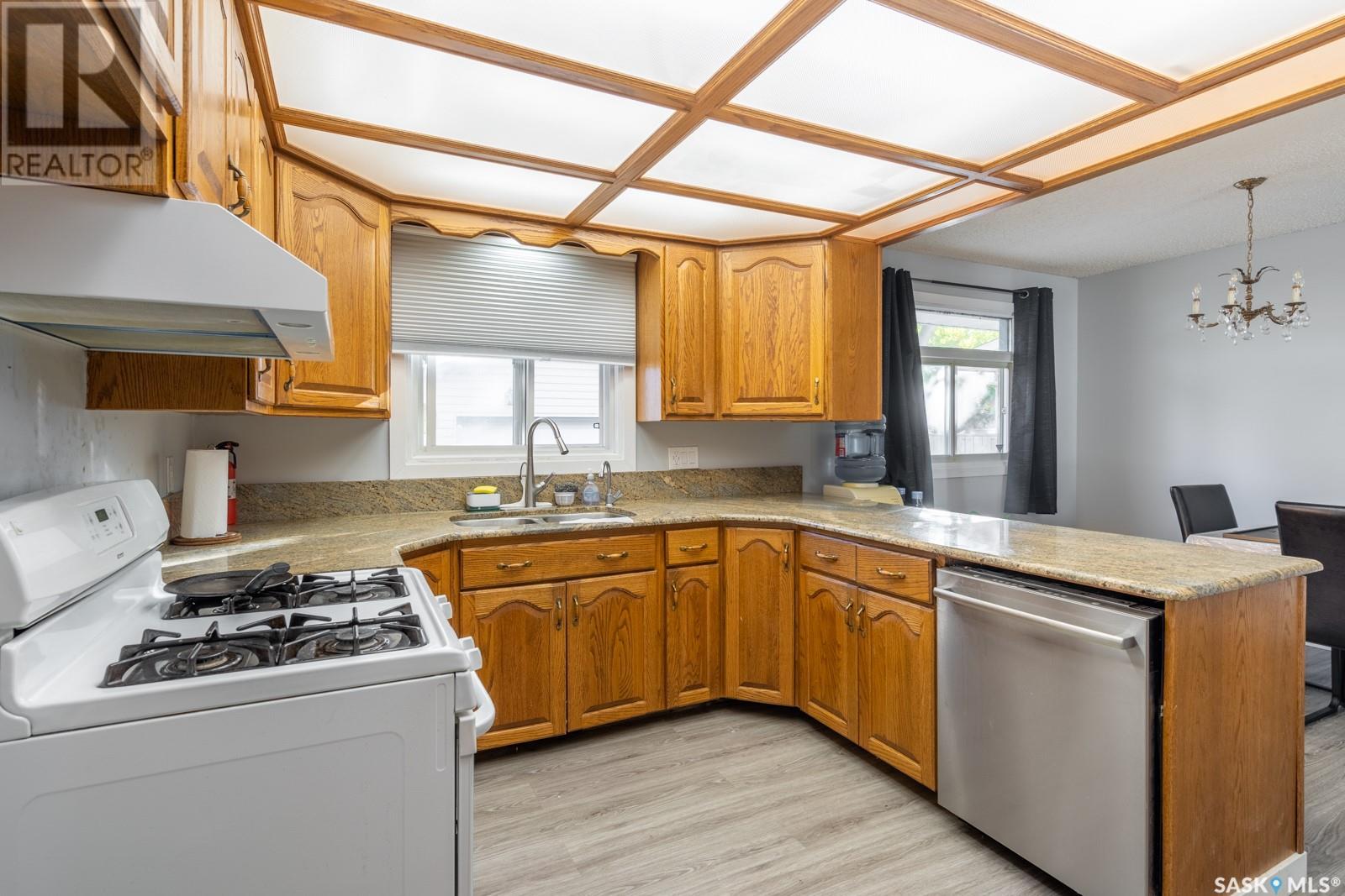 This excellent 1,288 square foot bungalow located on quiet crescent in Normanview is move in ready!! Main level features a large living room with attractive stacked stone fireplace. The kitchen is a spot where everyone will want to gather, that offers large custom oak cabinets with granite countertops. The eating area has plenty of space for a large table. Three good-sized bedrooms; master bedroom also features 4-pce ensuite. Tons of natural light floods these spacious rooms. Newley developed basement offers a large family room 2 more bedrooms and 4-pc bath with a fully functional kitchen that completes the basements suite with its own laundry and a large storage area. The back yard is glorious in the summer. A spacious double car garage is insulated wired and 220. (id:22211)