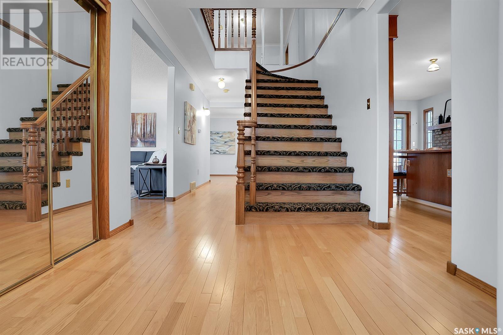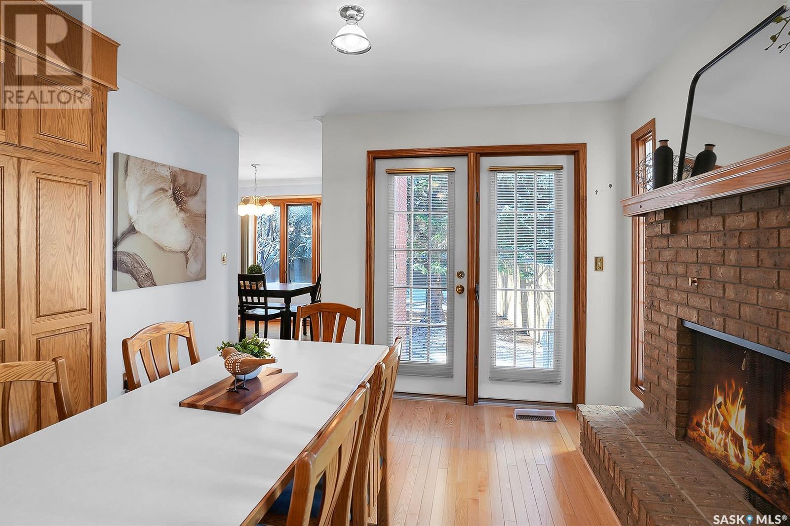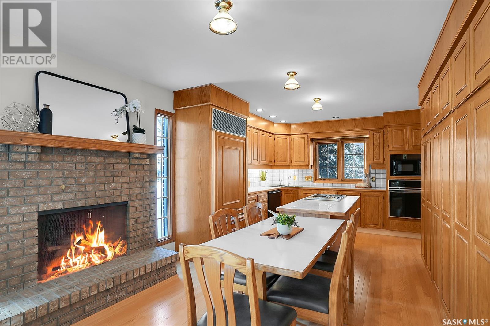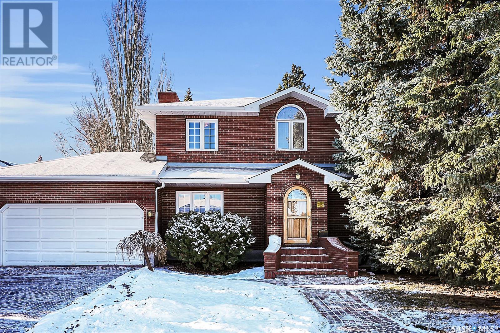 Wascana View is a quiet, family-friendly neighbourhood with parks, playgrounds, and walking paths. It also features this incredible, two-storey home, solidly constructed by Silver Homes, appearing on the market for the first time. With an elegant full brick exterior and mature trees, the curb appeal will be clear as you arrive home everyday. Step inside to a large foyer; the formal living room is on your left. Here you can cozy up in front of the wood burning fireplace or on the window bench. The large kitchen has an abundance of oak cabinets with a generous island and a built-in table where the kids do homework or help bake cookies, sitting next to the second wood burning fireplace. At the rear of the home are the formal dining and family rooms, with access to the private rear yard. A 2 piece powder room completes the main floor. The second floor features 3 bedrooms and 2 full bathrooms: the primary bedroom has a 4 piece ensuite with separate tub and shower, and a walk-in closet. The other two bedrooms provide lots of space; one also features a built-in desk and storage. The basement is insulated and dry-walled, giving you room to make your own. There is roughed-in plumbing for a future bathroom; laundry can be found in the utility room. The double attached garage keeps your vehicles out of the elements and provides additional storage. Trees and shrubs fill the landscaped front and rear yards, and there is a cobblestone patio to enjoy the warm summer nights. Underground sprinklers keep the grass green all summer long. Some special features of this home include stunning stained glass in the foyer and the main bathroom, the rounded oak front door, and hardwood flooring through the main floor. There is also coving to the dining room, family room, and lower/upper hallways. A true gem. (id:22211)
