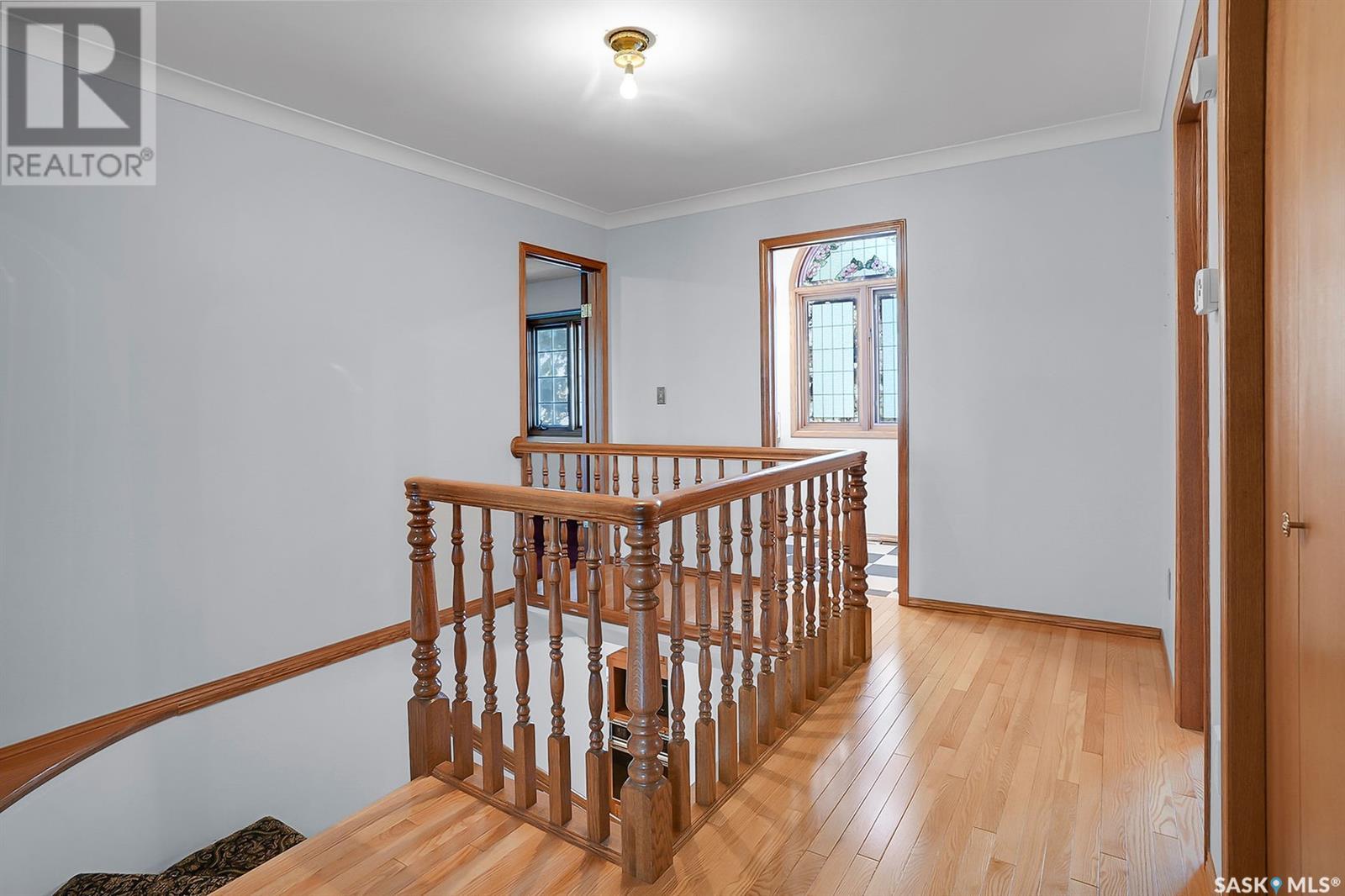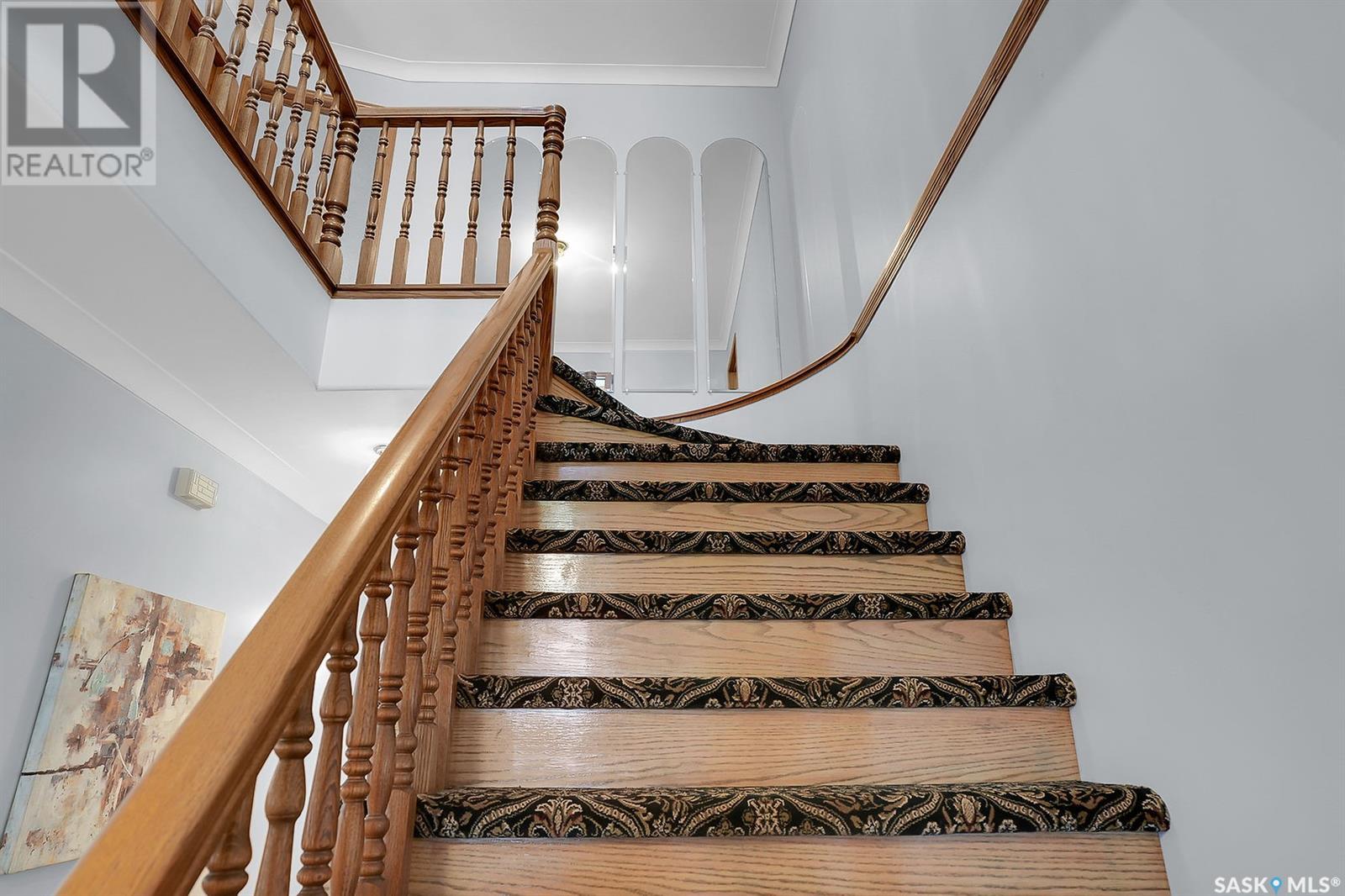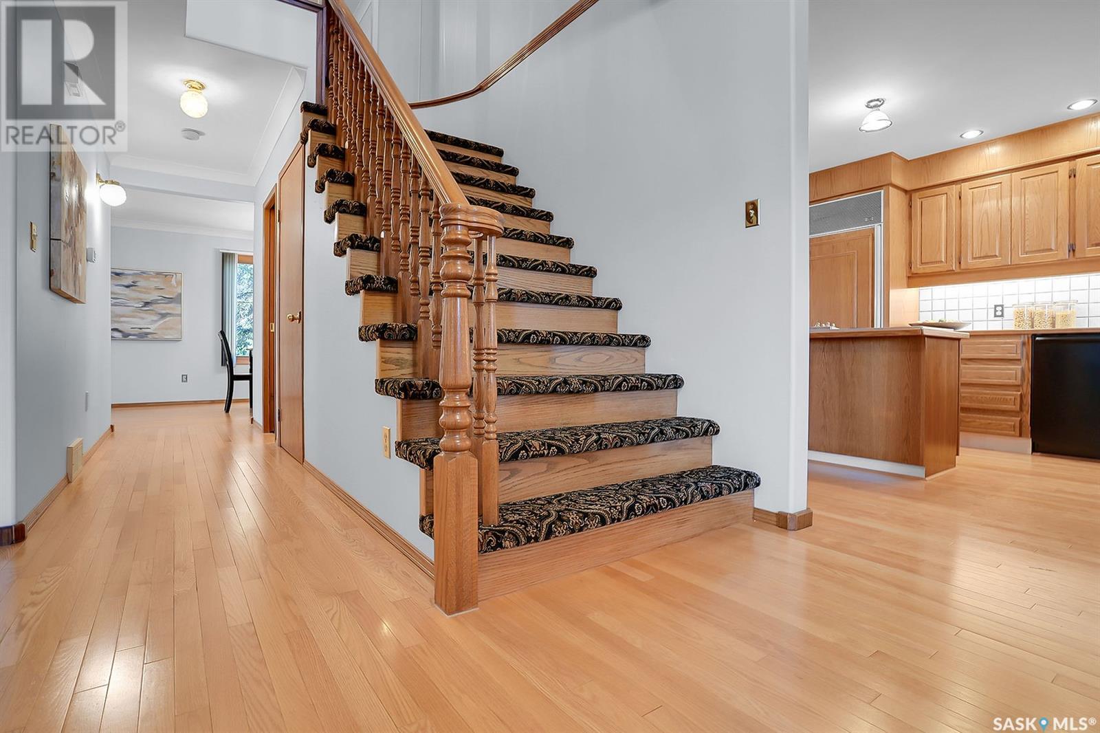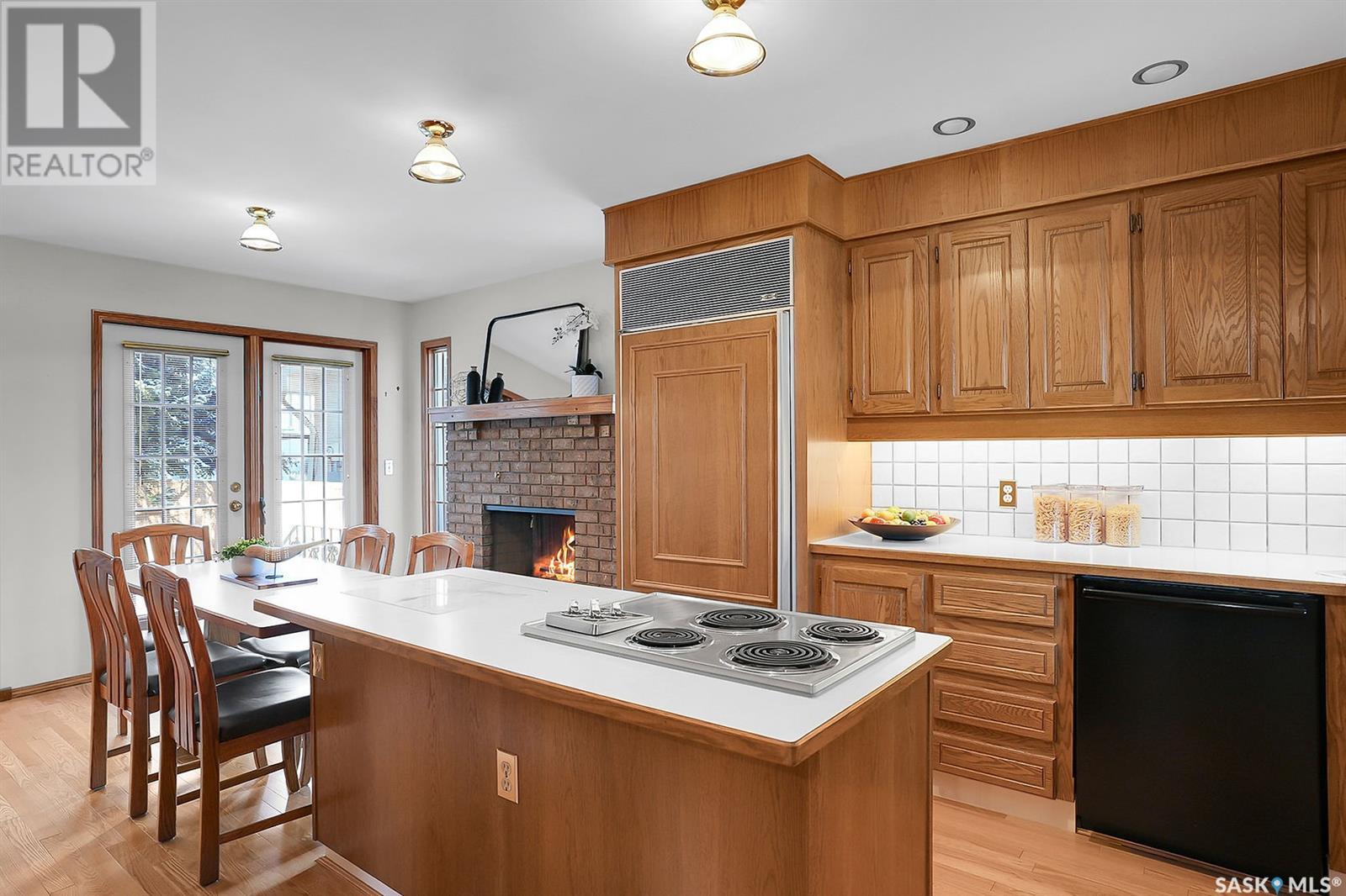Wascana View is a quiet, family-friendly neighbourhood with parks, playgrounds, and walking paths. It also features this incredible, two-storey home, solidly constructed by Silver Homes, appearing on the market for the first time. With an elegant full brick exterior and mature trees, the curb appeal will be clear as you arrive home everyday. Step inside to a large foyer; the formal living room is on your left. Here you can cozy up in front of the wood burning fireplace or on the window bench. The large kitchen has an abundance of oak cabinets with a generous island and a built-in table where the kids do homework or help bake cookies, sitting next to the second wood burning fireplace. At the rear of the home are the formal dining and family rooms, with access to the private rear yard. A 2 piece powder room completes the main floor. The second floor features 3 bedrooms and 2 full bathrooms: the primary bedroom has a 4 piece ensuite with separate tub and shower, and a walk-in closet. The other two bedrooms provide lots of space; one also features a built-in desk and storage. The basement is insulated and dry-walled, giving you room to make your own. There is roughed-in plumbing for a future bathroom; laundry can be found in the utility room. The double attached garage keeps your vehicles out of the elements and provides additional storage. Trees and shrubs fill the landscaped front and rear yards, and there is a cobblestone patio to enjoy the warm summer nights. Underground sprinklers keep the grass green all summer long. Some special features of this home include stunning stained glass in the foyer and the main bathroom, the rounded oak front door, and hardwood flooring through the main floor. There is also coving to the dining room, family room, and lower/upper hallways. A true gem. (id:22211)