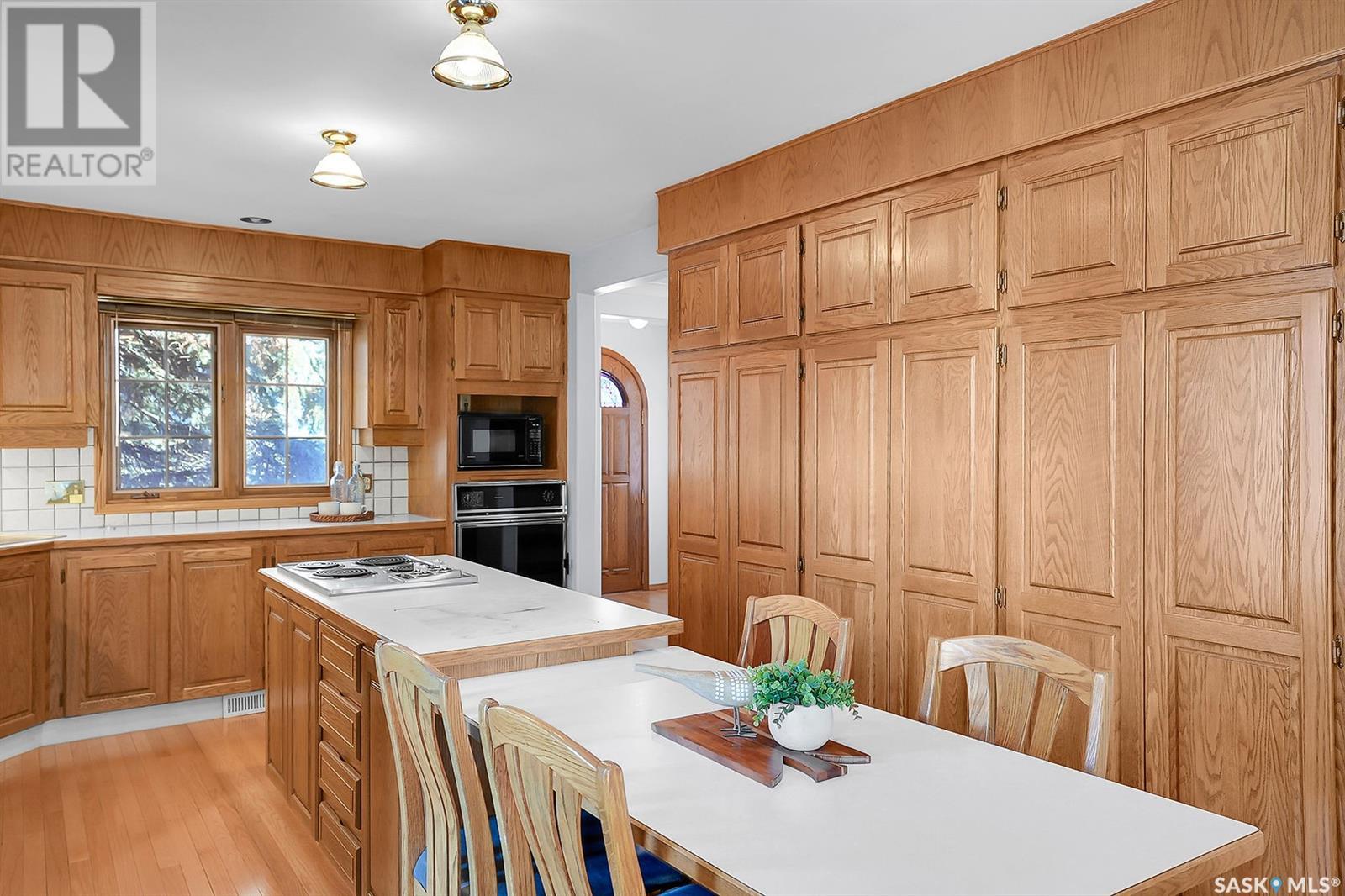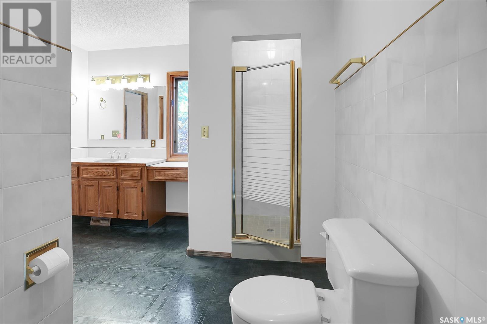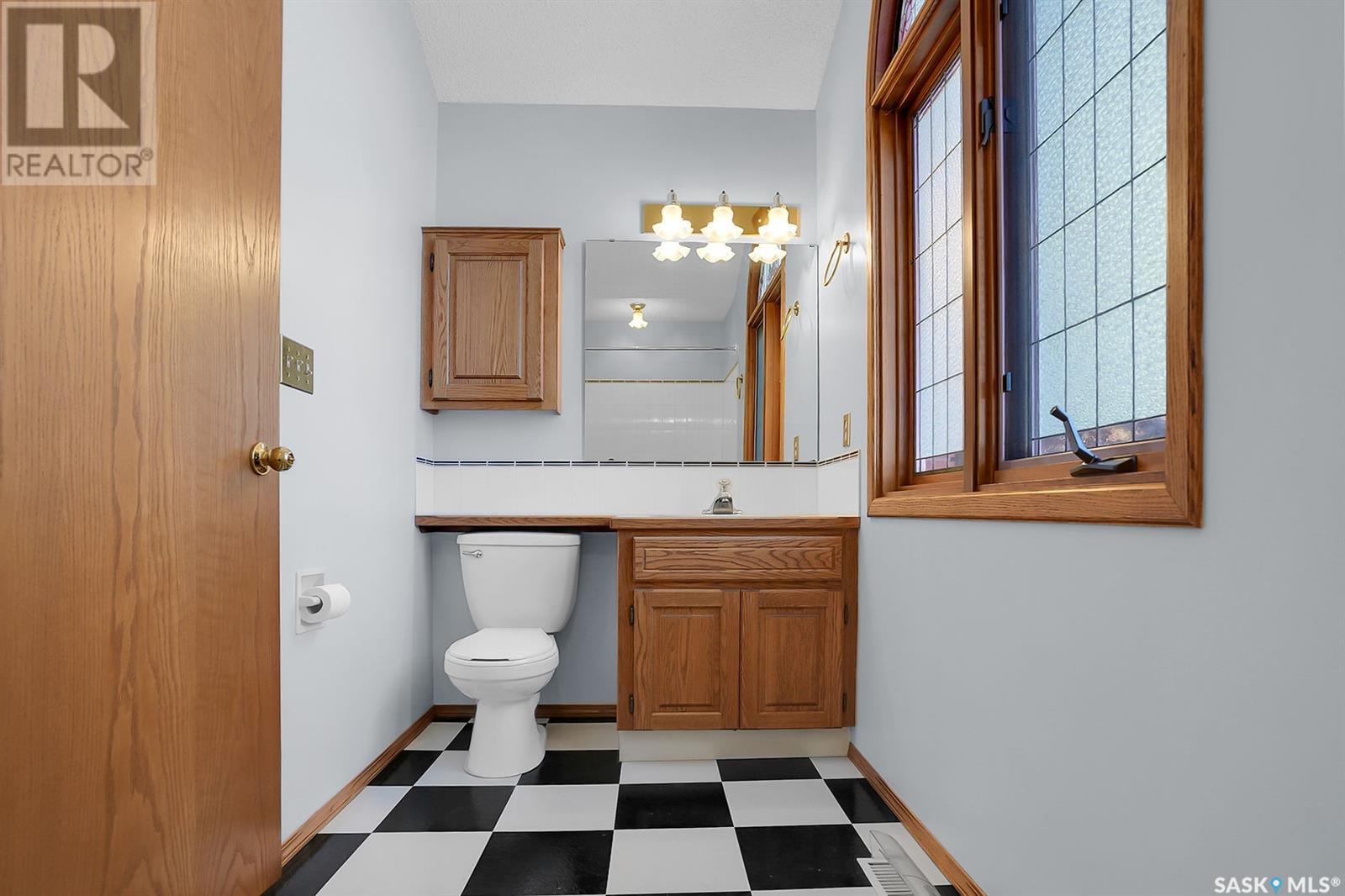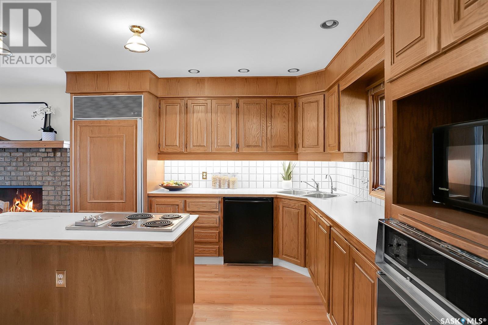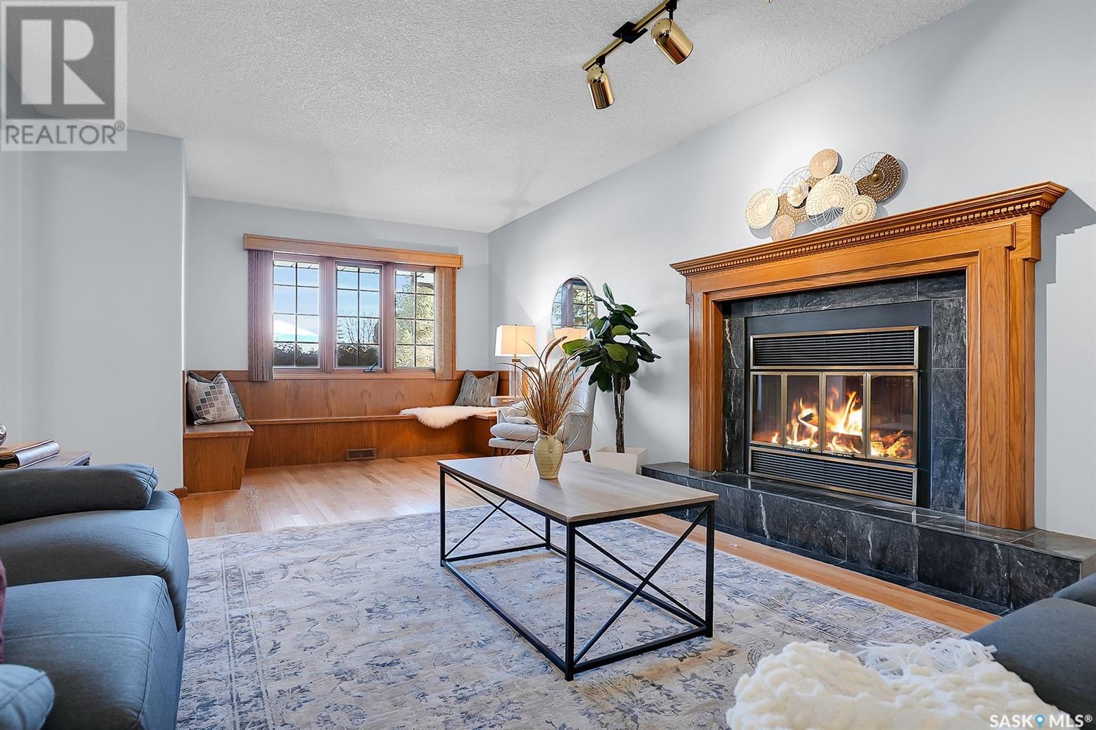 Wascana View is a quiet, family-friendly neighbourhood with parks, playgrounds, and walking paths. It also features this incredible, two-storey home, solidly constructed by Silver Homes, appearing on the market for the first time. With an elegant full brick exterior and mature trees, the curb appeal will be clear as you arrive home everyday. Step inside to a large foyer; the formal living room is on your left. Here you can cozy up in front of the wood burning fireplace or on the window bench. The large kitchen has an abundance of oak cabinets with a generous island and a built-in table where the kids do homework or help bake cookies, sitting next to the second wood burning fireplace. At the rear of the home are the formal dining and family rooms, with access to the private rear yard. A 2 piece powder room completes the main floor. The second floor features 3 bedrooms and 2 full bathrooms: the primary bedroom has a 4 piece ensuite with separate tub and shower, and a walk-in closet. The other two bedrooms provide lots of space; one also features a built-in desk and storage. The basement is insulated and dry-walled, giving you room to make your own. There is roughed-in plumbing for a future bathroom; laundry can be found in the utility room. The double attached garage keeps your vehicles out of the elements and provides additional storage. Trees and shrubs fill the landscaped front and rear yards, and there is a cobblestone patio to enjoy the warm summer nights. Underground sprinklers keep the grass green all summer long. Some special features of this home include stunning stained glass in the foyer and the main bathroom, the rounded oak front door, and hardwood flooring through the main floor. There is also coving to the dining room, family room, and lower/upper hallways. A true gem. (id:22211)