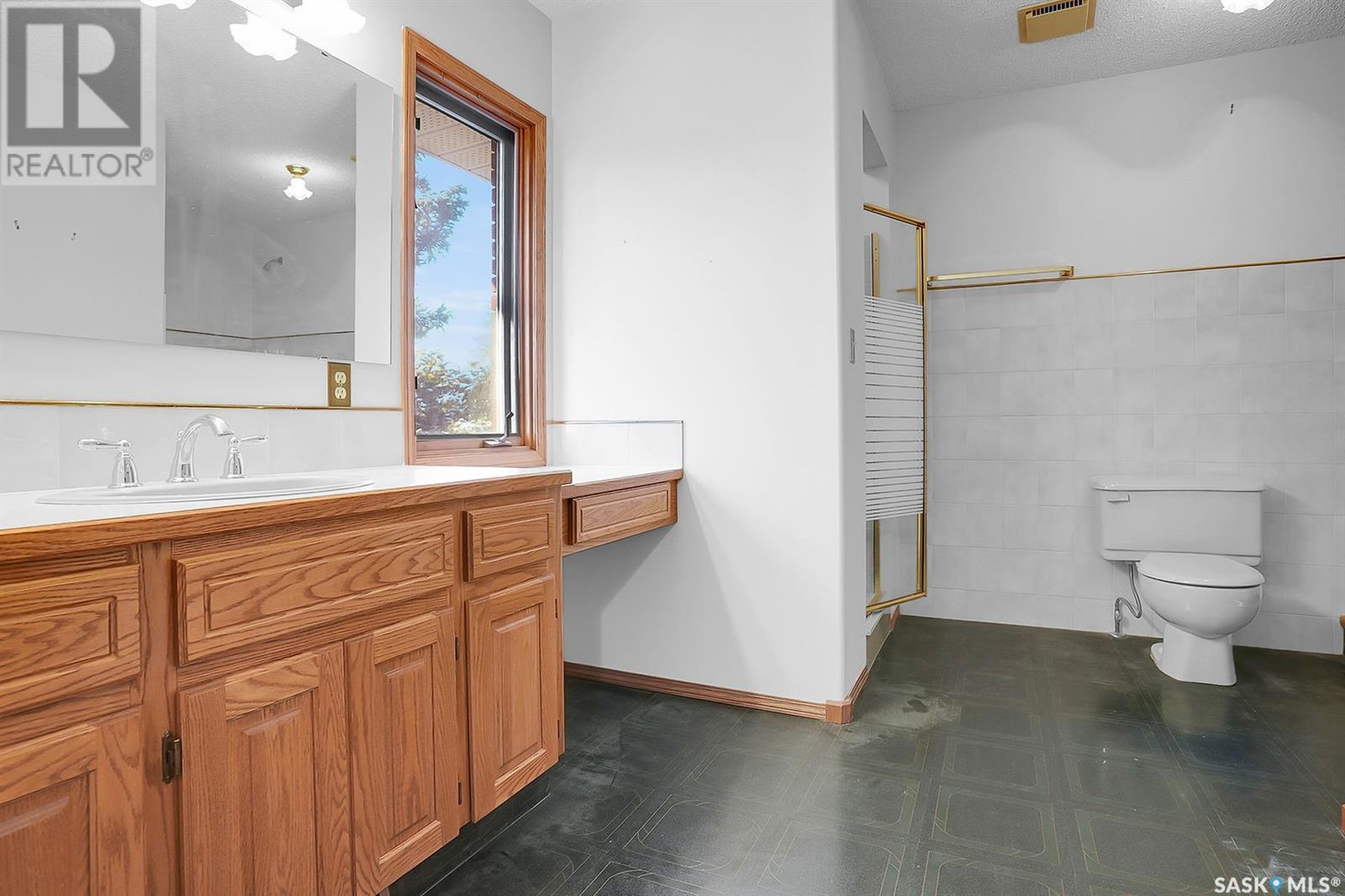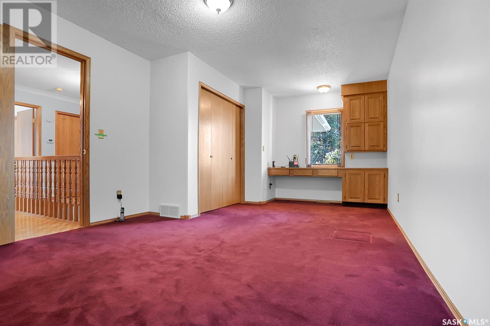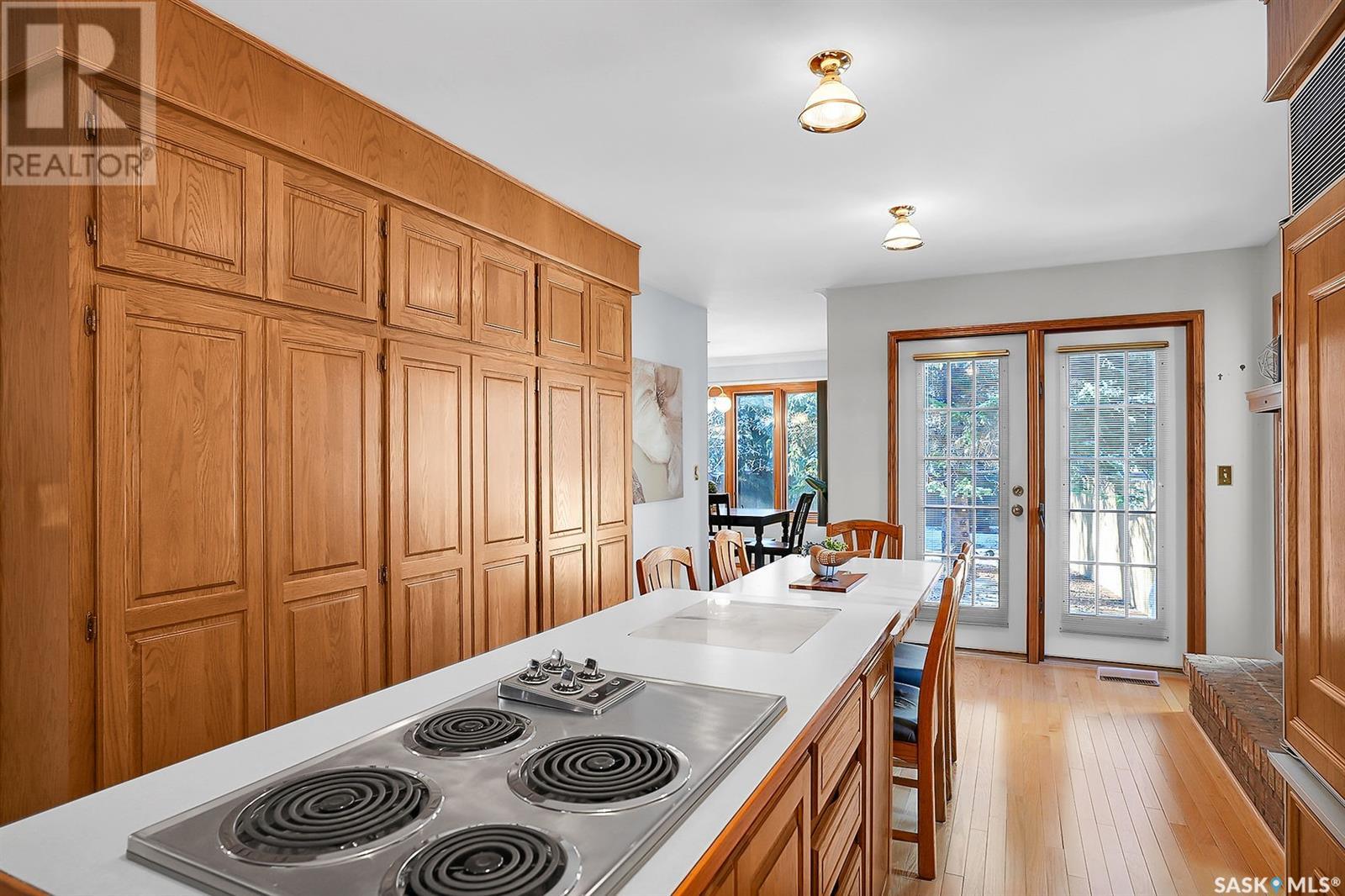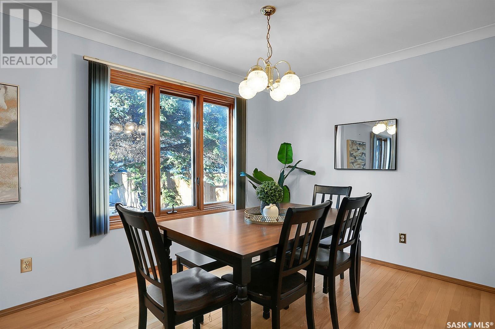 Wascana View is a quiet, family-friendly neighbourhood with parks, playgrounds, and walking paths. It also features this incredible, two-storey home, solidly constructed by Silver Homes, appearing on the market for the first time. With an elegant full brick exterior and mature trees, the curb appeal will be clear as you arrive home everyday. Step inside to a large foyer; the formal living room is on your left. Here you can cozy up in front of the wood burning fireplace or on the window bench. The large kitchen has an abundance of oak cabinets with a generous island and a built-in table where the kids do homework or help bake cookies, sitting next to the second wood burning fireplace. At the rear of the home are the formal dining and family rooms, with access to the private rear yard. A 2 piece powder room completes the main floor. The second floor features 3 bedrooms and 2 full bathrooms: the primary bedroom has a 4 piece ensuite with separate tub and shower, and a walk-in closet. The other two bedrooms provide lots of space; one also features a built-in desk and storage. The basement is insulated and dry-walled, giving you room to make your own. There is roughed-in plumbing for a future bathroom; laundry can be found in the utility room. The double attached garage keeps your vehicles out of the elements and provides additional storage. Trees and shrubs fill the landscaped front and rear yards, and there is a cobblestone patio to enjoy the warm summer nights. Underground sprinklers keep the grass green all summer long. Some special features of this home include stunning stained glass in the foyer and the main bathroom, the rounded oak front door, and hardwood flooring through the main floor. There is also coving to the dining room, family room, and lower/upper hallways. A true gem. (id:22211)