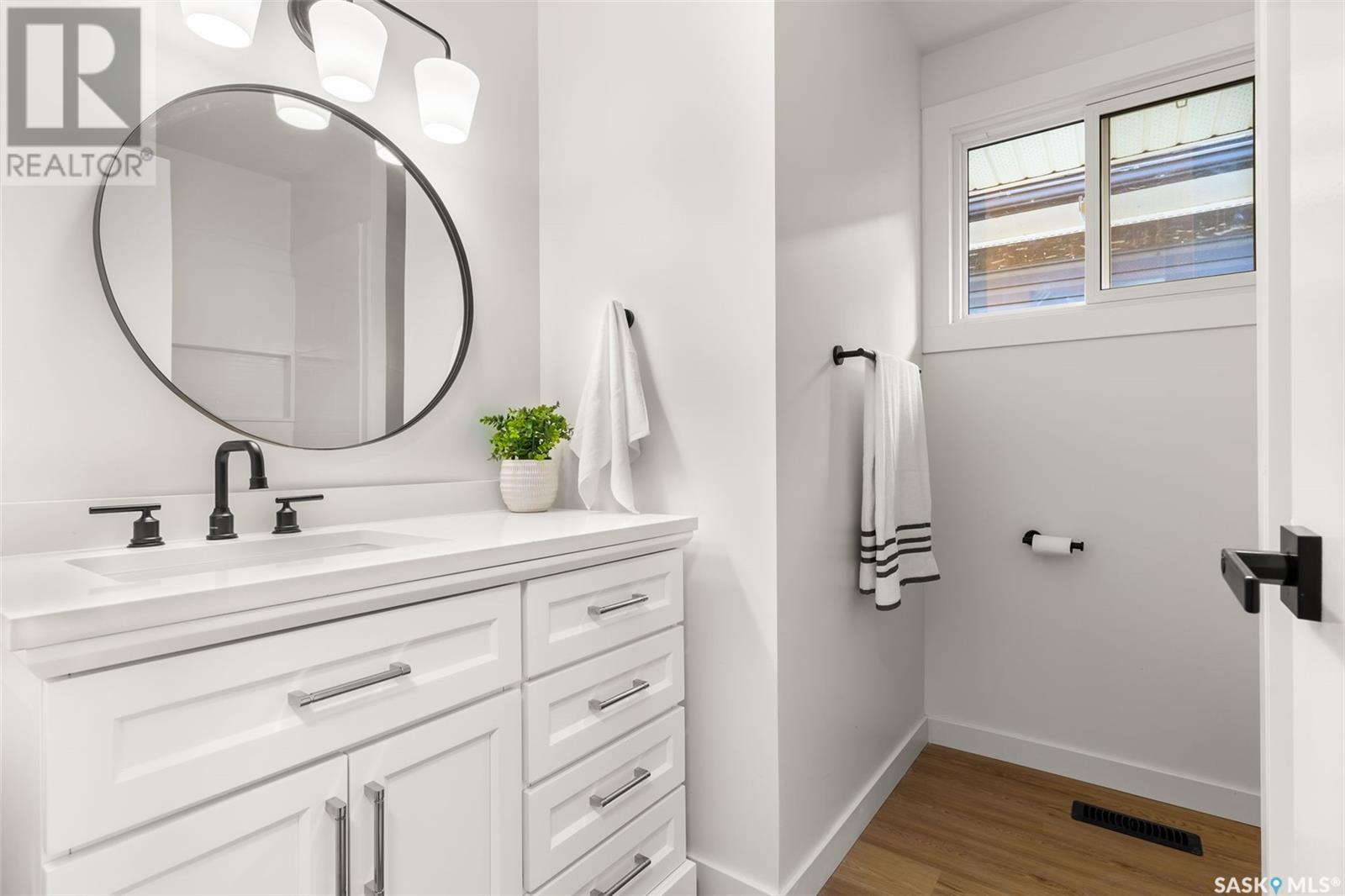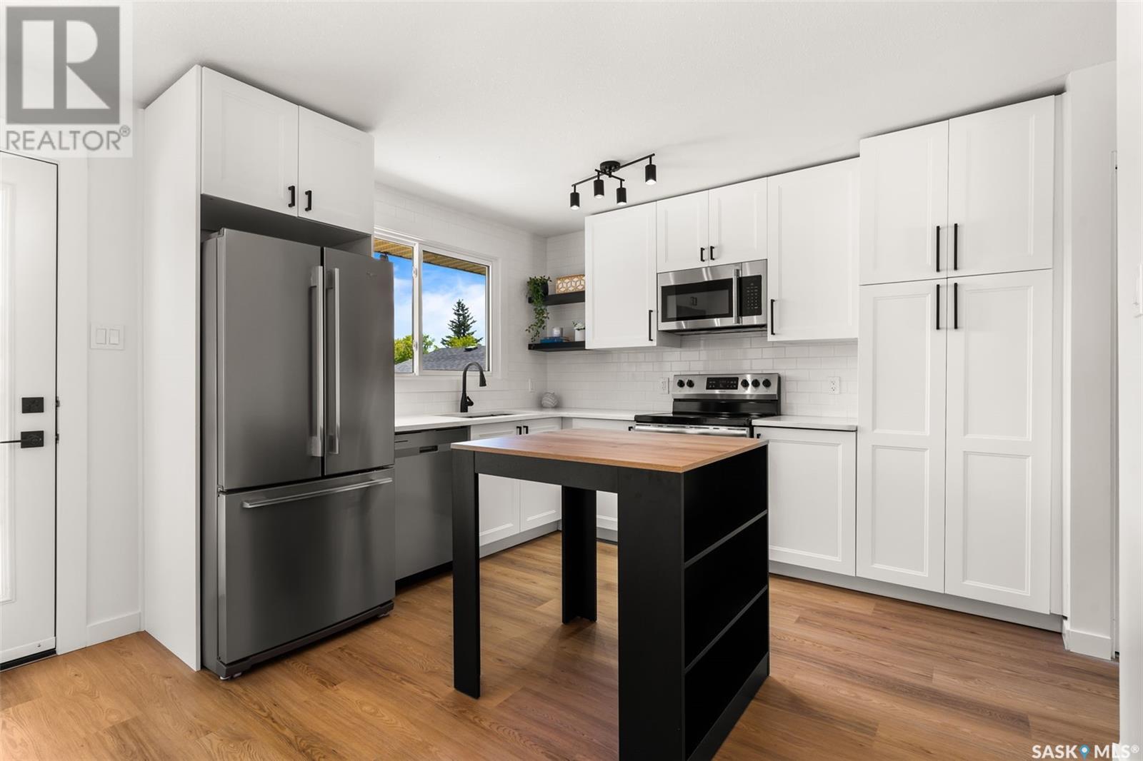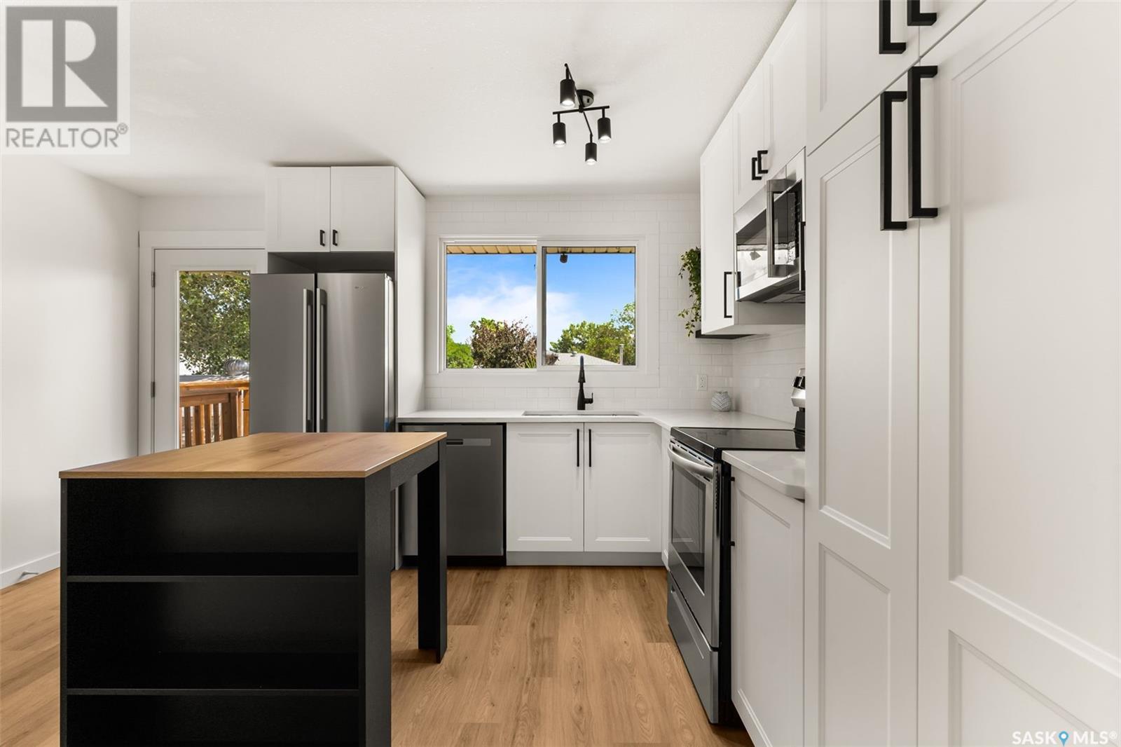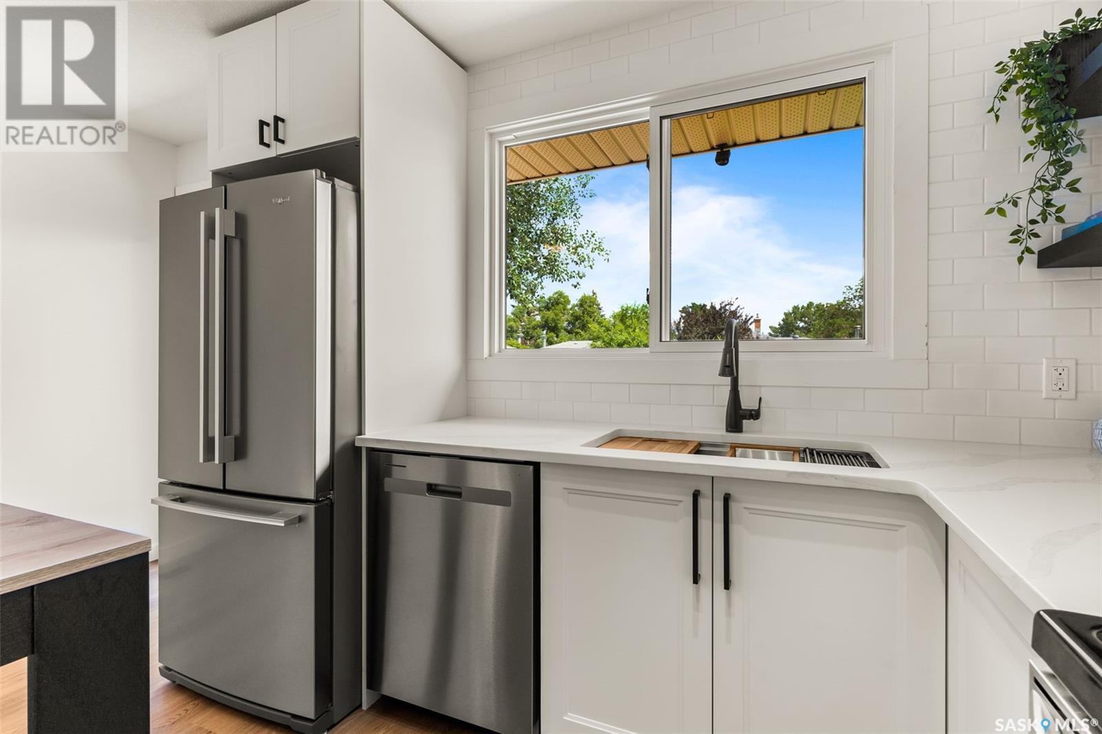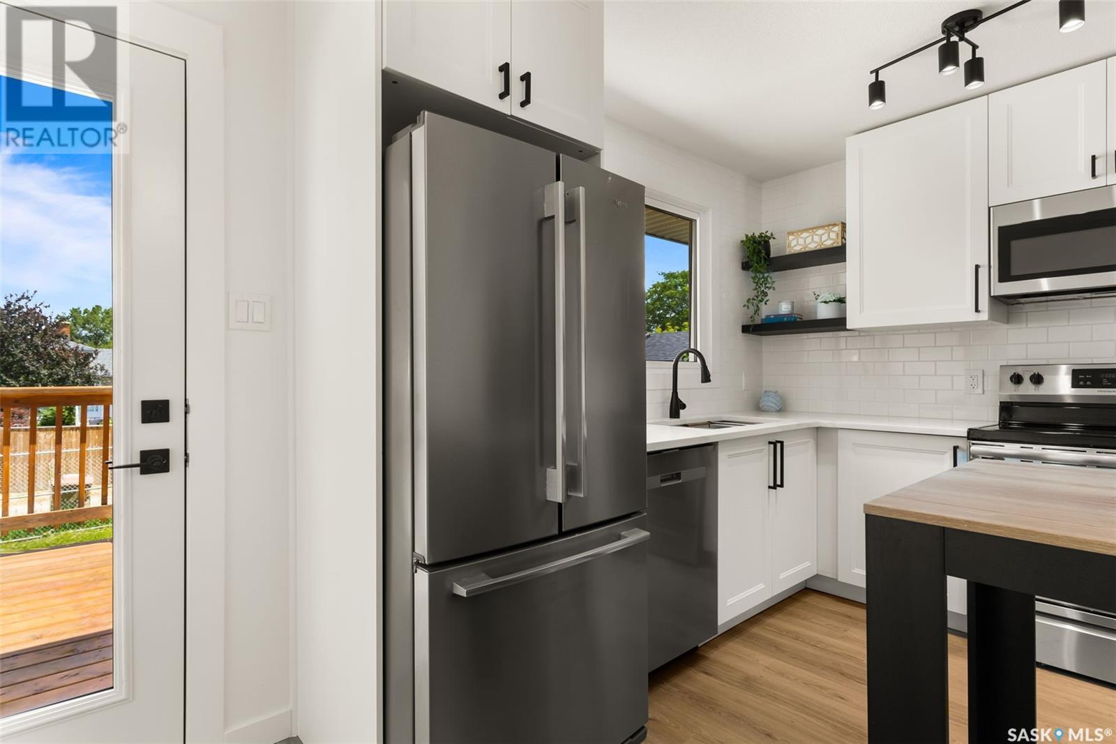 Situated in one of Regina’s family friendly north end neighbourhoods sits this beautifully renovated bilevel. From the moment you pull up, you’ll be pleasantly surprised by the curb appeal and the well manicured front yard. Upon entering the home, you are greeted by a bright and open living space that would be a great spot to house your newest plant collection. Heading into the newly renovated modern eat-in kitchen, you’ll find brand new quartz countertops, tile backsplash reaching the ceiling, open shelving, a brand new stainless steel appliance package and timeless white cabinetry. The centre island doubles as the perfect spot to prep your favourite meal or somewhere for your family to pull up and hang out after a long day. With direct access to your new deck, overlooking your landscaped yard, this will become the newest place for you to reconnect with your friends and family. Down the hall, there are 2 good sized bedrooms and a completed renovated 4 piece bathroom featured a tiled tub/shower combo. Heading into the fully developed lower level, you’ll find a future theatre space that would be an ideal spot to catch the big game or binge your favourite Netflix series, perhaps Selling Sunset: Season 6? The lower level is rounded out with a bedroom, that could function as a home office, or could be the best spot for a growing teenager looking for some privacy as there is a renovated 3 piece bathroom and ample closet space here as well. There is a full size rear gate and room for an RV with alley access. Every inch of this home has been meticulously cared for and the current owner cannot wait to pass it along to someone new. This home would be perfect for a first time home buyer! Message your local real estate professional for a complete list of upgrades or to schedule a showing today. (id:22211)