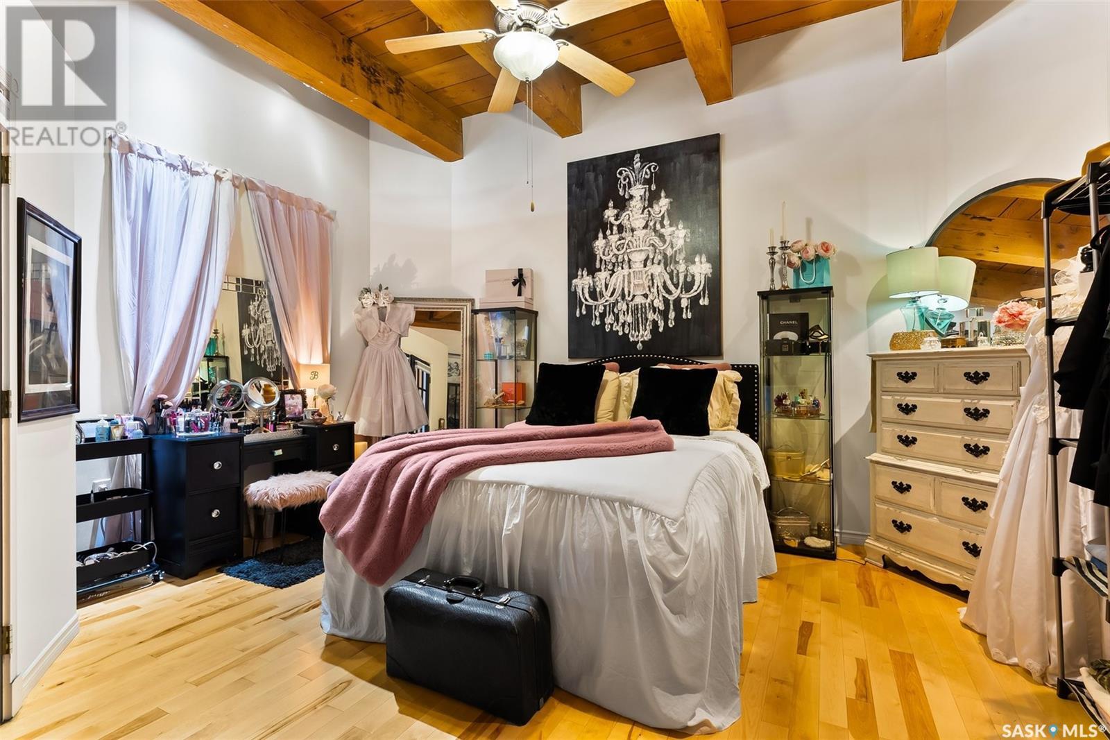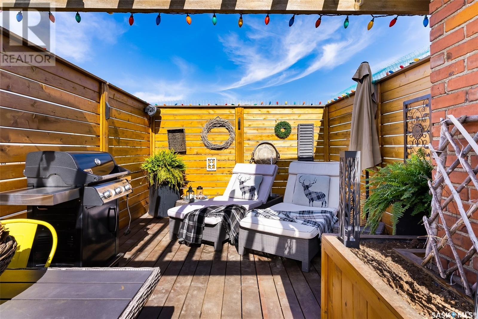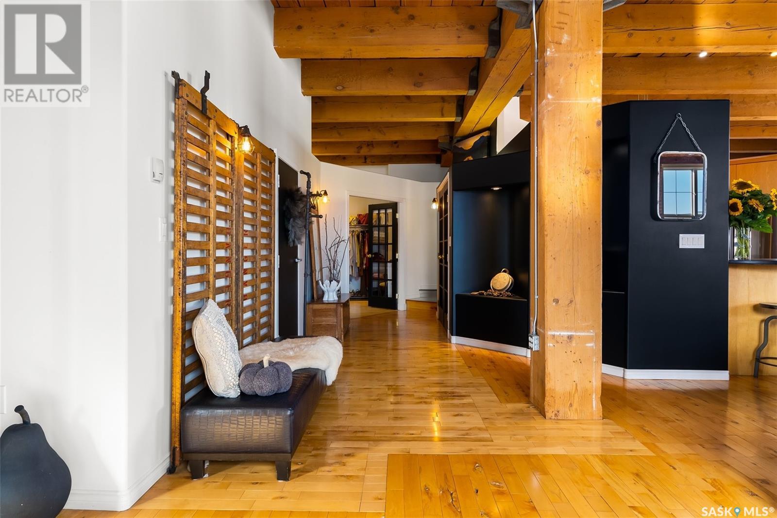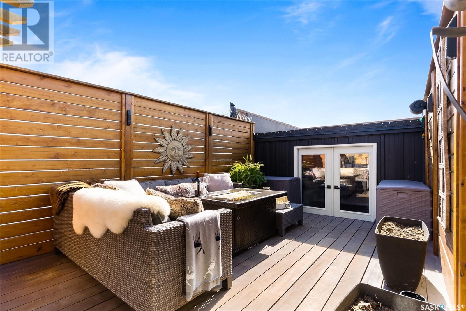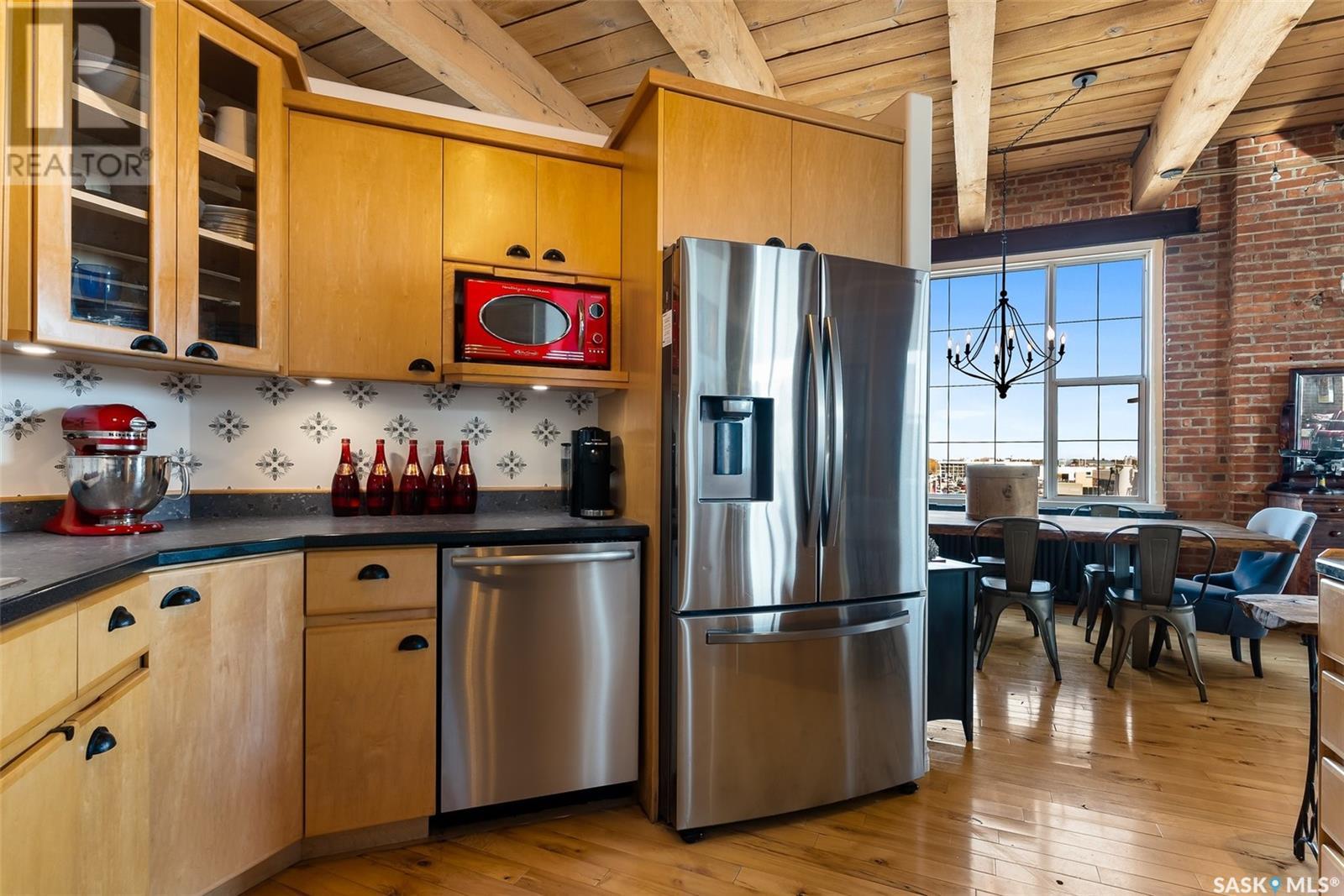 Located in the heart of the warehouse district and close to Downtown Regina, This New York style loft apartment is sure to impress & has been meticulously maintained. This unit is both the largest and also the only one with a private rooftop patio. You can’t help but notice the exposed fir beams, brick walls & original character . The open concept living room, kitchen & dining room are filled with natural light & offer hardwood flooring . The kitchen offers plenty of cupboard/ counter space with neutral maple cabinetry, stainless steel appliances & a Bosch gas stove. The dining space is large enough to host any size family gatherings & has windows that overlook the city landscape! The living room features natural light & large entertaining space with endless possibilities! The primary bedroom features a double walk in closet& a fantastic 4 pc ensuite with jet tub& a fiat steam shower .The laundry room is located just off the primary ensuite . There is also a large guest room that also could be utilized as a den or home gym. Just down the hall you will find a tastefully decorated 2 pc powder room.Just off the main living room, you will find a unique & charming “theatre room” complete with antique theatre chairs, entertainment system & separate sonos speaker system. Within the theatre room, you’ll notice a unique circular stair case that leads to the best hidden gem in this property. There is an additional living space that could be utilized as a bonus room or addntl bedroom, this space leads directly to the completely private rooftop deck. The deck overlooks the city skyline and features 2 entry points, Brazilian cherry hardwood, a speaker system & views that are unlike any other ! Additional value added features incl: 2 electrified parking stalls, basement storage space, newly rented boiler system, and so much more .The possibilities are endless in this unit and would be perfect for a young professional or those looking to live in a unique and beautiful apartment! (id:22211)
