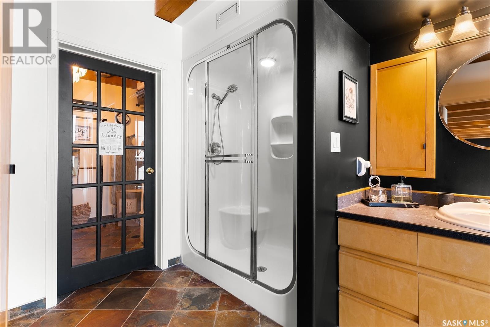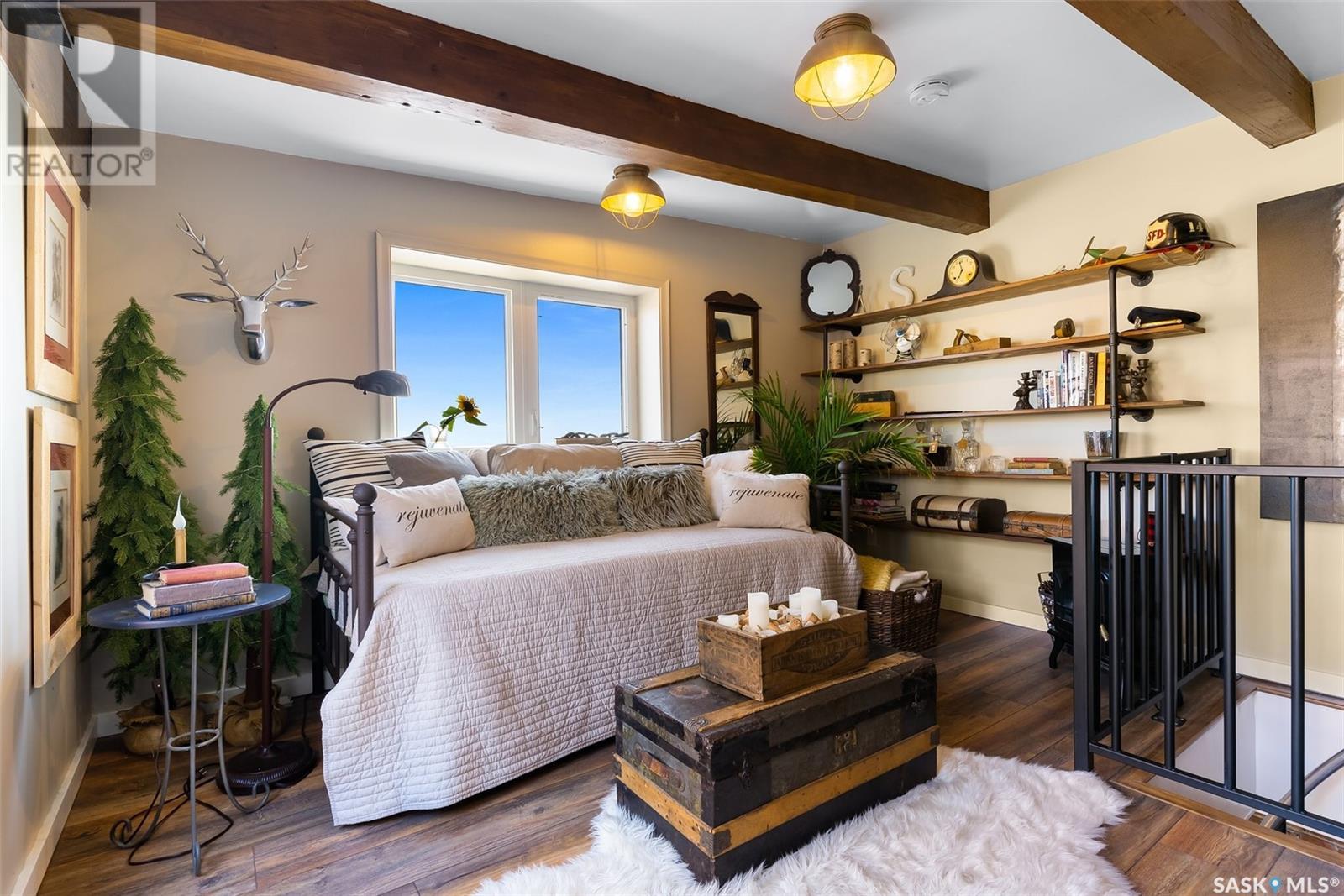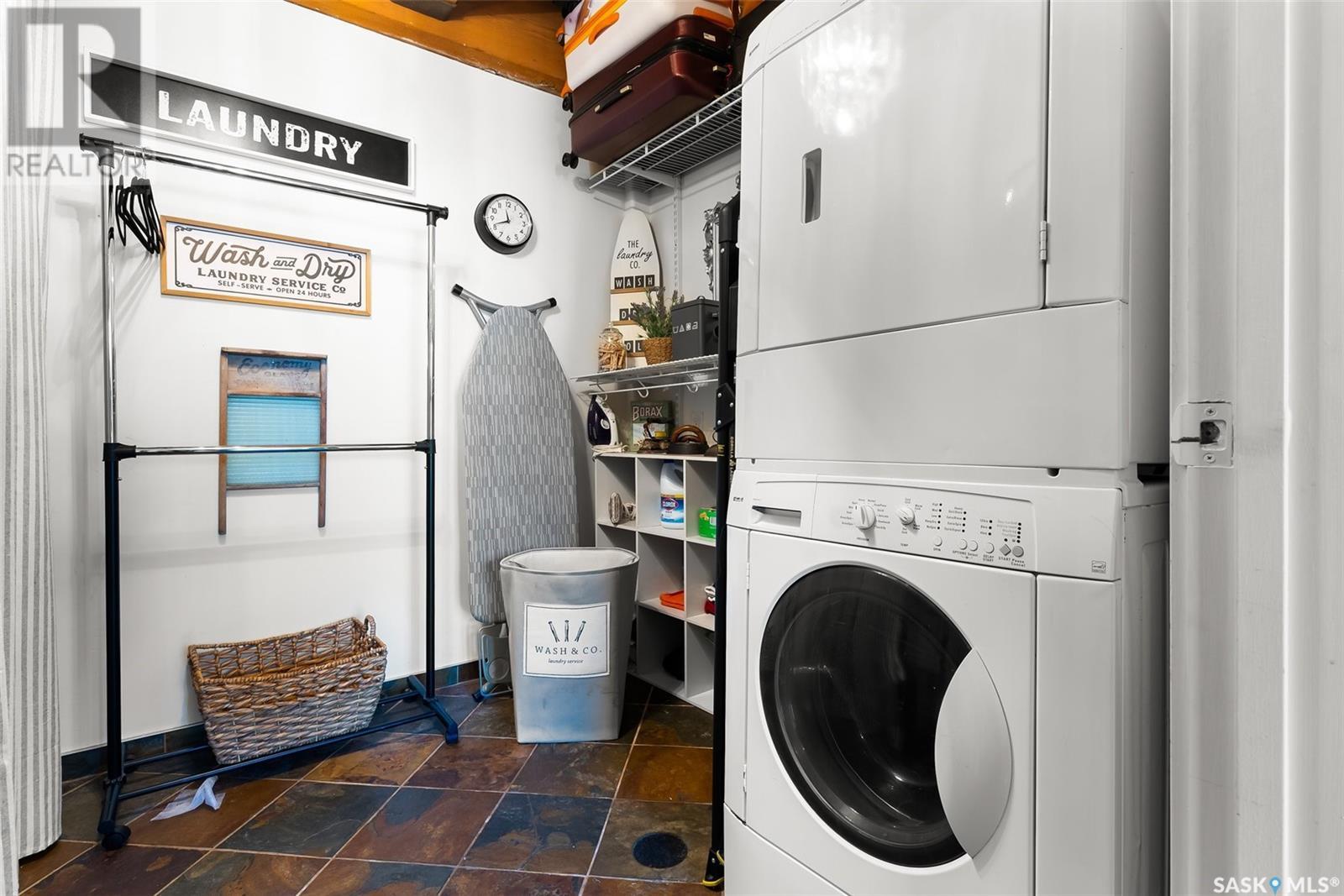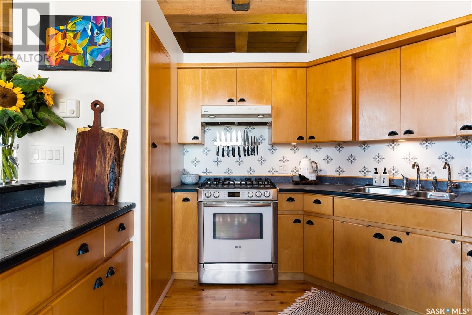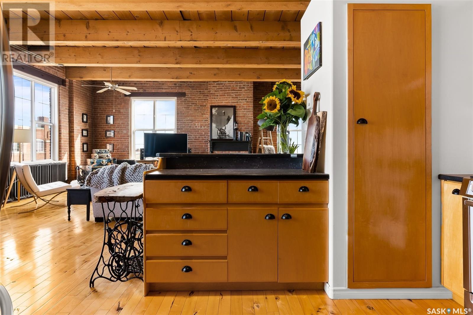 Located in the heart of the warehouse district and close to Downtown Regina, This New York style loft apartment is sure to impress & has been meticulously maintained. This unit is both the largest and also the only one with a private rooftop patio. You can’t help but notice the exposed fir beams, brick walls & original character . The open concept living room, kitchen & dining room are filled with natural light & offer hardwood flooring . The kitchen offers plenty of cupboard/ counter space with neutral maple cabinetry, stainless steel appliances & a Bosch gas stove. The dining space is large enough to host any size family gatherings & has windows that overlook the city landscape! The living room features natural light & large entertaining space with endless possibilities! The primary bedroom features a double walk in closet& a fantastic 4 pc ensuite with jet tub& a fiat steam shower .The laundry room is located just off the primary ensuite . There is also a large guest room that also could be utilized as a den or home gym. Just down the hall you will find a tastefully decorated 2 pc powder room.Just off the main living room, you will find a unique & charming “theatre room” complete with antique theatre chairs, entertainment system & separate sonos speaker system. Within the theatre room, you’ll notice a unique circular stair case that leads to the best hidden gem in this property. There is an additional living space that could be utilized as a bonus room or addntl bedroom, this space leads directly to the completely private rooftop deck. The deck overlooks the city skyline and features 2 entry points, Brazilian cherry hardwood, a speaker system & views that are unlike any other ! Additional value added features incl: 2 electrified parking stalls, basement storage space, newly rented boiler system, and so much more .The possibilities are endless in this unit and would be perfect for a young professional or those looking to live in a unique and beautiful apartment! (id:22211)