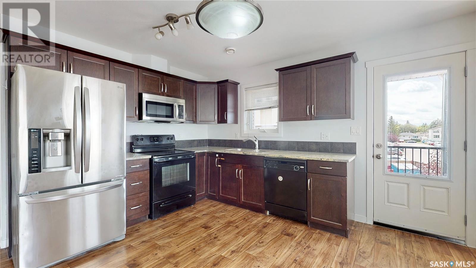 Welcome to Unit #107 - 1210 Empress Street, part of Rosemont Court Complex. This move-in ready, 1141 sq/ft, 3 bed, 2 bath condo is located in the popular neighborhood of Rosemont. The main level has an open concept layout with a half bath, kitchen, dining and living area with a covered balcony. Built with functionality and affordability in mind, this condo is overflowing with upgrades, inspiring design, quality workmanship. The upper level has a large linen closet next to the in-suite laundry. The master bedroom has multiple windows to bath the room with beautiful bright sunshine. Two additional bedrooms, both very generous in size, & a full bath with stone countertops completes this level. Two parking spots are included in the sale - one titled and one exclusive-use parking spot. Visitor parking and a play area for young children are all part of this fabulous little complex. It is also conveniently located close to schools, a church, a shopping center, and a pharmacy. Please call for more information! (id:22211)