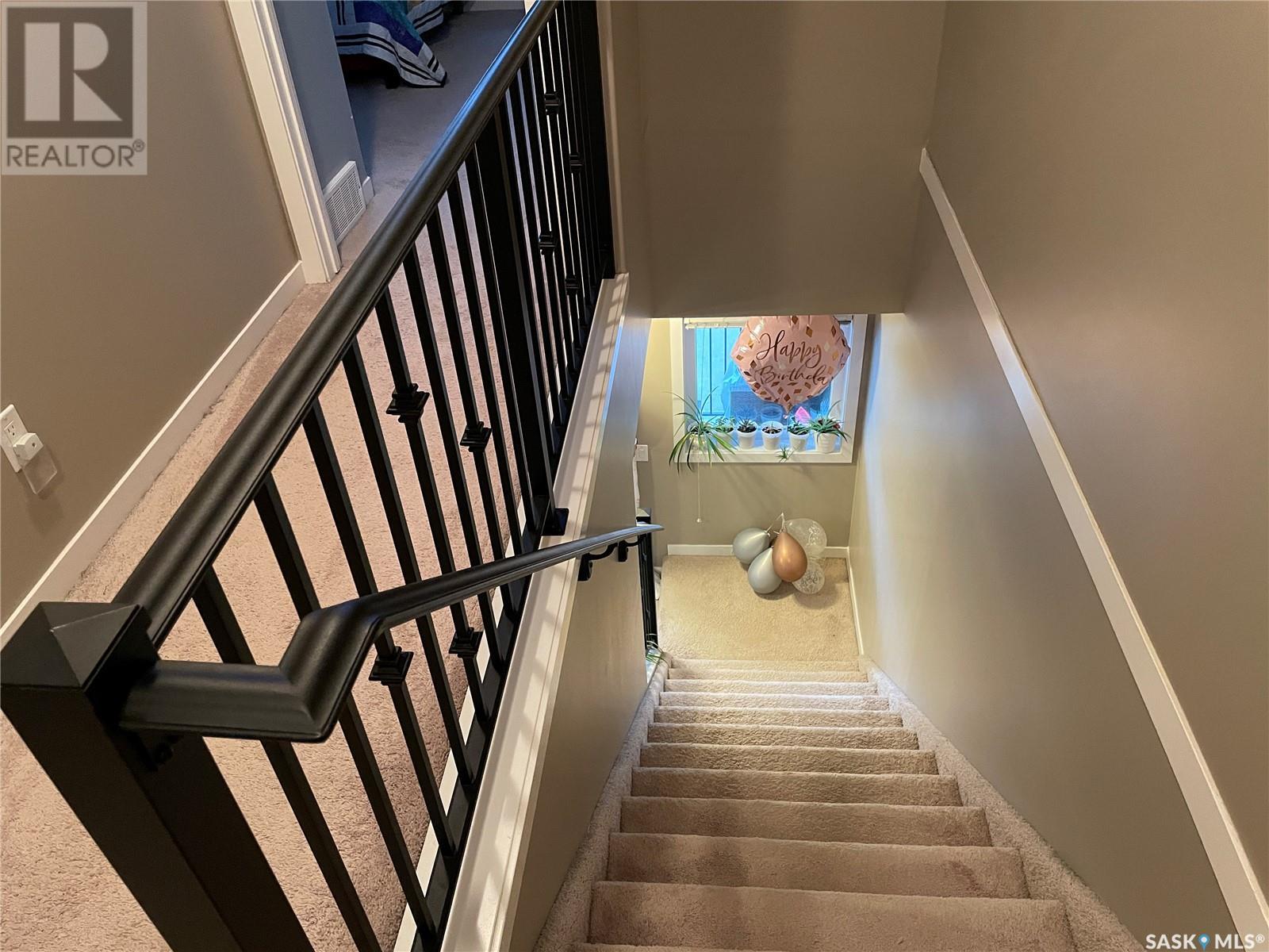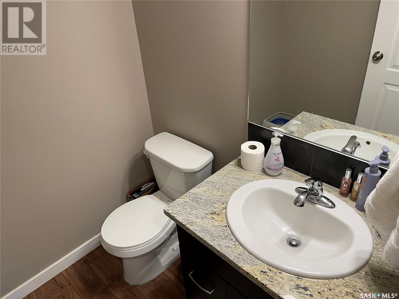 This 2 bedroom, 2.5 bathroom south facing condo is located in the Rosemont Court Condo Complex in the Rosemont community in North West Regina. The main floor provides has mid-brown hardwood laminate flooring, large windows, a 2 piece bathoom, kitchen and patio. The kitchen includes stainless steel appliances, granite countertops and espresso cabinets. The top floor has a master bedroom with 4-piece ensuite and large walk-in closet, a second bedroom with second balcony, an additional 4-piece bathroom, laundry closet and linen closet. The home was built in 2013 and comes with 2 electrified parking stalls directly in front of the door. There is a play structure in complex. 2 blocks from No Frills grocery and Shoppers Drug Mart. Half block from Martin Collegiate, 3 blocks to Luther High School and Rosemont and Walker elementary schools Close to AE wilson park and walking/biking baths. Easy access to Lewvan, Harbor Landing, Downtown and Rochdale. Condo fees include snow removal, lawn maintenance, building maintenance, garbage, recycling and electricity for parking spots and reserve fund. Pets are allowed with restrictions (size and number). (id:22211)