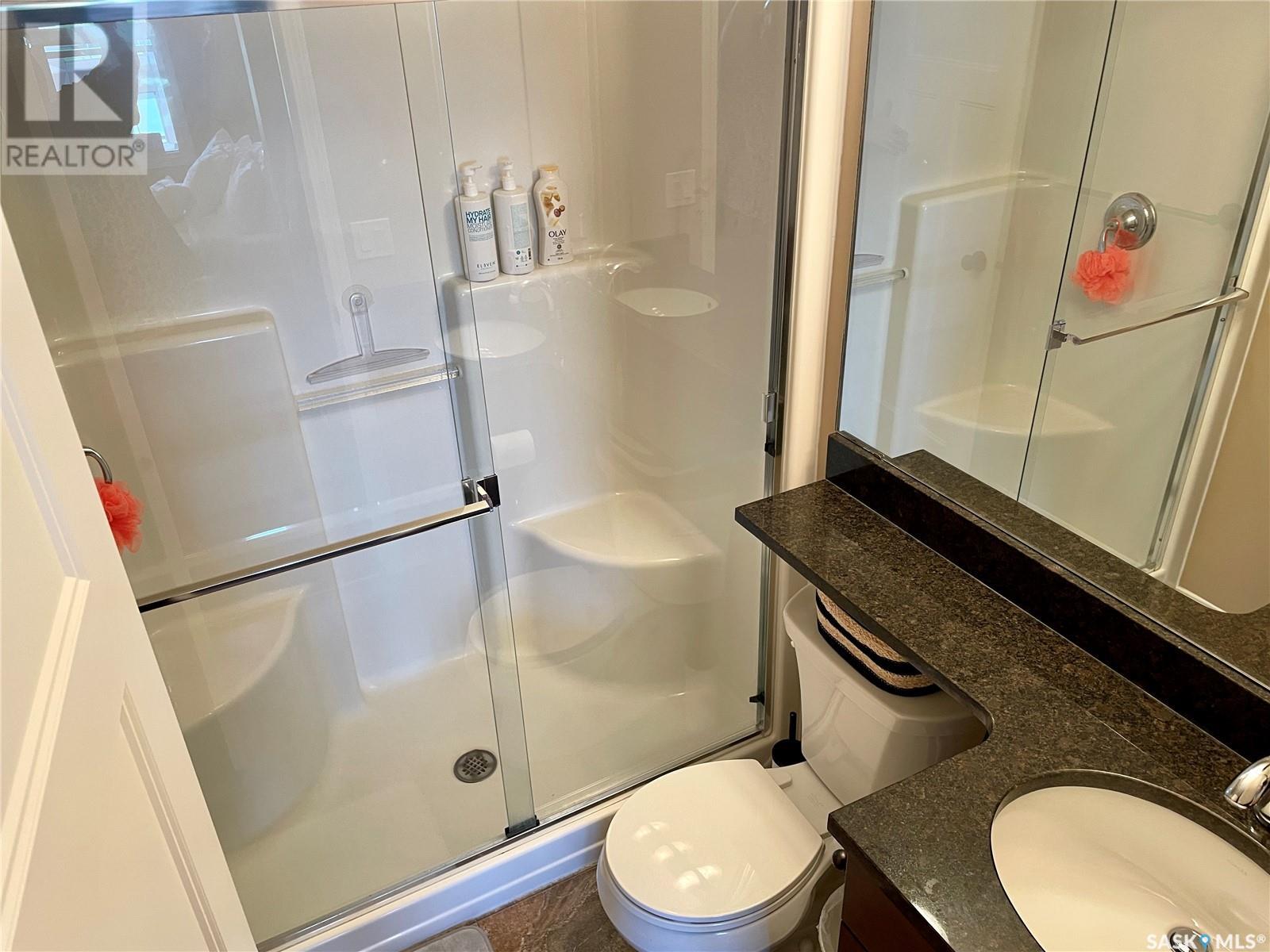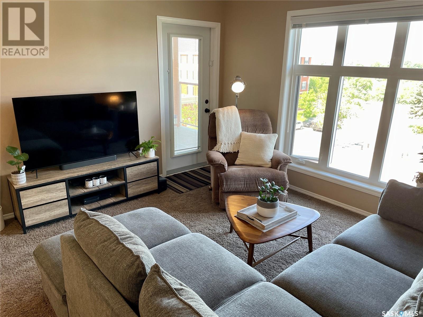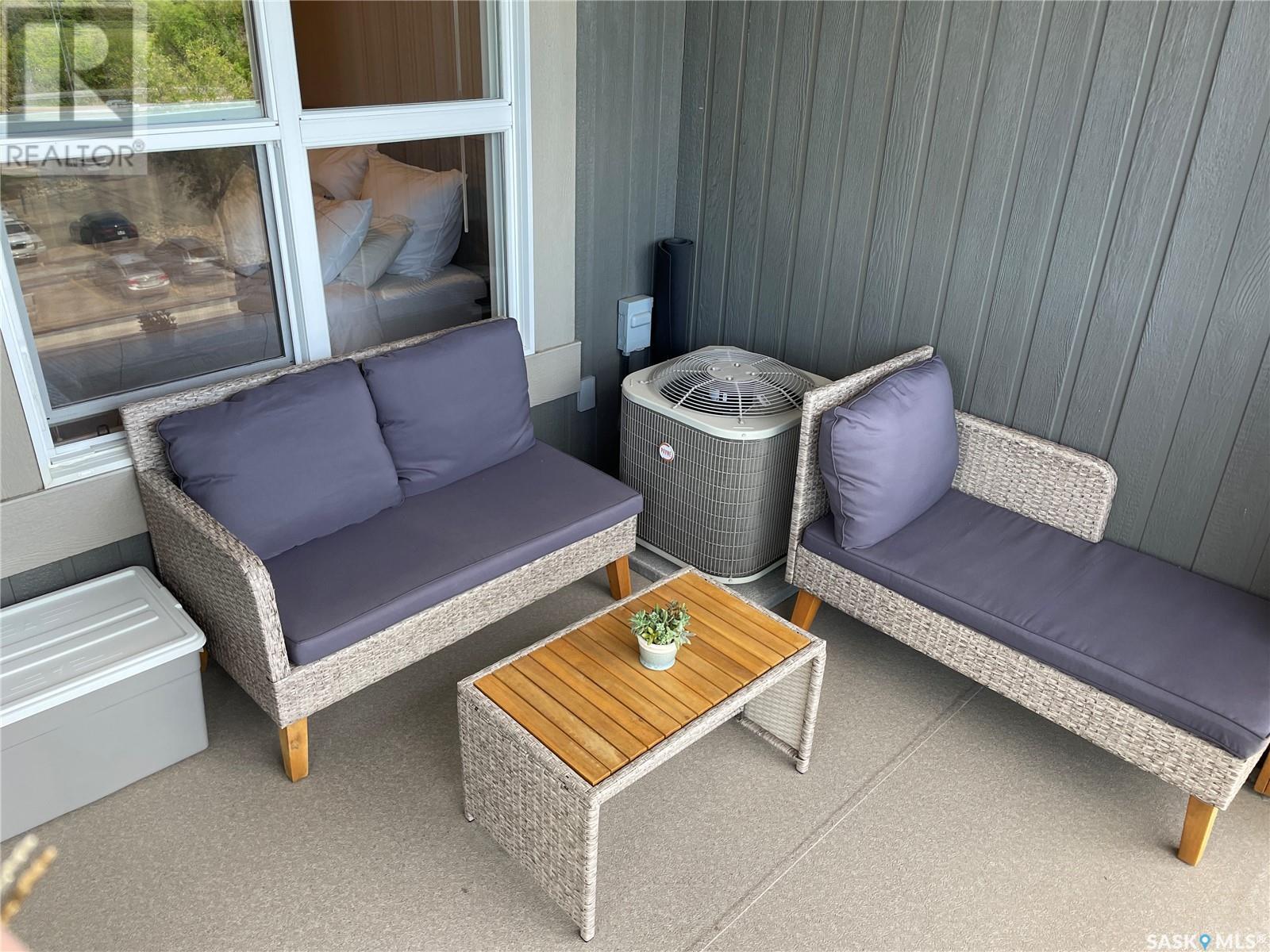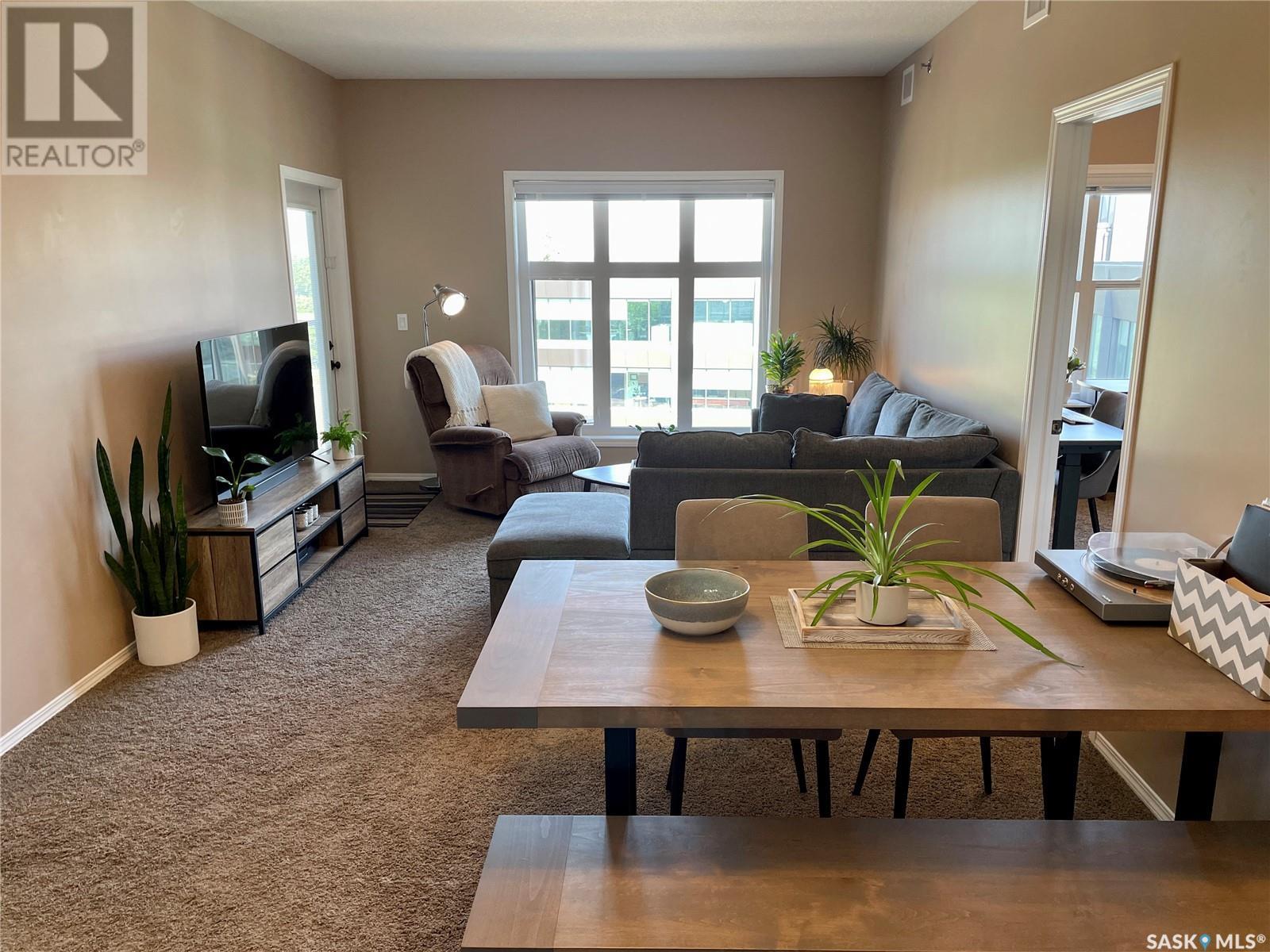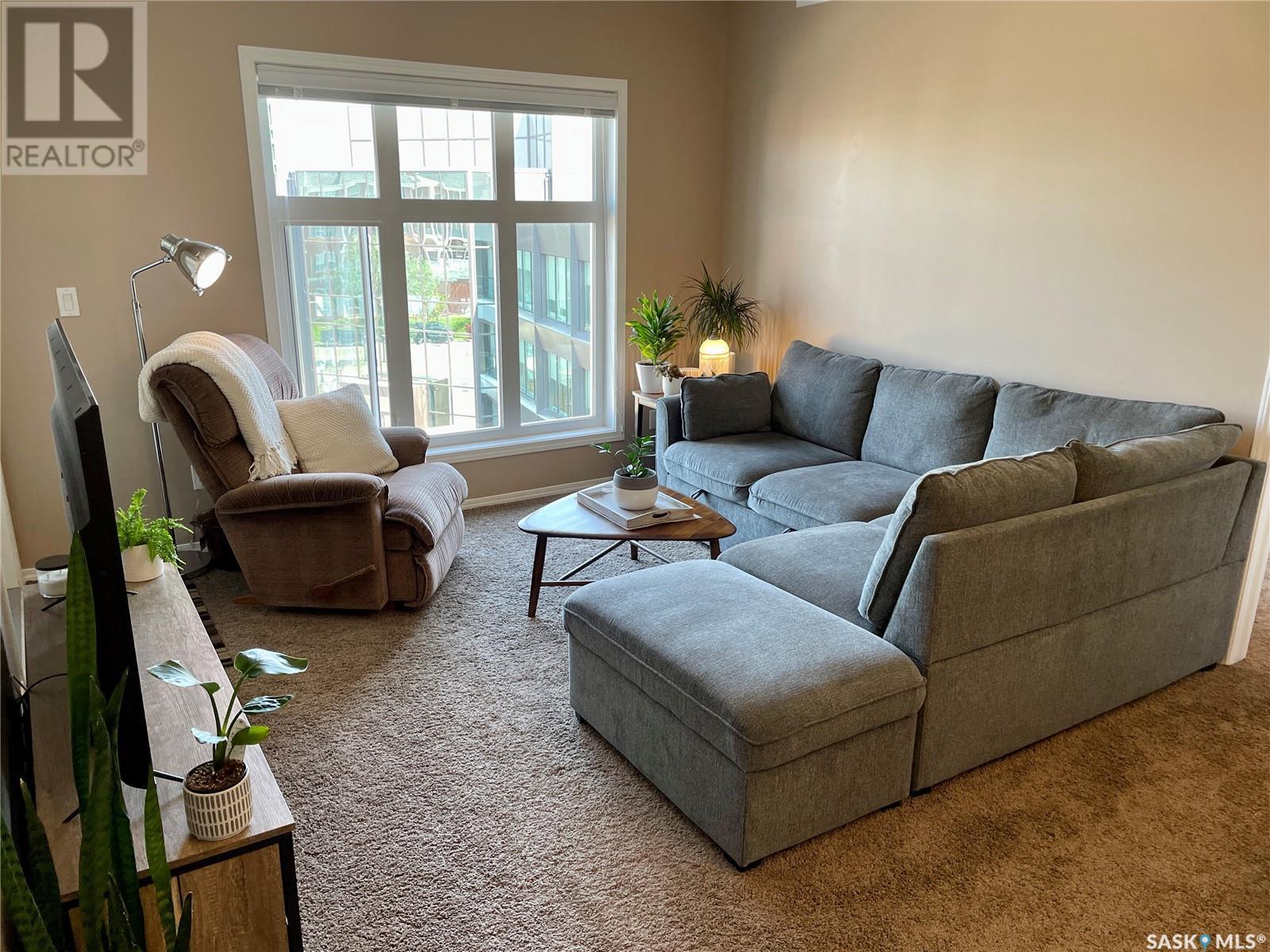 Fabulous 2 bed, 2 bath top floor condo ideally located within walking distance to the University of Regina, Wascana Park, Conexus Art Centre, close to downtown, and all south end amenities. Unit offers an open concept living, dining and kitchen area. Galley style kitchen includes a BI dishwasher, stainless steel appliances, and an eating bar. Living room features a large window overlooking the outdoor deck space and offers nice views of the city and legislative buildings. Generous size primary bedroom offers a 3 piece ensuite featuring a walk in shower. Additional bedroom, a 4 piece bath, laundry/utility/ storage room complete the unit. Covered patio deck is a perfect spot to enjoy a summer evening, or a morning coffee. Added bonus of this unit is the additional storage locker located in the underground parking garage, as well as the one underground parking stall and additional surface stall that is large enough to accommodate a larger truck. This complex also offers an exercise room, bike storage area, amenities room, elevator, and visitor parking. Condo fees include heat, water, sewer, snow removal, common area maintenance, common area insurance, and reserve fund. This unit is a pleasure to show! Please contact sales agent for more info. (id:22211)
