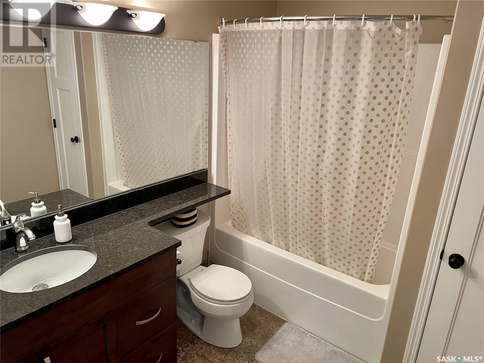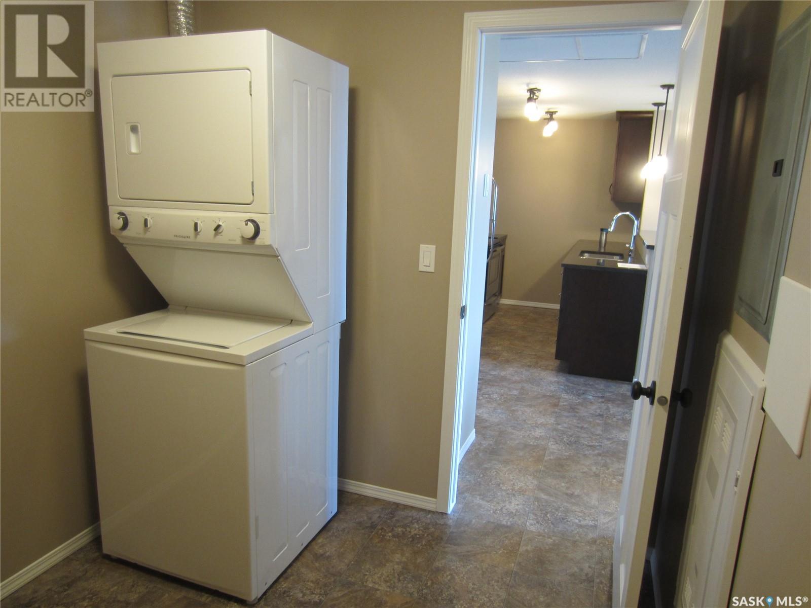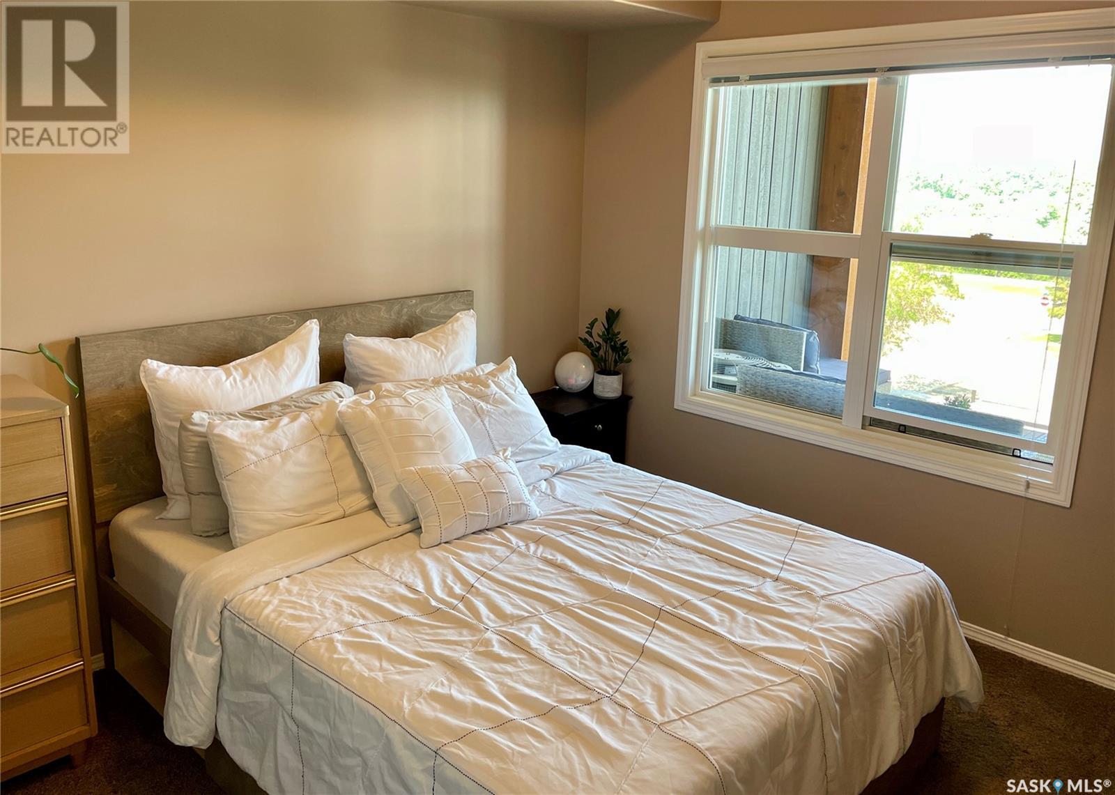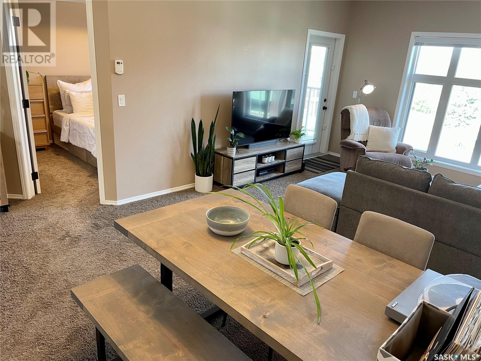 Fabulous 2 bed, 2 bath top floor condo ideally located within walking distance to the University of Regina, Wascana Park, Conexus Art Centre, close to downtown, and all south end amenities. Unit offers an open concept living, dining and kitchen area. Galley style kitchen includes a BI dishwasher, stainless steel appliances, and an eating bar. Living room features a large window overlooking the outdoor deck space and offers nice views of the city and legislative buildings. Generous size primary bedroom offers a 3 piece ensuite featuring a walk in shower. Additional bedroom, a 4 piece bath, laundry/utility/ storage room complete the unit. Covered patio deck is a perfect spot to enjoy a summer evening, or a morning coffee. Added bonus of this unit is the additional storage locker located in the underground parking garage, as well as the one underground parking stall and additional surface stall that is large enough to accommodate a larger truck. This complex also offers an exercise room, bike storage area, amenities room, elevator, and visitor parking. Condo fees include heat, water, sewer, snow removal, common area maintenance, common area insurance, and reserve fund. This unit is a pleasure to show! Please contact sales agent for more info. (id:22211)