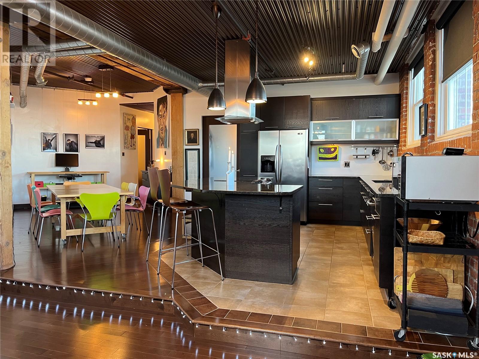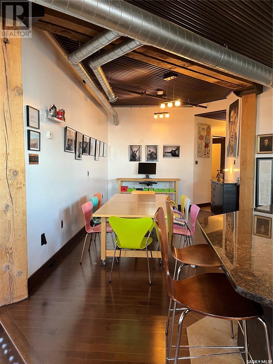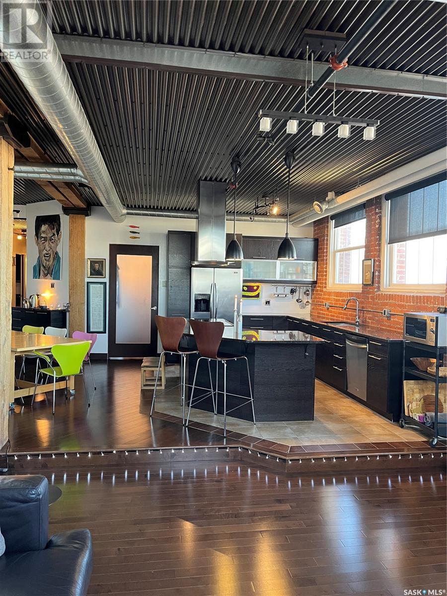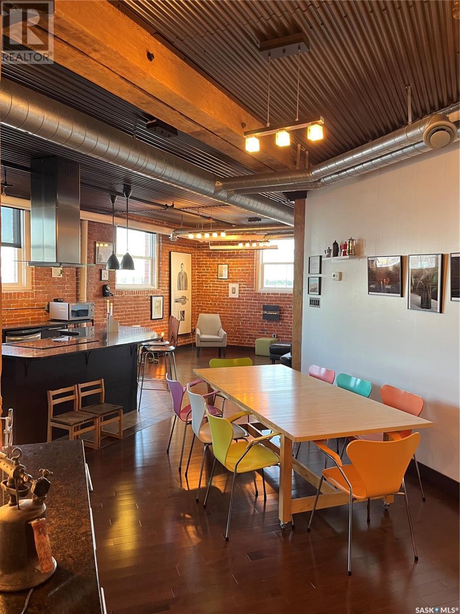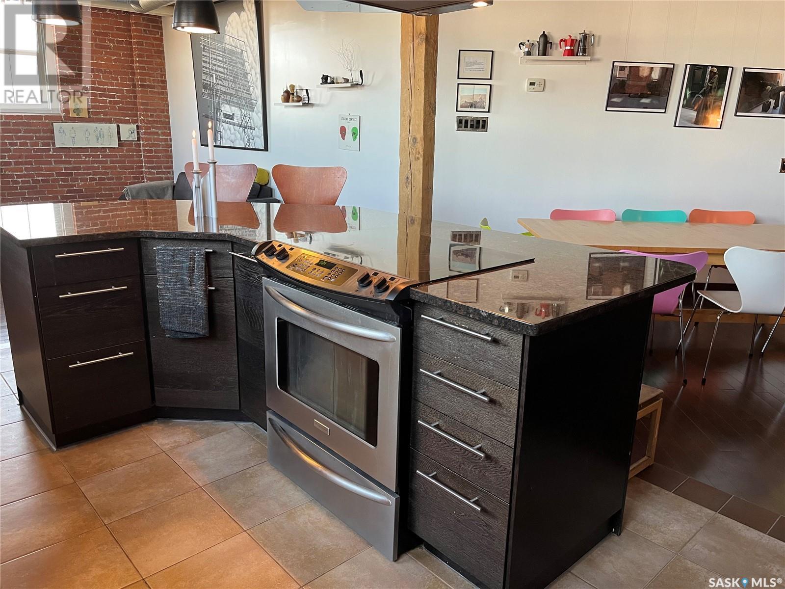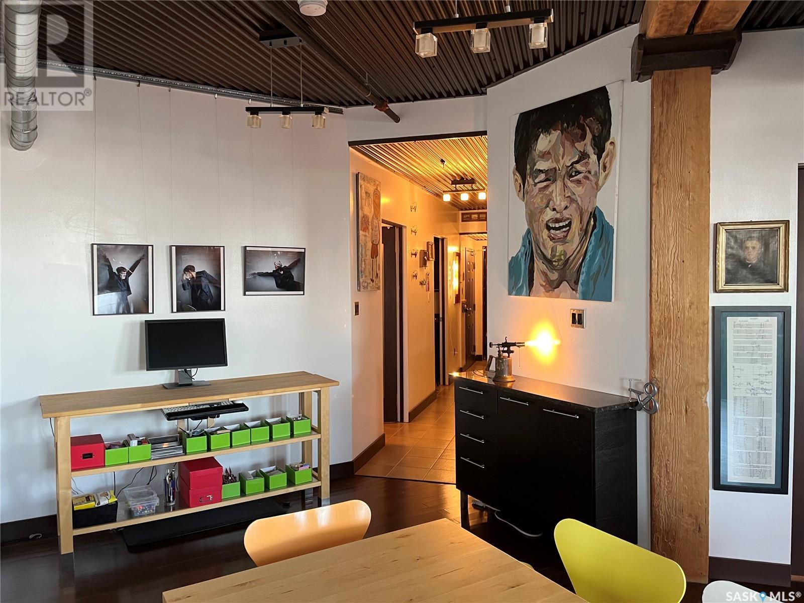 New York style and class right here in Regina. Beautiful south east corner warehouse loft condo in the Brownstone Plaza. Warehouse loft character exposed brick, post and beam. 1 bedroom with newly updated 3piece en-suite bathroom, large 4 piece main bathroom with bubble tub. In floor heat in kitchen and main bathroom. Large laundry/storage room, plus large in unit storage/office with separate entrance. Gated lot parking stall with electric gate opener. Condo fees include water, sewer, heat, exterior building maintenance, interior common maintenance, elevator, intercom, common insurance, and reserve fund. $339,900 Carefree living in Regina’s up and coming Warehouse District. (id:22211)