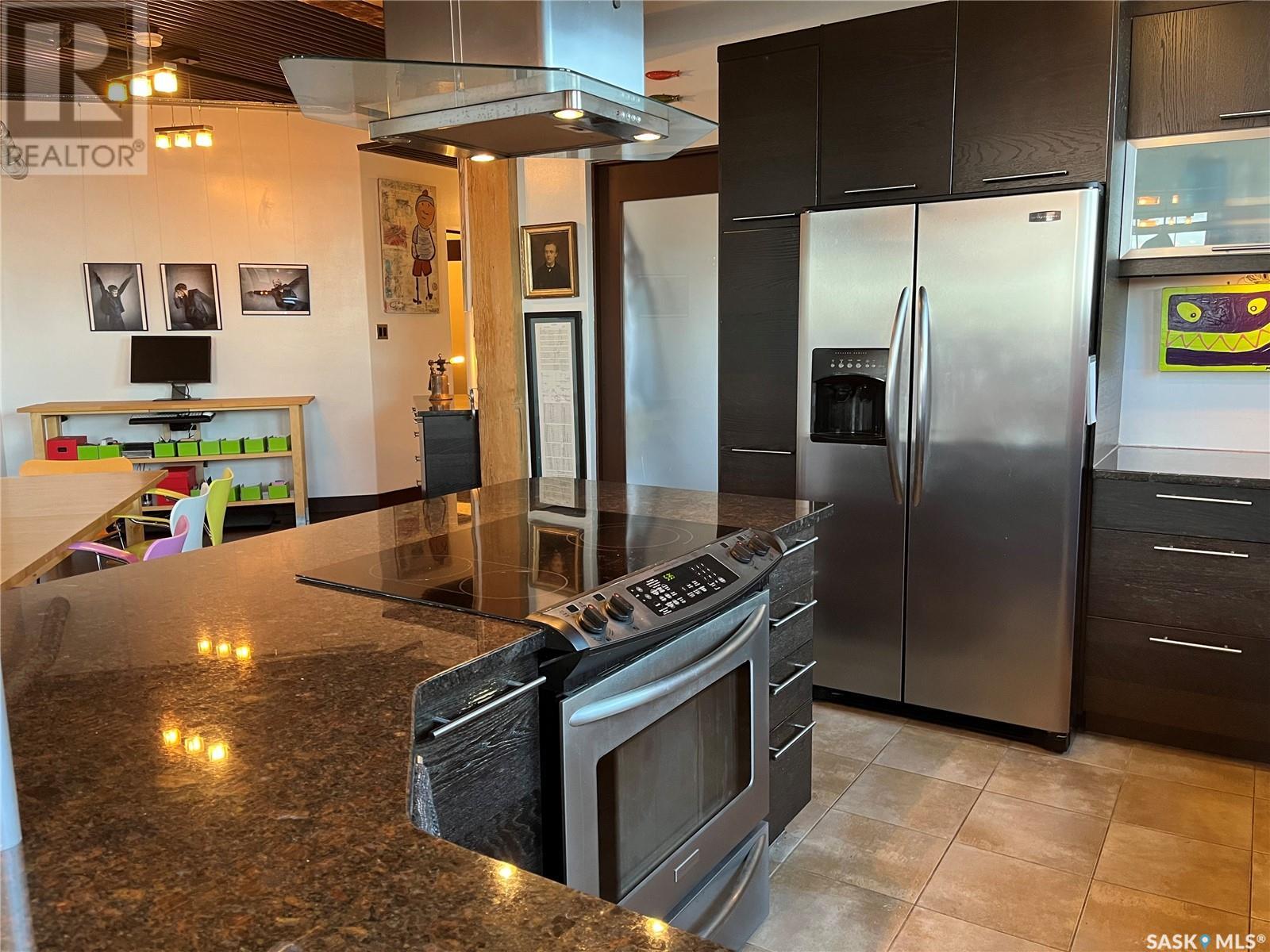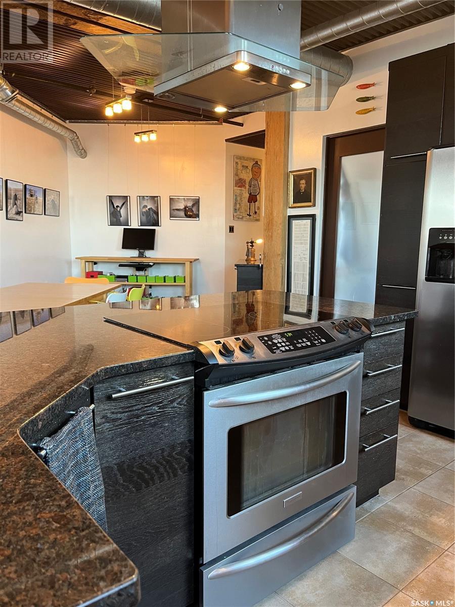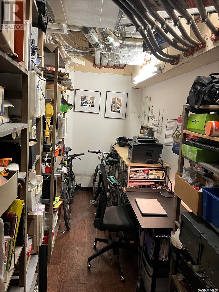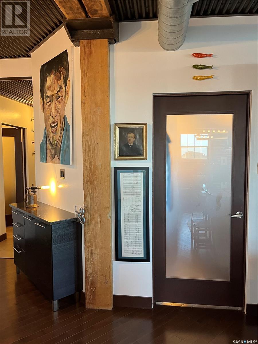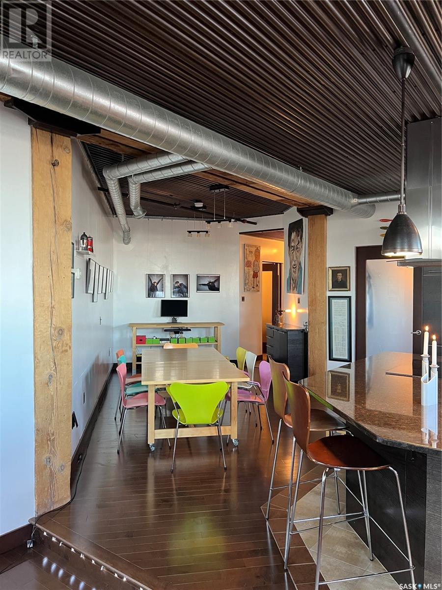 New York style and class right here in Regina. Beautiful south east corner warehouse loft condo in the Brownstone Plaza. Warehouse loft character exposed brick, post and beam. 1 bedroom with newly updated 3piece en-suite bathroom, large 4 piece main bathroom with bubble tub. In floor heat in kitchen and main bathroom. Large laundry/storage room, plus large in unit storage/office with separate entrance. Gated lot parking stall with electric gate opener. Condo fees include water, sewer, heat, exterior building maintenance, interior common maintenance, elevator, intercom, common insurance, and reserve fund. $339,900 Carefree living in Regina’s up and coming Warehouse District. (id:22211)