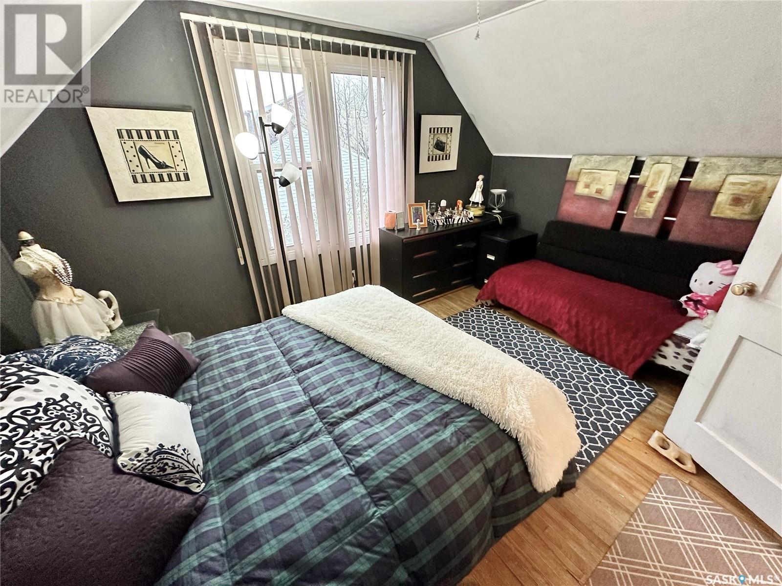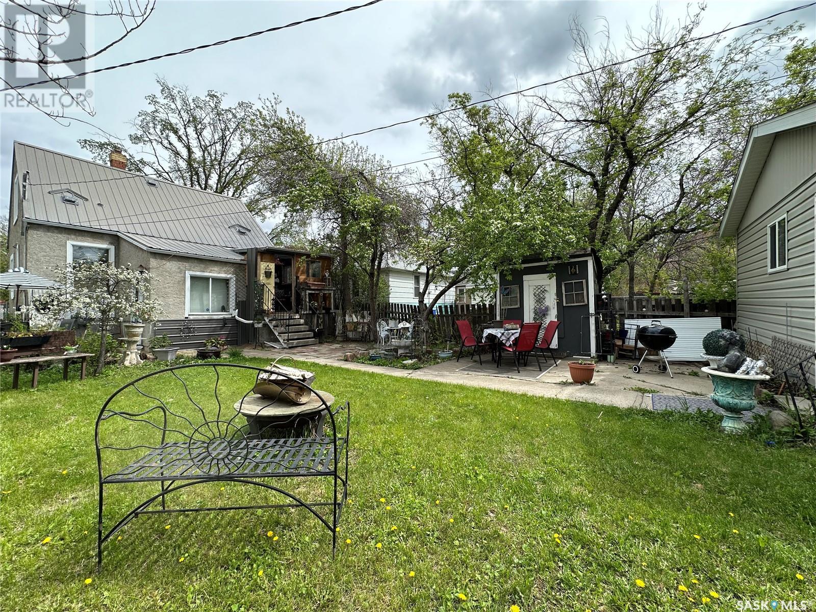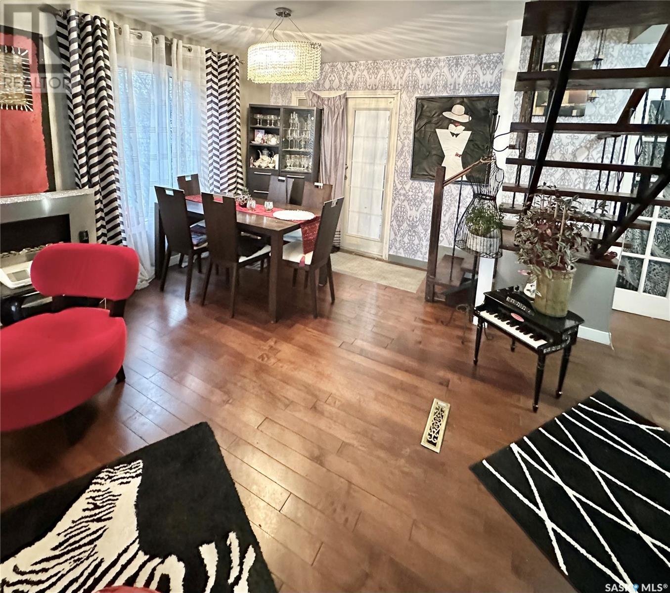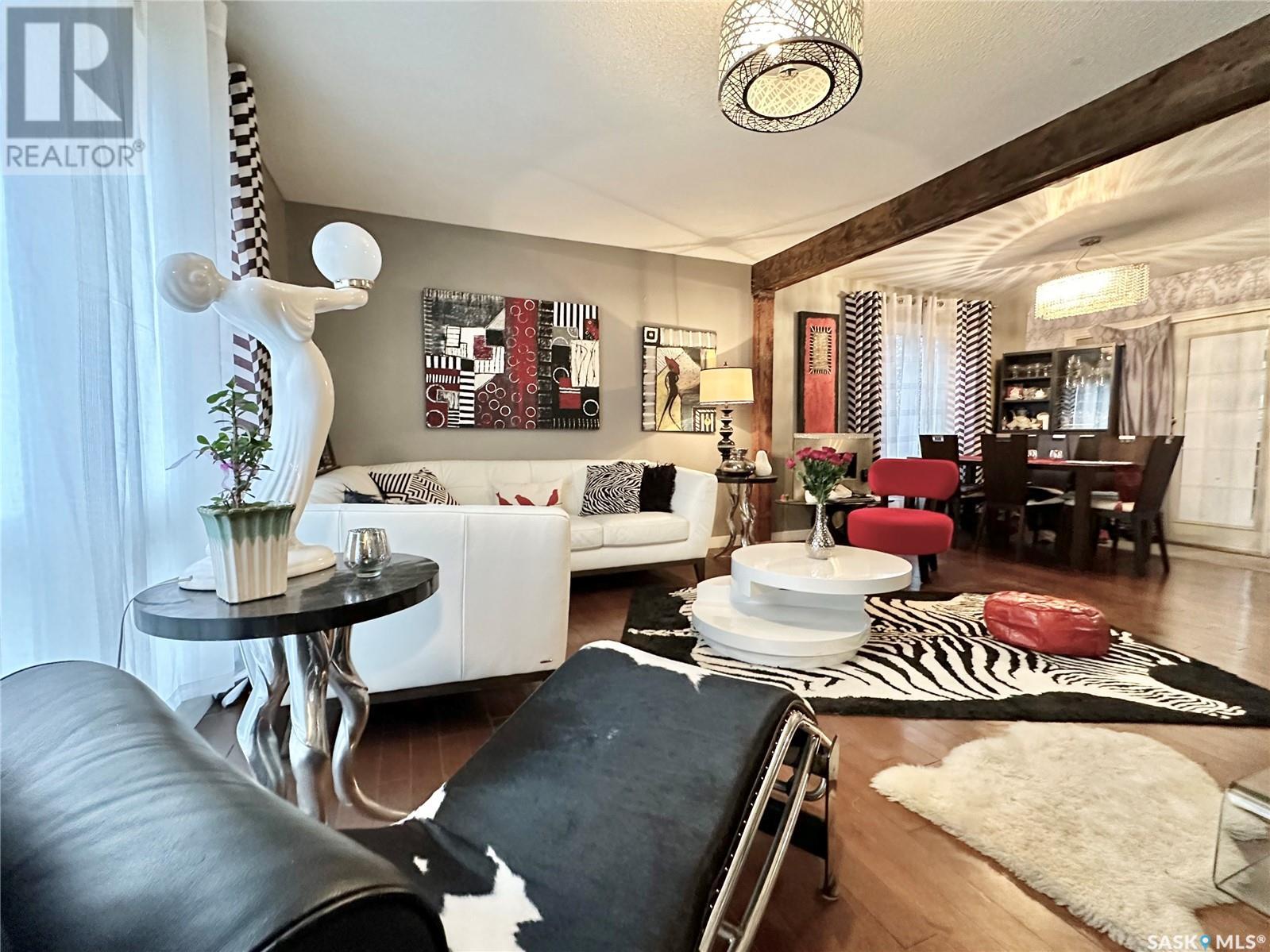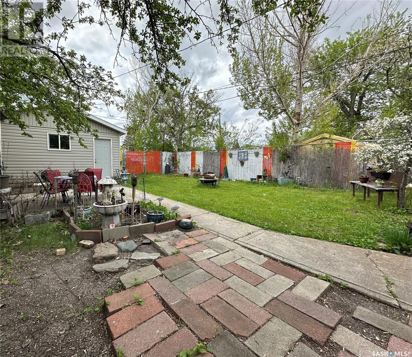 Lovely home centrally located full of character and charm. Bright open concept main level shows off the open stairway leading to upper level. Medium toned hardwood flooring throughout main level with trendy contrasting wall colour. Kitchen has espresso cabinets with a built-in oven, stove top and loads of storage. Room for a table and chairs or stools for the breakfast bar. Spacious living room and dining room lead to a sunroom that is your personal private getaway. This is where you can escape with a beverage and book. Beyond the sunroom is a fenced yard with an oversized single garage and additional parking. Back gate opens so you can park a RV camper or have easy access to your backyard. Bathroom has been updated to include soaker tub, surround, sliding glass shower doors and pedestal sink with storage under. Upper level has two good-sized bedrooms with hardwood floors. Back entry will hold all your outdoor gear and leads to lower level that is partially developed. This home is nicely maintained and close to major arteries of Regina. Central air. Metal roof. Newer furnace. (rented) (id:22211)