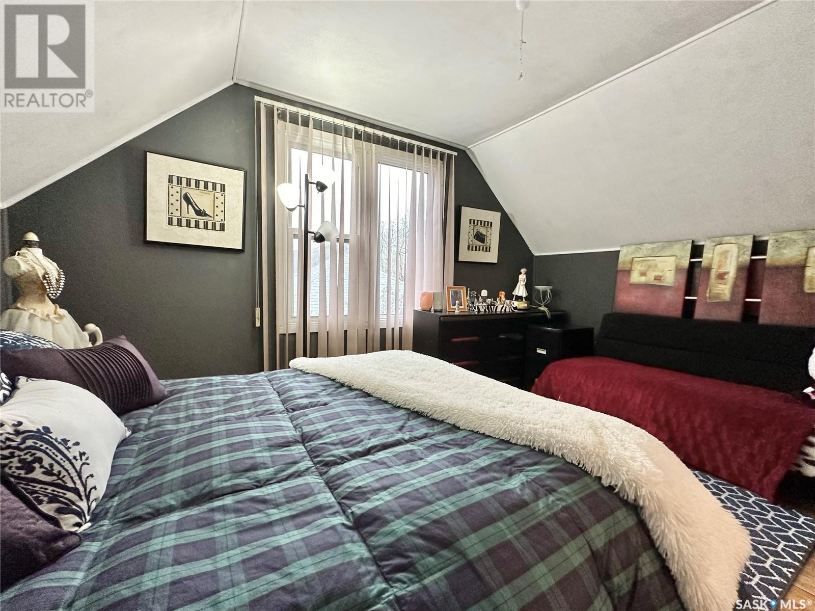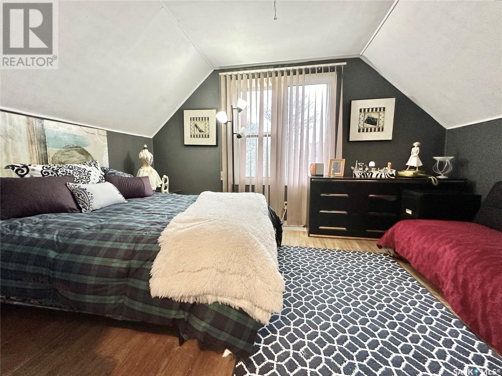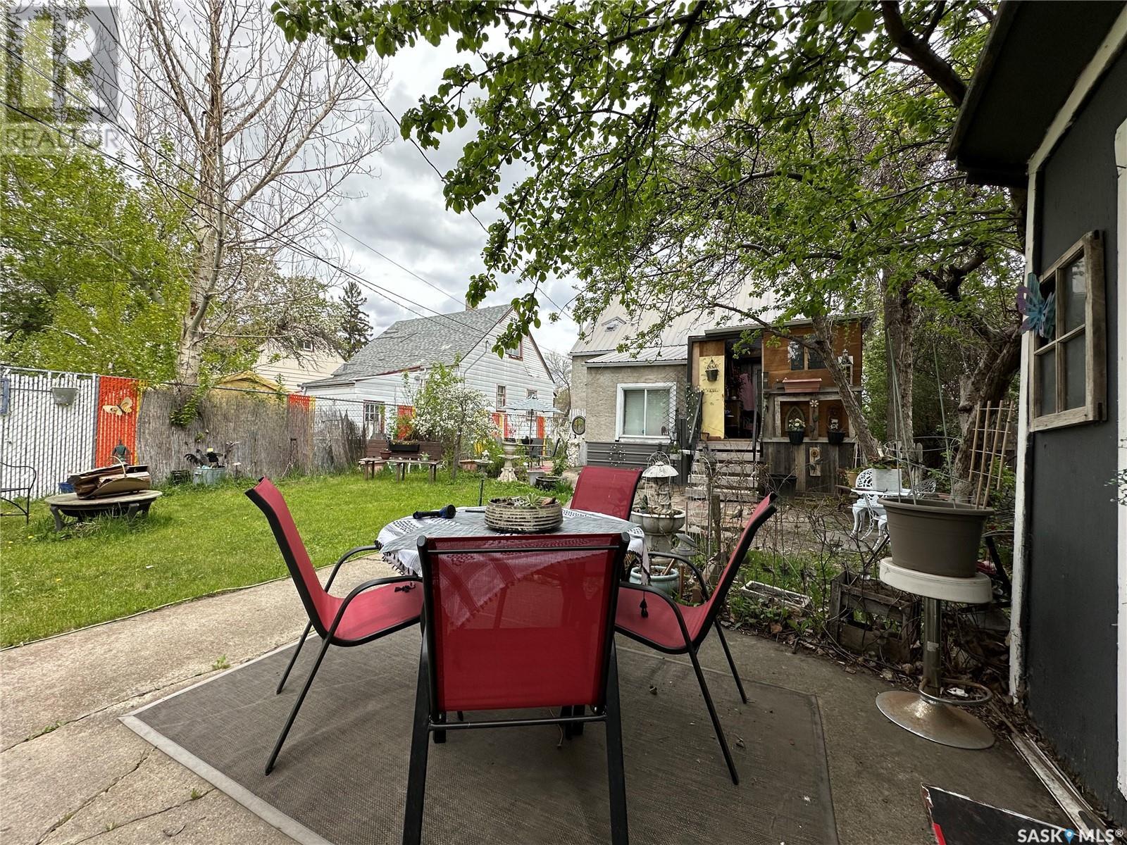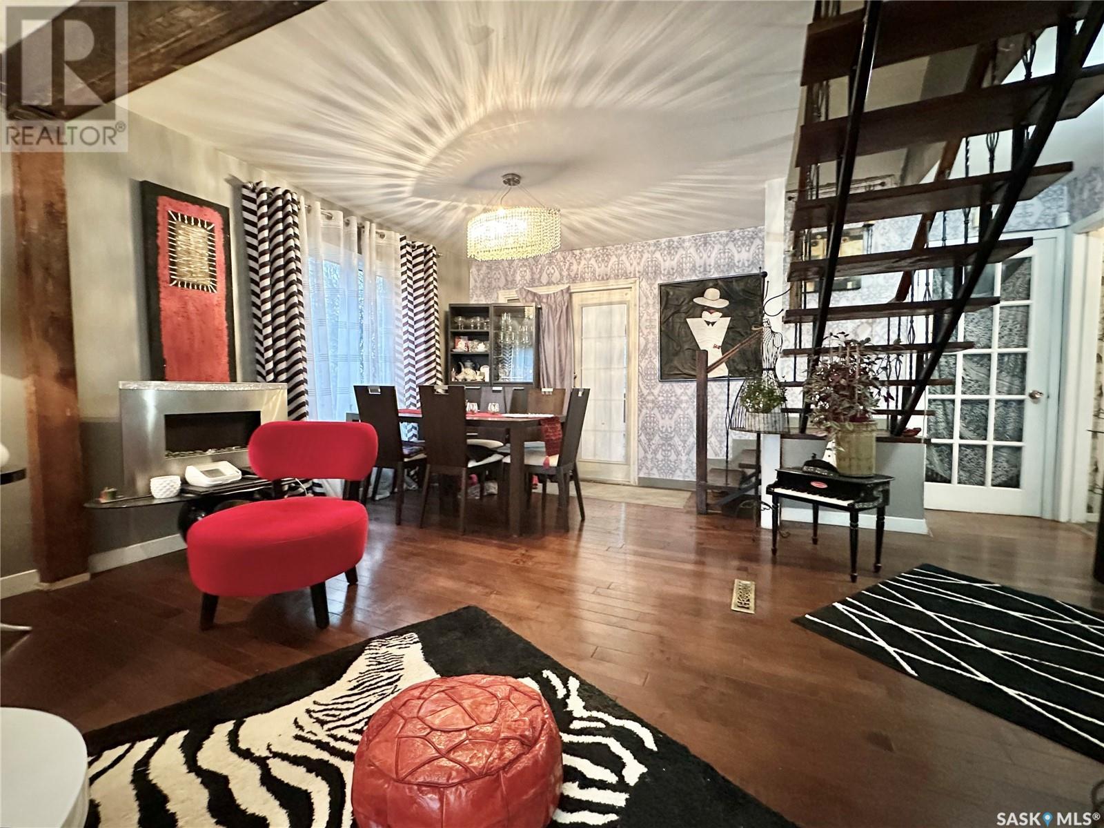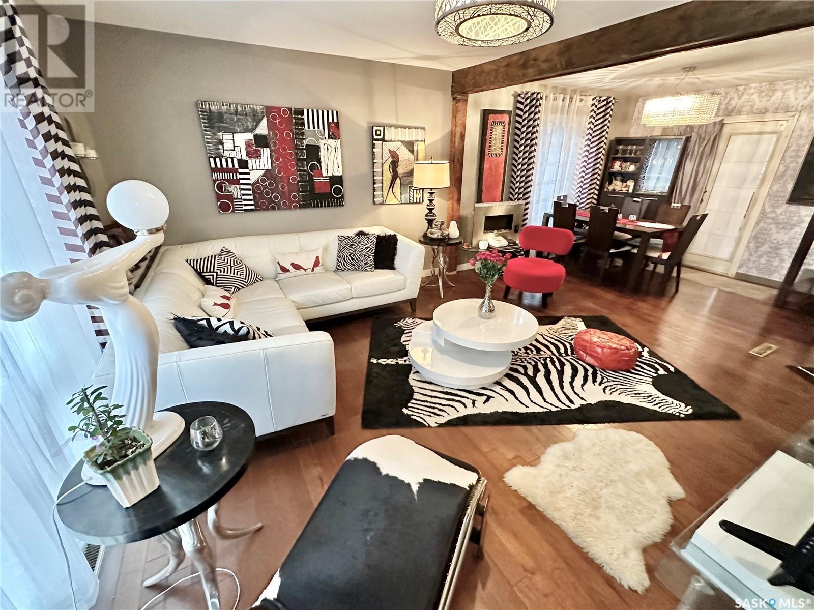 Lovely home centrally located full of character and charm. Bright open concept main level shows off the open stairway leading to upper level. Medium toned hardwood flooring throughout main level with trendy contrasting wall colour. Kitchen has espresso cabinets with a built-in oven, stove top and loads of storage. Room for a table and chairs or stools for the breakfast bar. Spacious living room and dining room lead to a sunroom that is your personal private getaway. This is where you can escape with a beverage and book. Beyond the sunroom is a fenced yard with an oversized single garage and additional parking. Back gate opens so you can park a RV camper or have easy access to your backyard. Bathroom has been updated to include soaker tub, surround, sliding glass shower doors and pedestal sink with storage under. Upper level has two good-sized bedrooms with hardwood floors. Back entry will hold all your outdoor gear and leads to lower level that is partially developed. This home is nicely maintained and close to major arteries of Regina. Central air. Metal roof. Newer furnace. (rented) (id:22211)