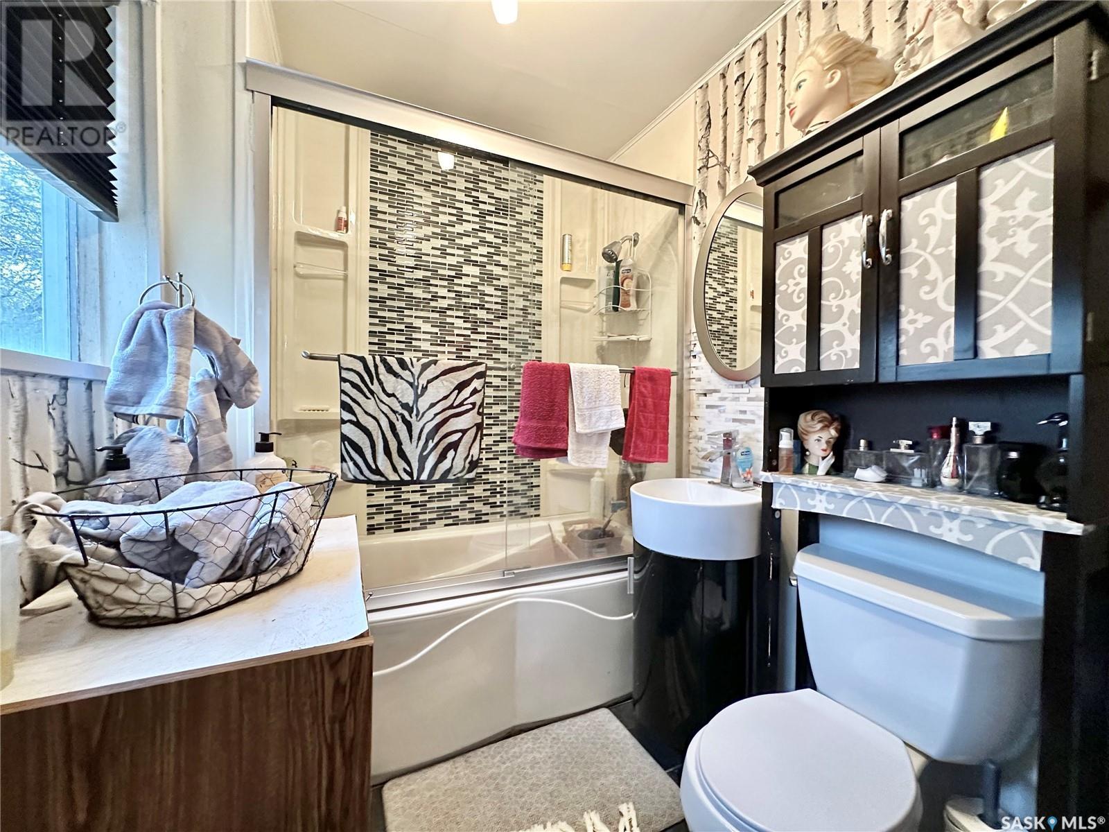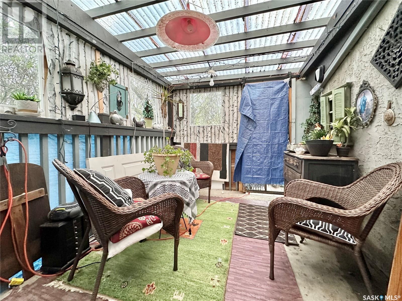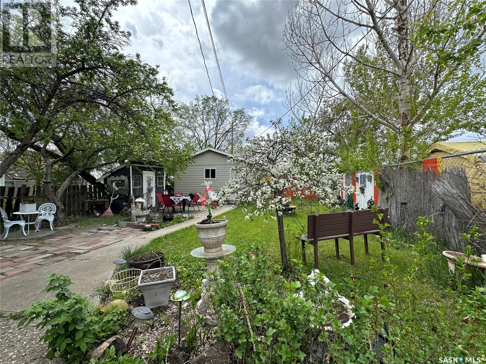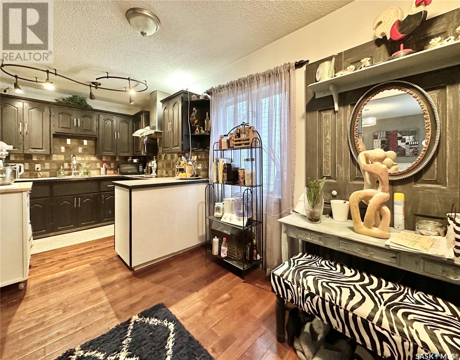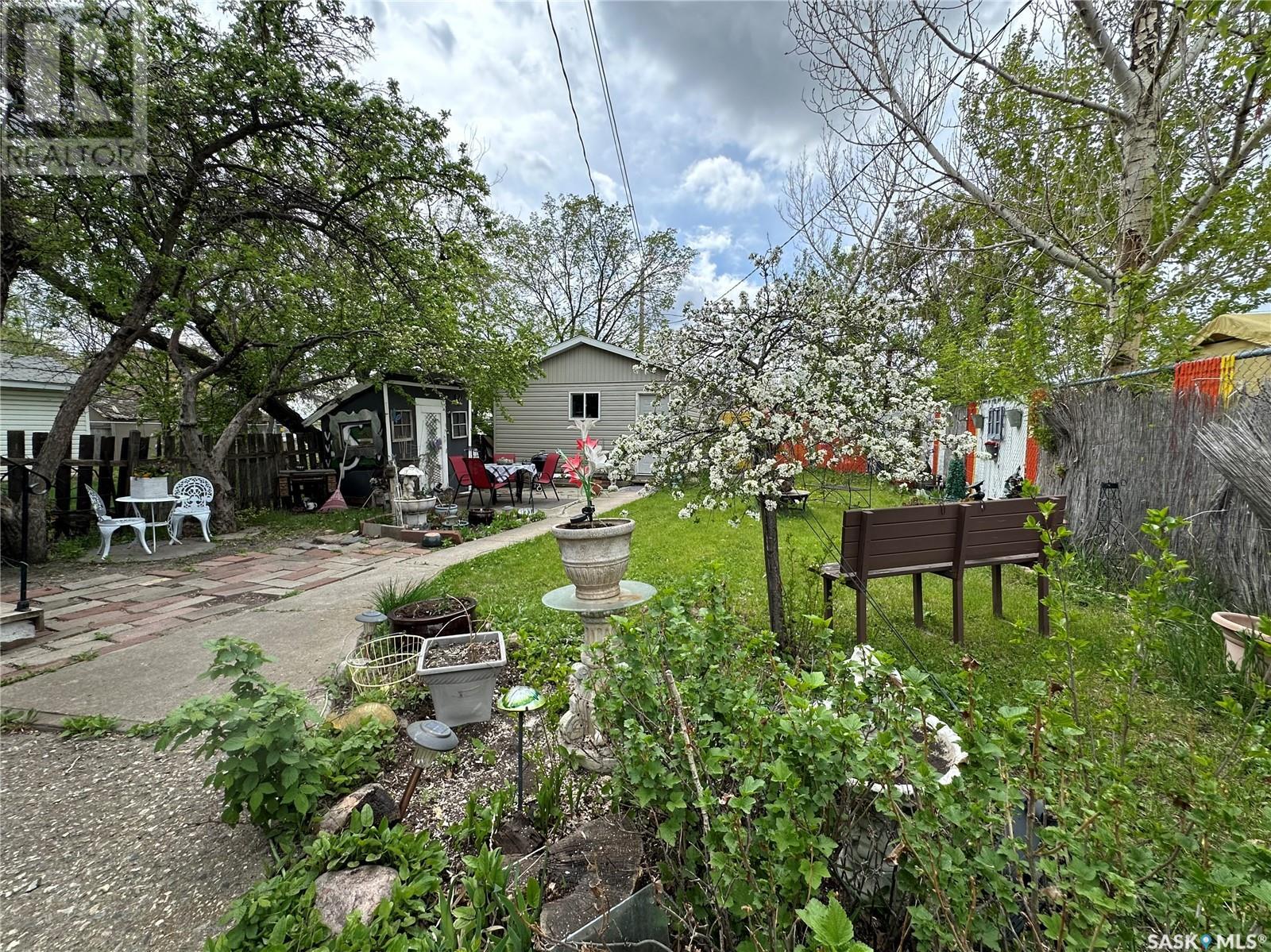 Lovely home centrally located full of character and charm. Bright open concept main level shows off the open stairway leading to upper level. Medium toned hardwood flooring throughout main level with trendy contrasting wall colour. Kitchen has espresso cabinets with a built-in oven, stove top and loads of storage. Room for a table and chairs or stools for the breakfast bar. Spacious living room and dining room lead to a sunroom that is your personal private getaway. This is where you can escape with a beverage and book. Beyond the sunroom is a fenced yard with an oversized single garage and additional parking. Back gate opens so you can park a RV camper or have easy access to your backyard. Bathroom has been updated to include soaker tub, surround, sliding glass shower doors and pedestal sink with storage under. Upper level has two good-sized bedrooms with hardwood floors. Back entry will hold all your outdoor gear and leads to lower level that is partially developed. This home is nicely maintained and close to major arteries of Regina. Central air. Metal roof. Newer furnace. (rented) (id:22211)