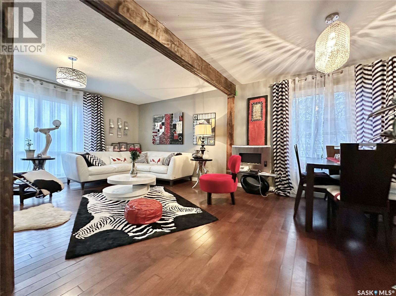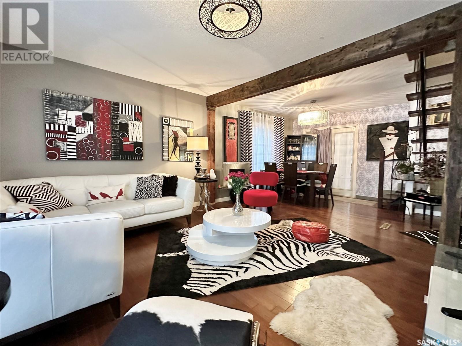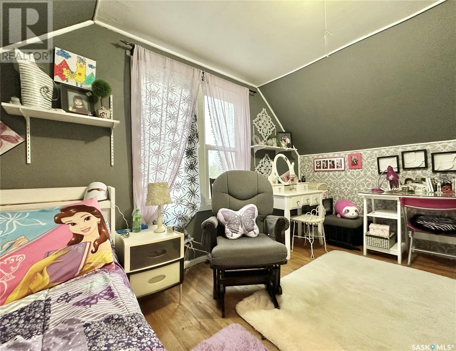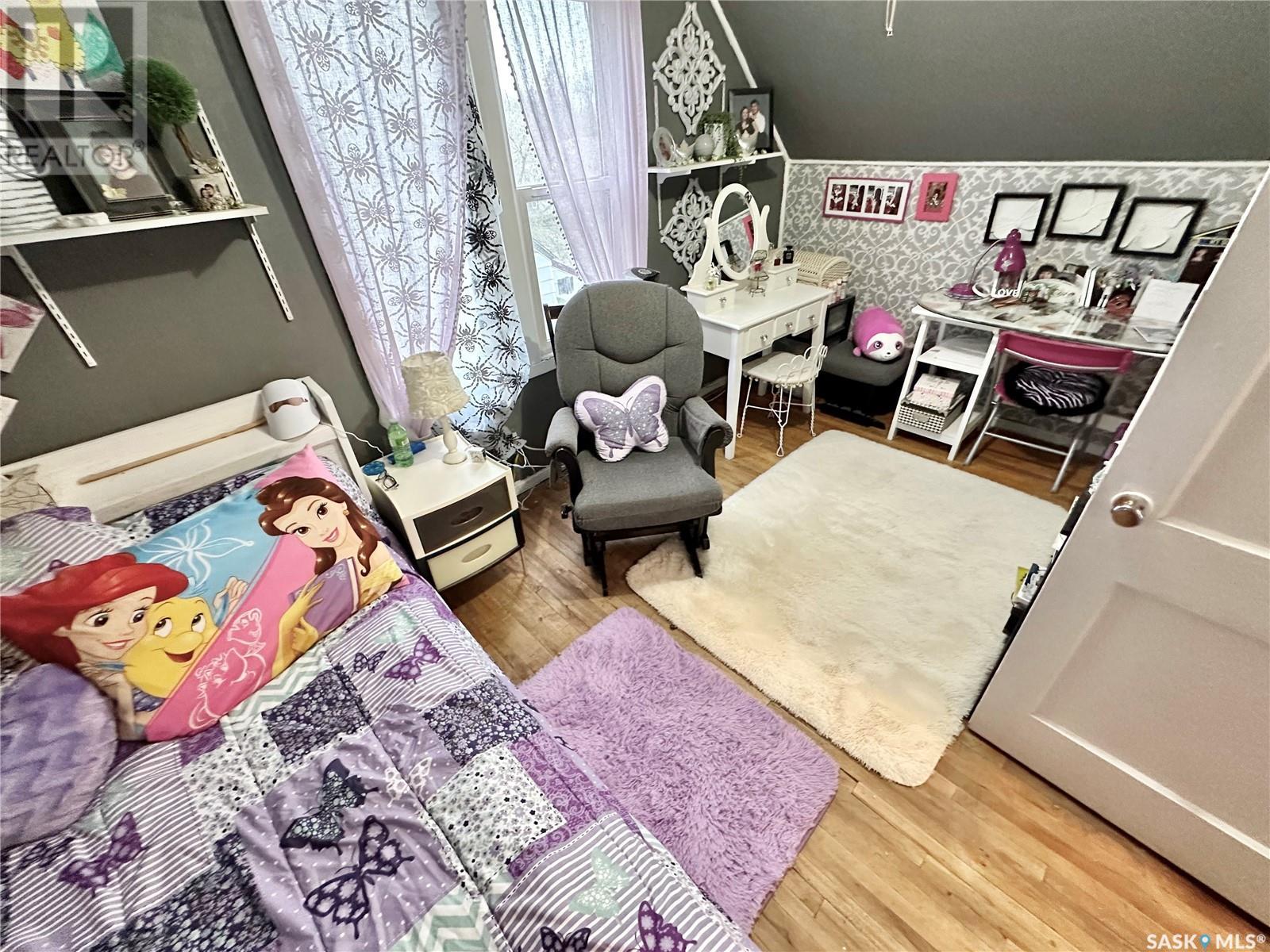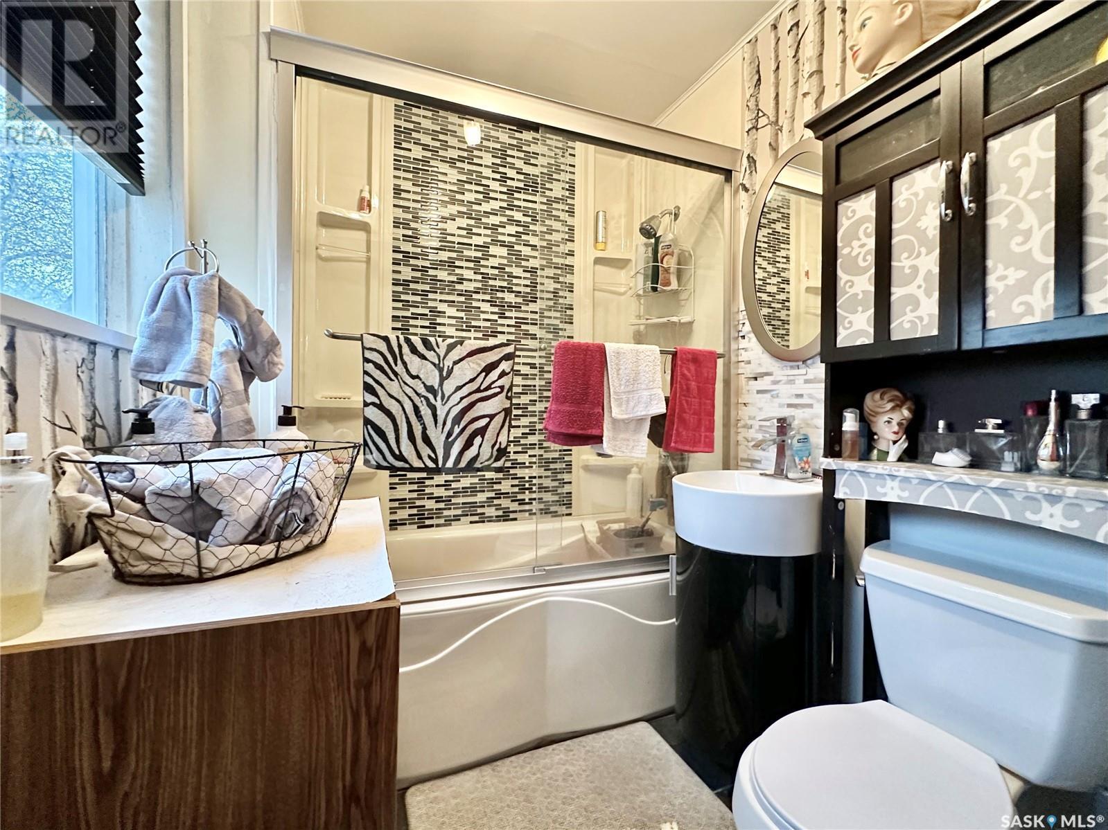 Lovely home centrally located full of character and charm. Bright open concept main level shows off the open stairway leading to upper level. Medium toned hardwood flooring throughout main level with trendy contrasting wall colour. Kitchen has espresso cabinets with a built-in oven, stove top and loads of storage. Room for a table and chairs or stools for the breakfast bar. Spacious living room and dining room lead to a sunroom that is your personal private getaway. This is where you can escape with a beverage and book. Beyond the sunroom is a fenced yard with an oversized single garage and additional parking. Back gate opens so you can park a RV camper or have easy access to your backyard. Bathroom has been updated to include soaker tub, surround, sliding glass shower doors and pedestal sink with storage under. Upper level has two good-sized bedrooms with hardwood floors. Back entry will hold all your outdoor gear and leads to lower level that is partially developed. This home is nicely maintained and close to major arteries of Regina. Central air. Metal roof. Newer furnace. (rented) (id:22211)