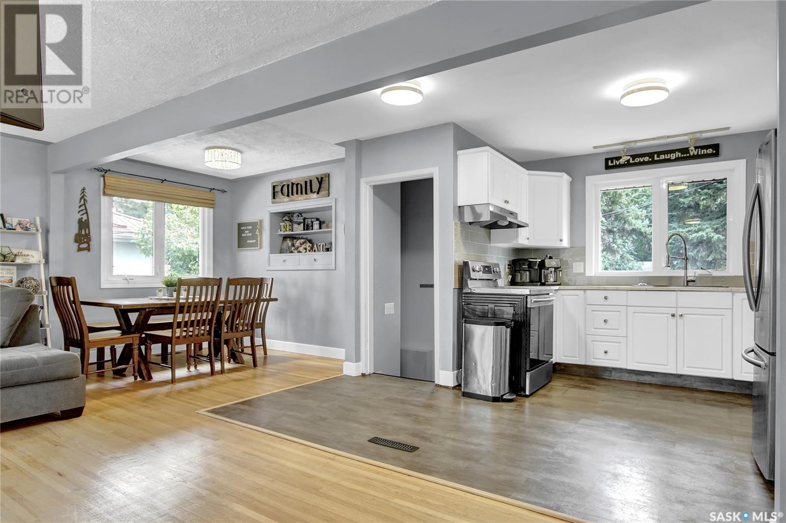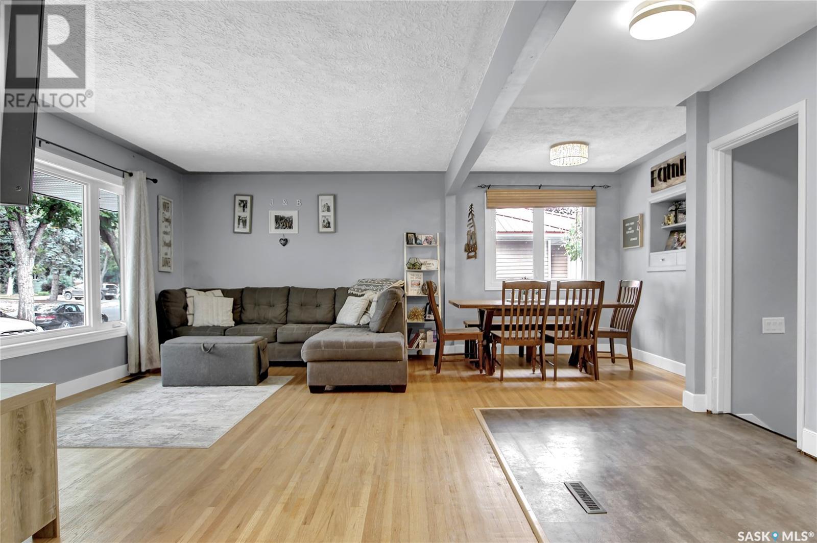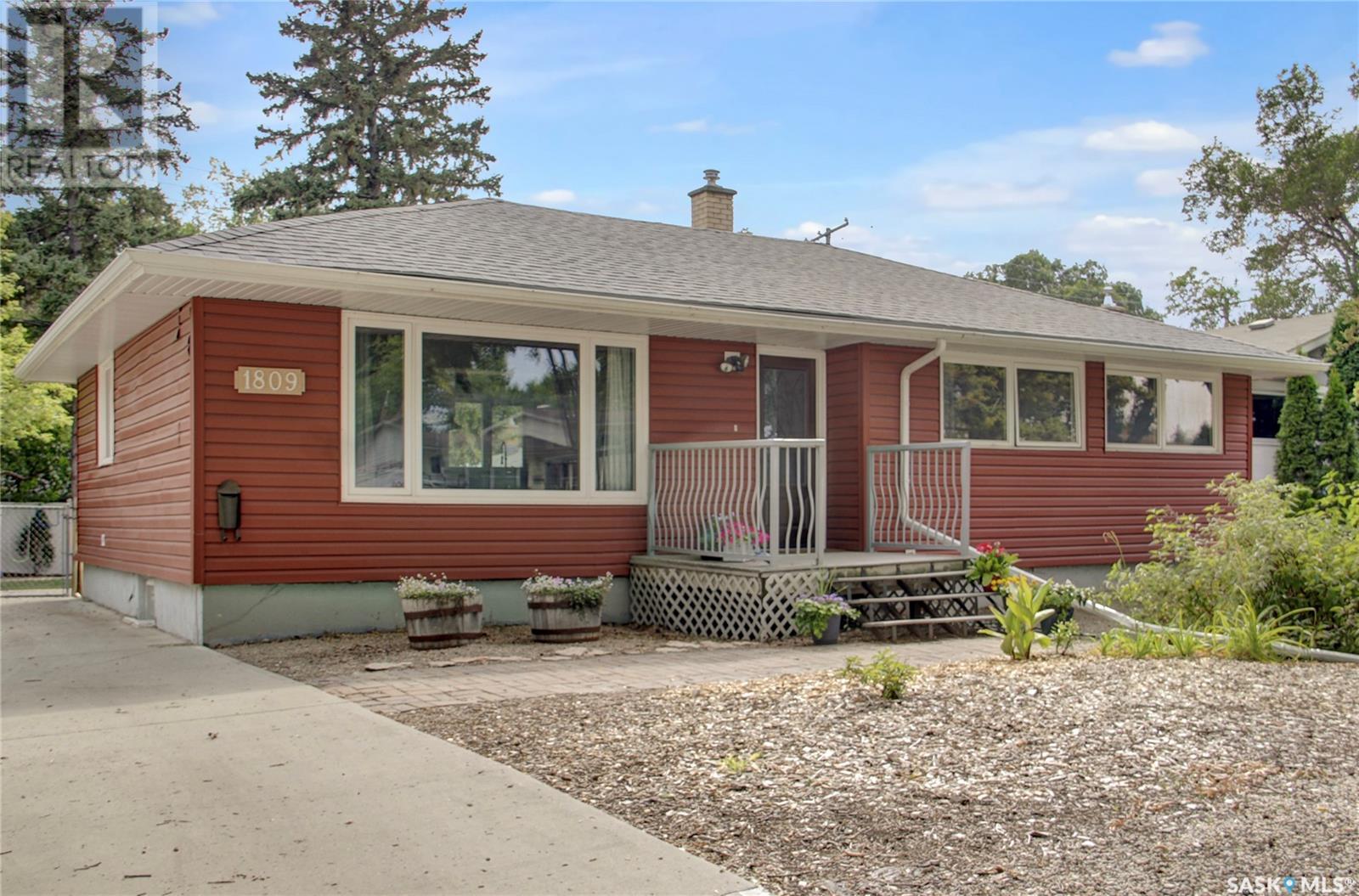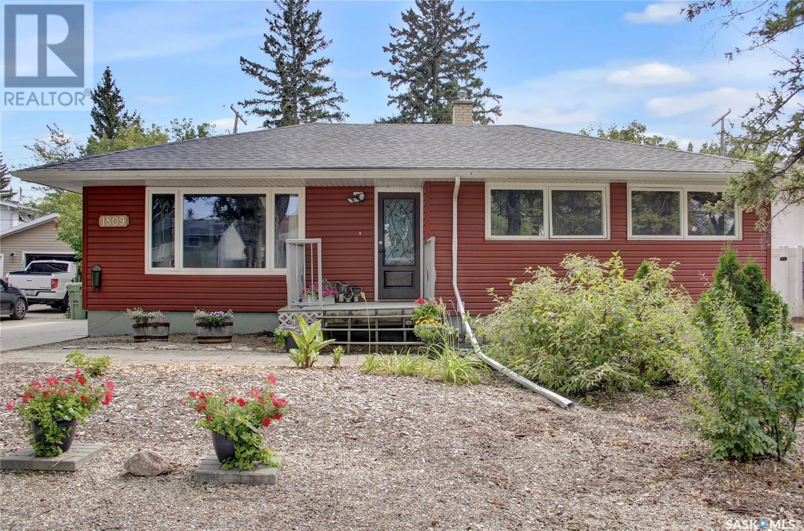 Welcome to 1809 Dufferin Road. Great South end location within walking distance to elementary school, close to U of Regina and all South end amenities. Great street appeal with the low maintenance siding, newer shingles, large front step, updated front door & most windows. The main floor has been opened up to a great room style layout. Hardwood floors thru most of main floor. Living and dining rooms are spacious. Kitchen has been updated with white cabinets, newer counter tops, tile back splash, black granite sink and stainless steel appliances. Views of backyard from kitchen. There are 3 bedrooms on the main level, all with hardwood floors. Interior doors, trim, plumbing & hardware have been upgraded. The bathroom has been renovated with large vanity with granite top, taps, toilet and tile surround to soaker tub. The basement is developed with a large rec room, bedroom (window may not meet egress), and storage area. Laundry is located in utility room. Spacious backyard with some newer pvc fencing, grass, patio and shed for extra storage. Good concrete driveway can accommodate 2 vehicles. Truly a great place to call home. Book your showing today!! (id:22211)